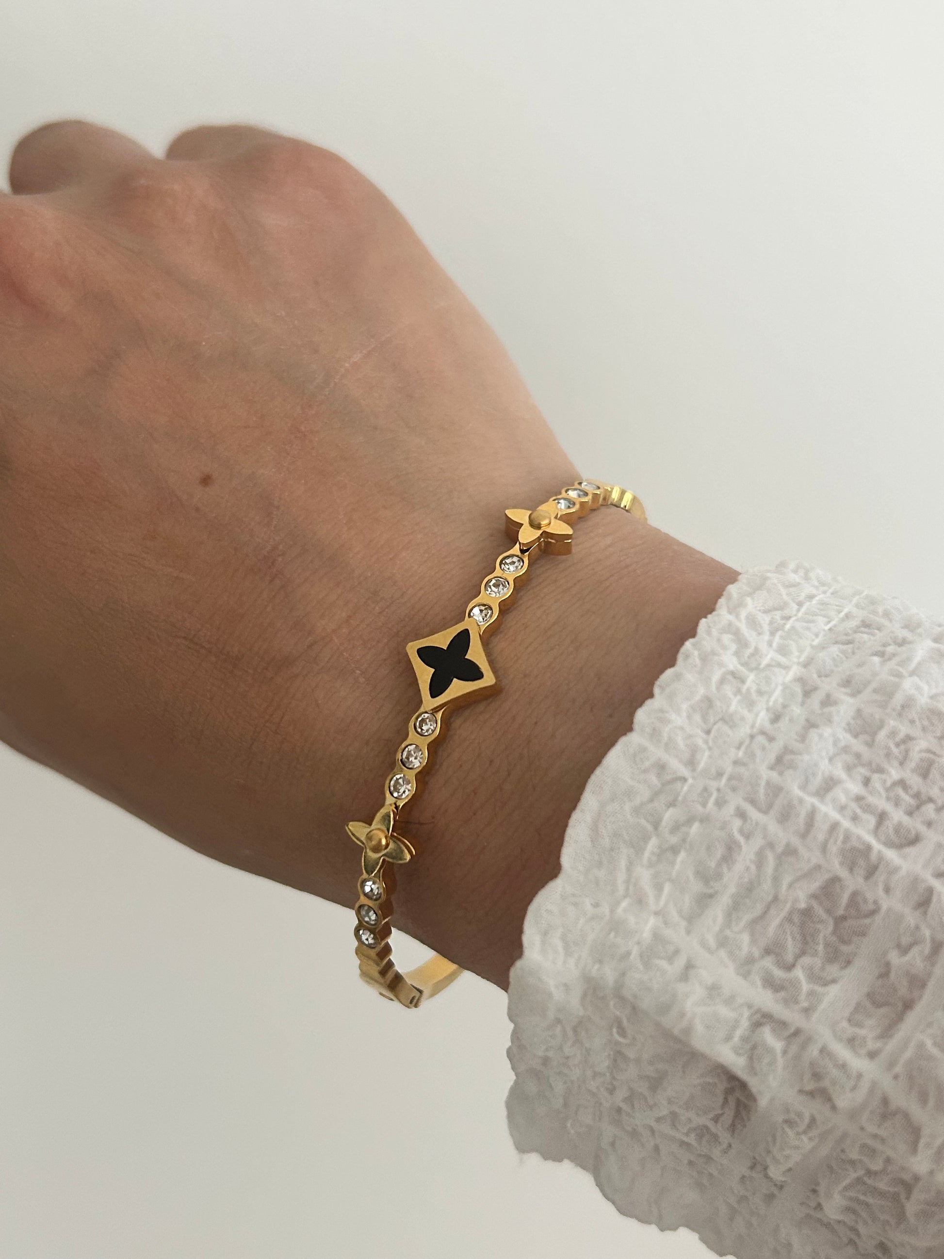 This grey mother of pearl four leaf clover bracelet is beautiful, looks lovely with other bracelets or alone. The grey mother of pearl is very pretty it almost takes on whatever colour you are wearing. As well my order arrived in a lovely packaged with great attention to detail, absolutely beautiful!