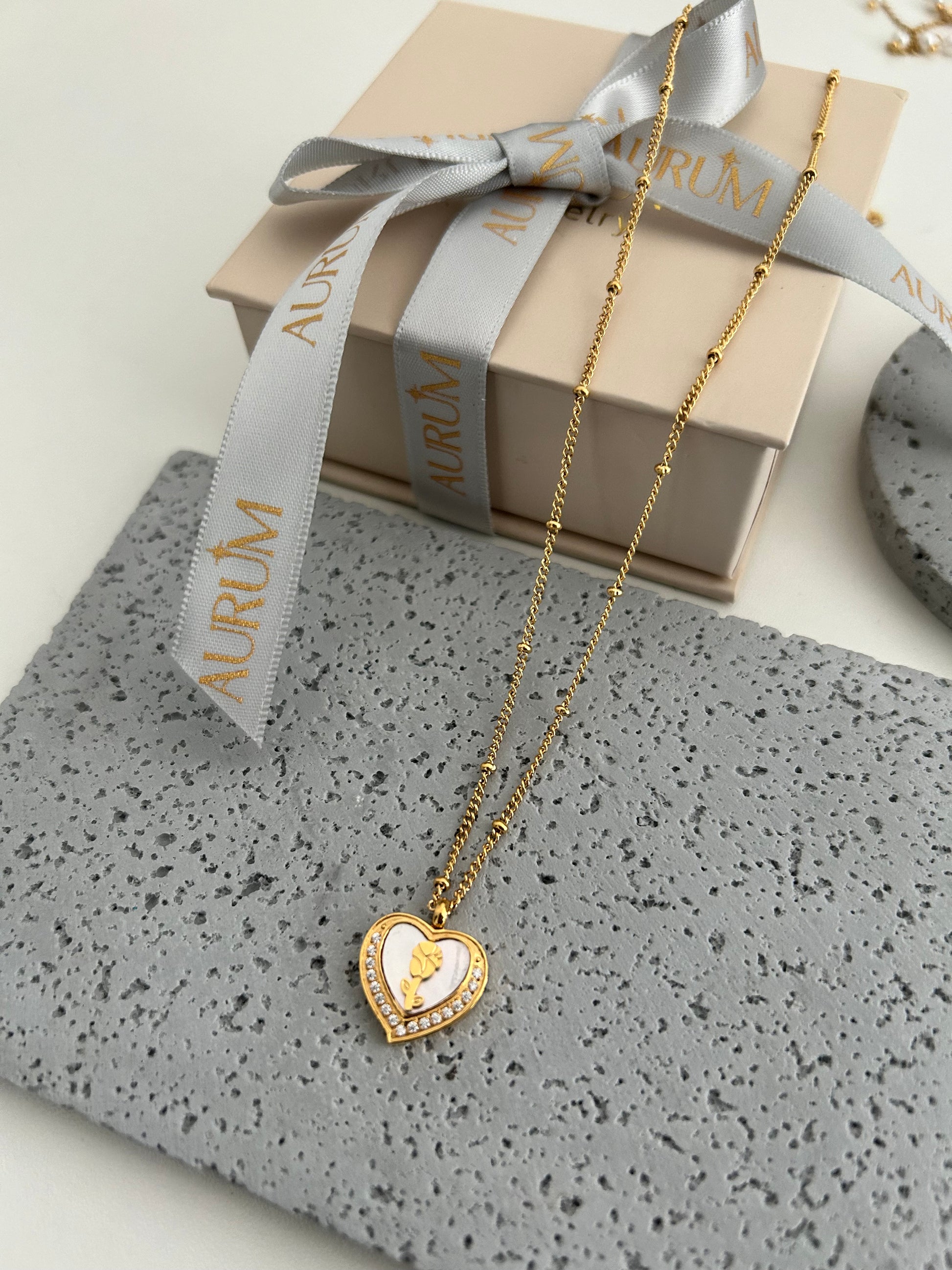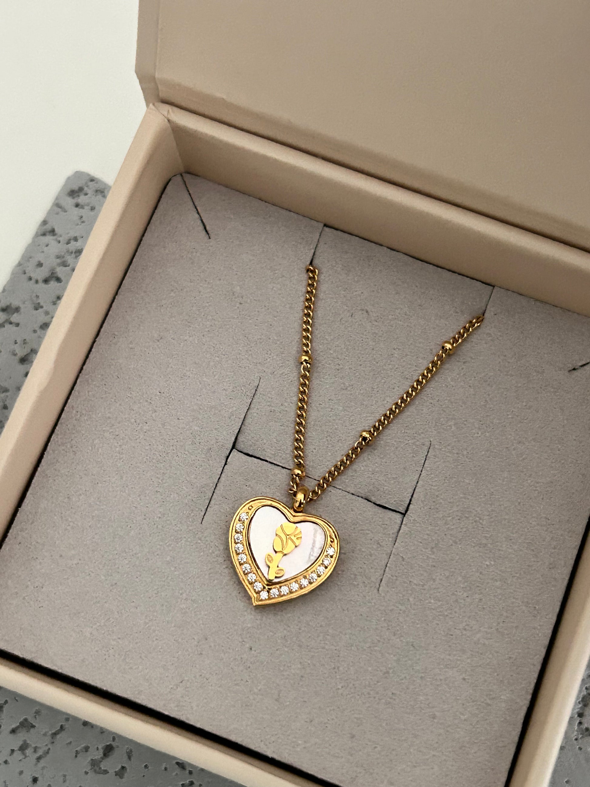 Belle necklace • Rose in a heart necklace