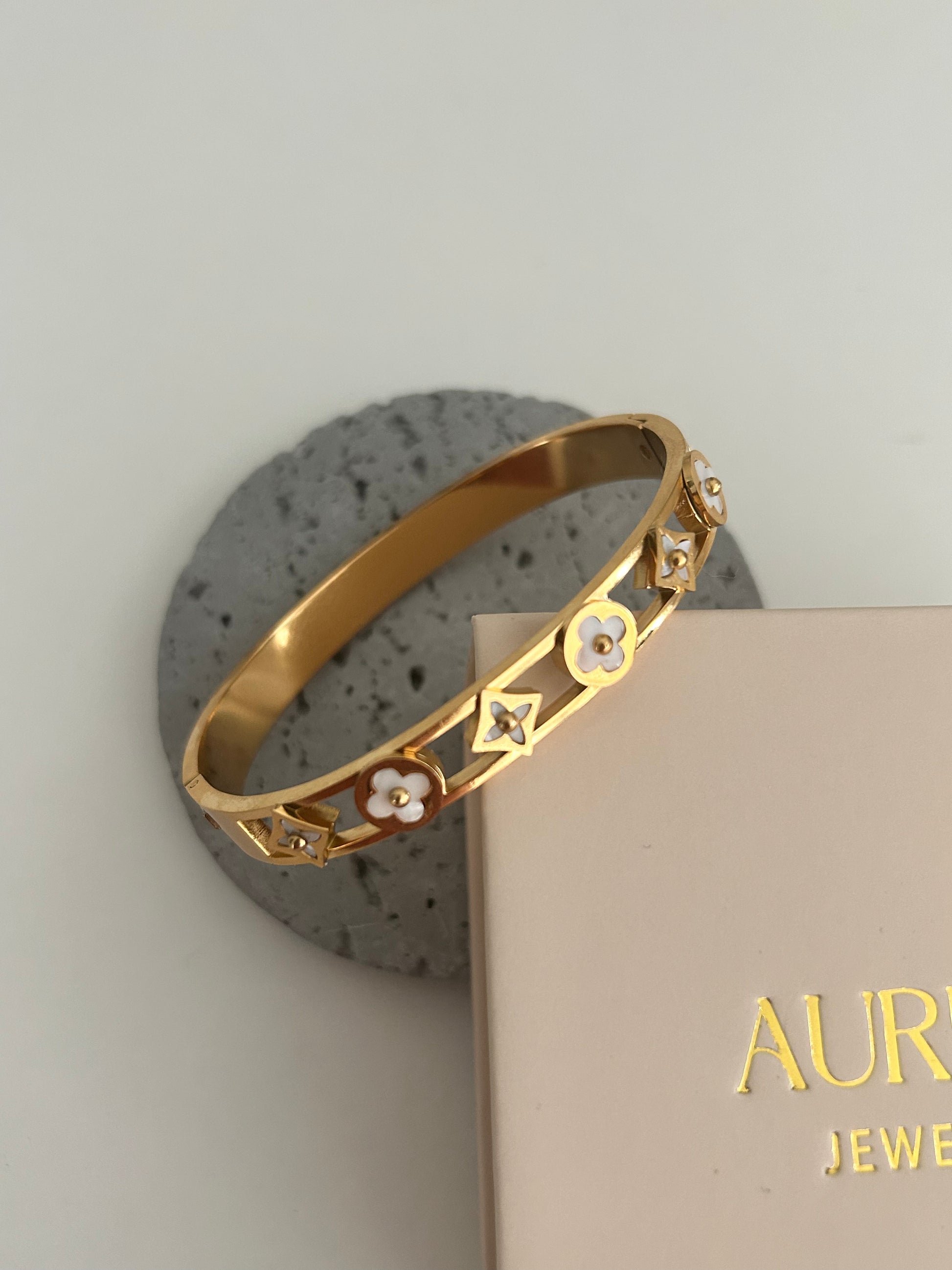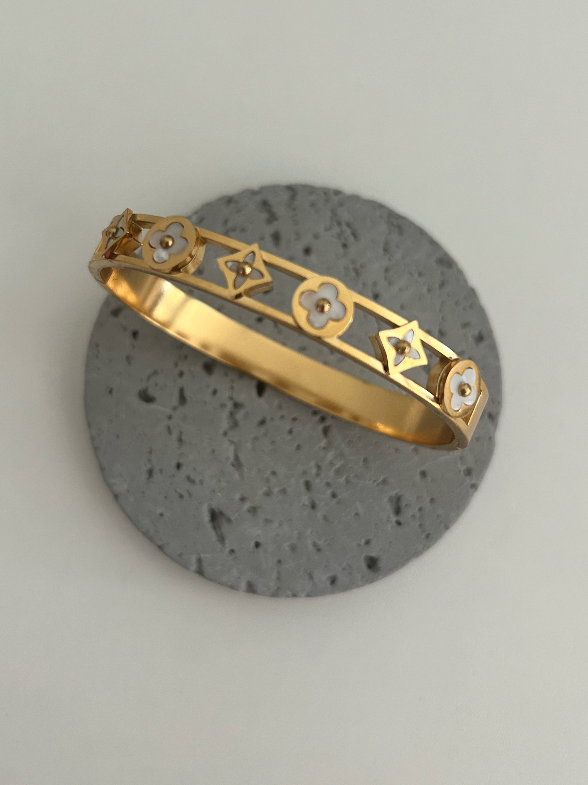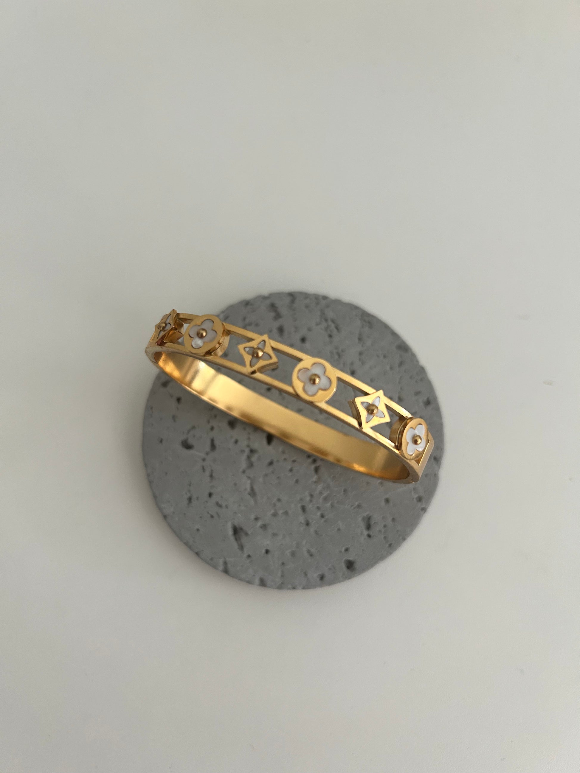 This grey mother of pearl four leaf clover bracelet is beautiful, looks lovely with other bracelets or alone. The grey mother of pearl is very pretty it almost takes on whatever colour you are wearing. As well my order arrived in a lovely packaged with great attention to detail, absolutely beautiful!