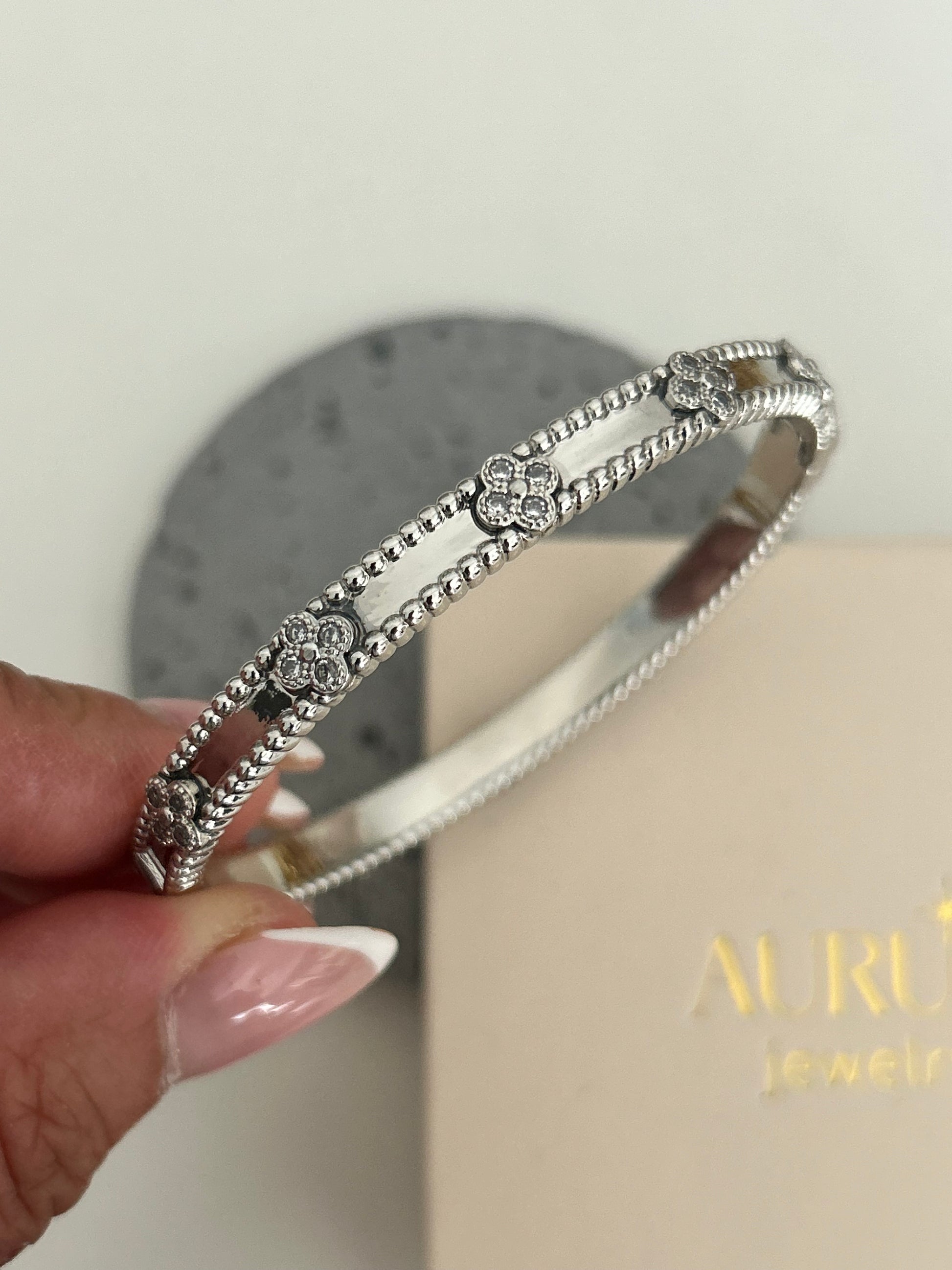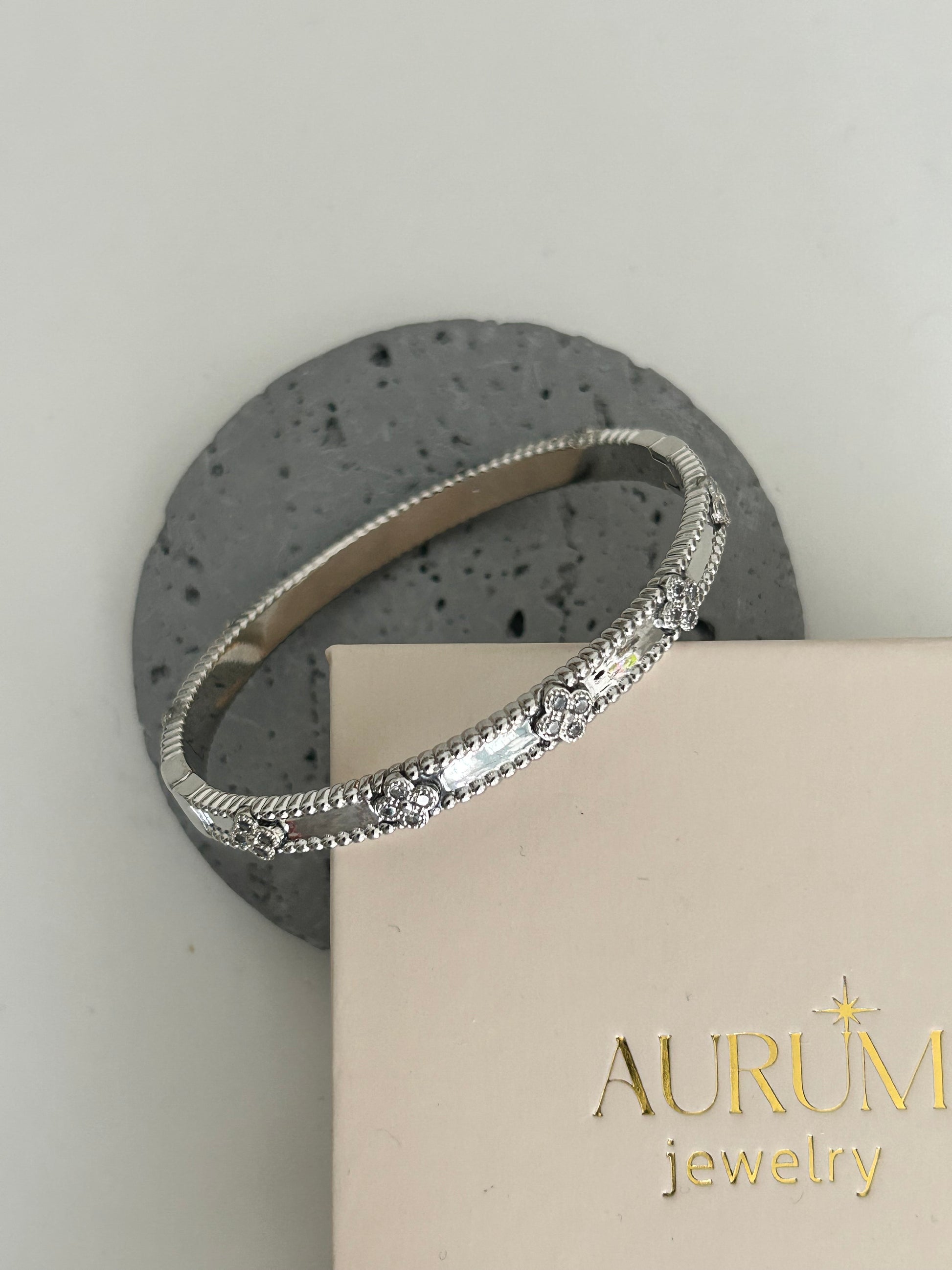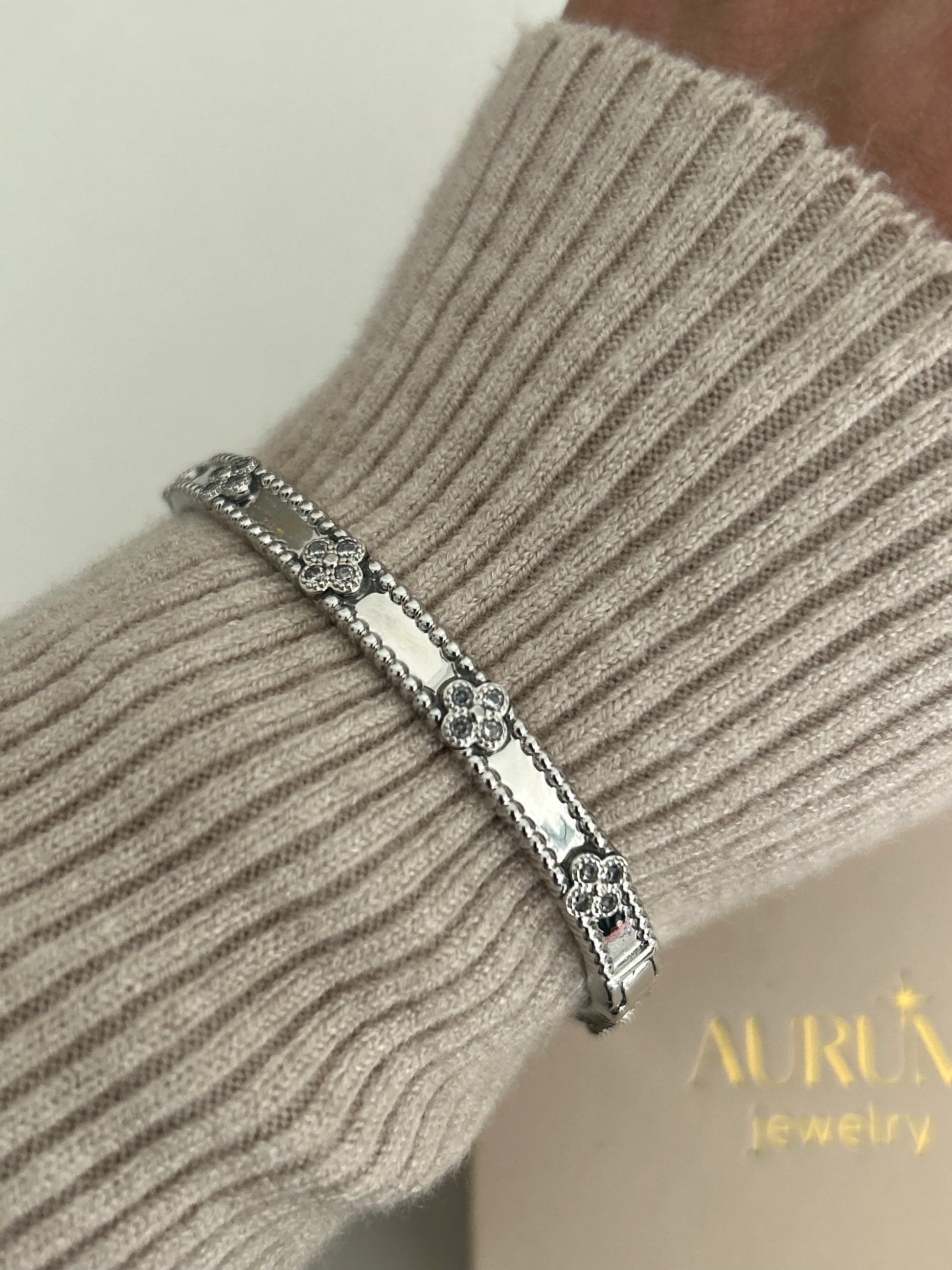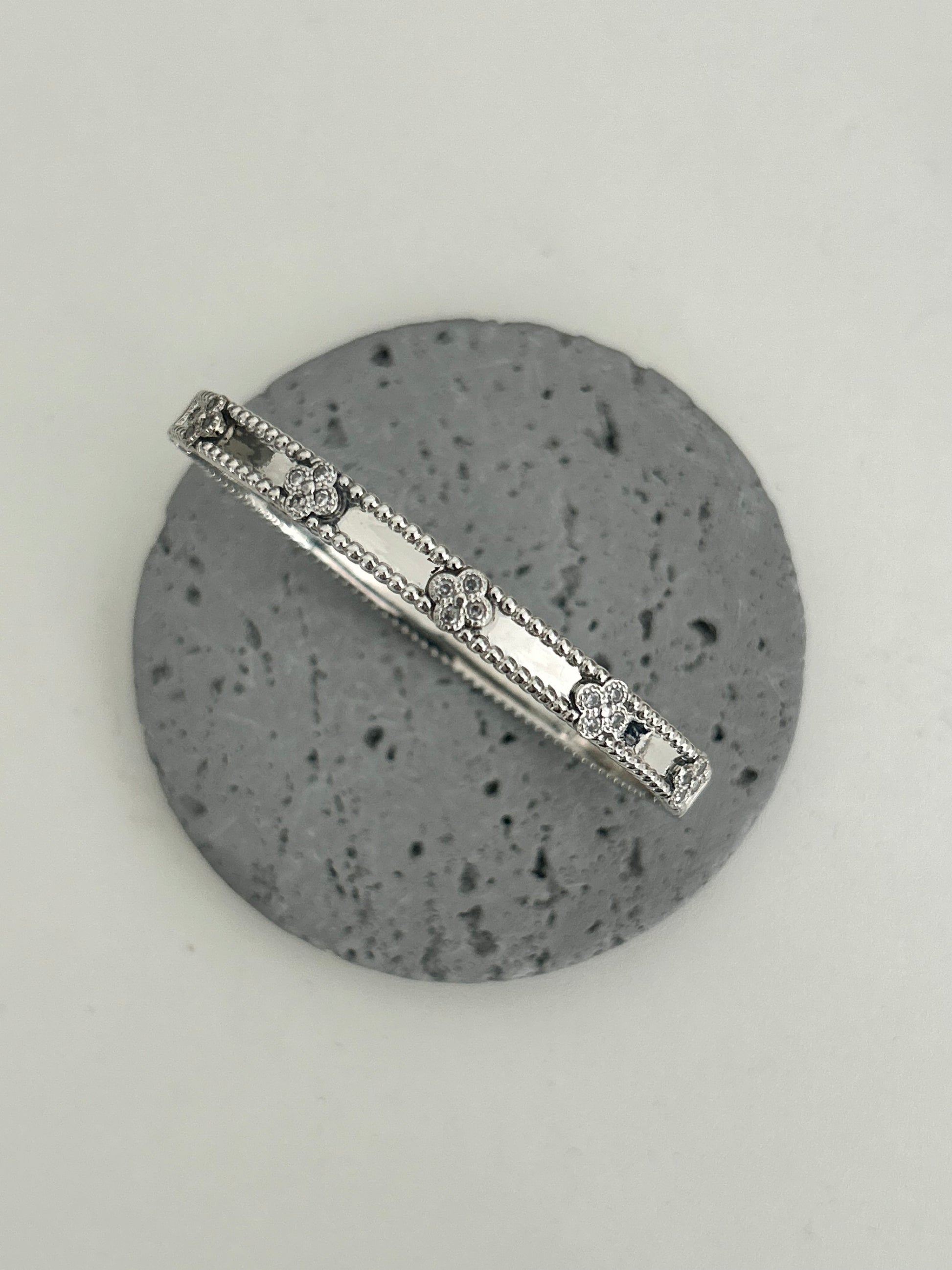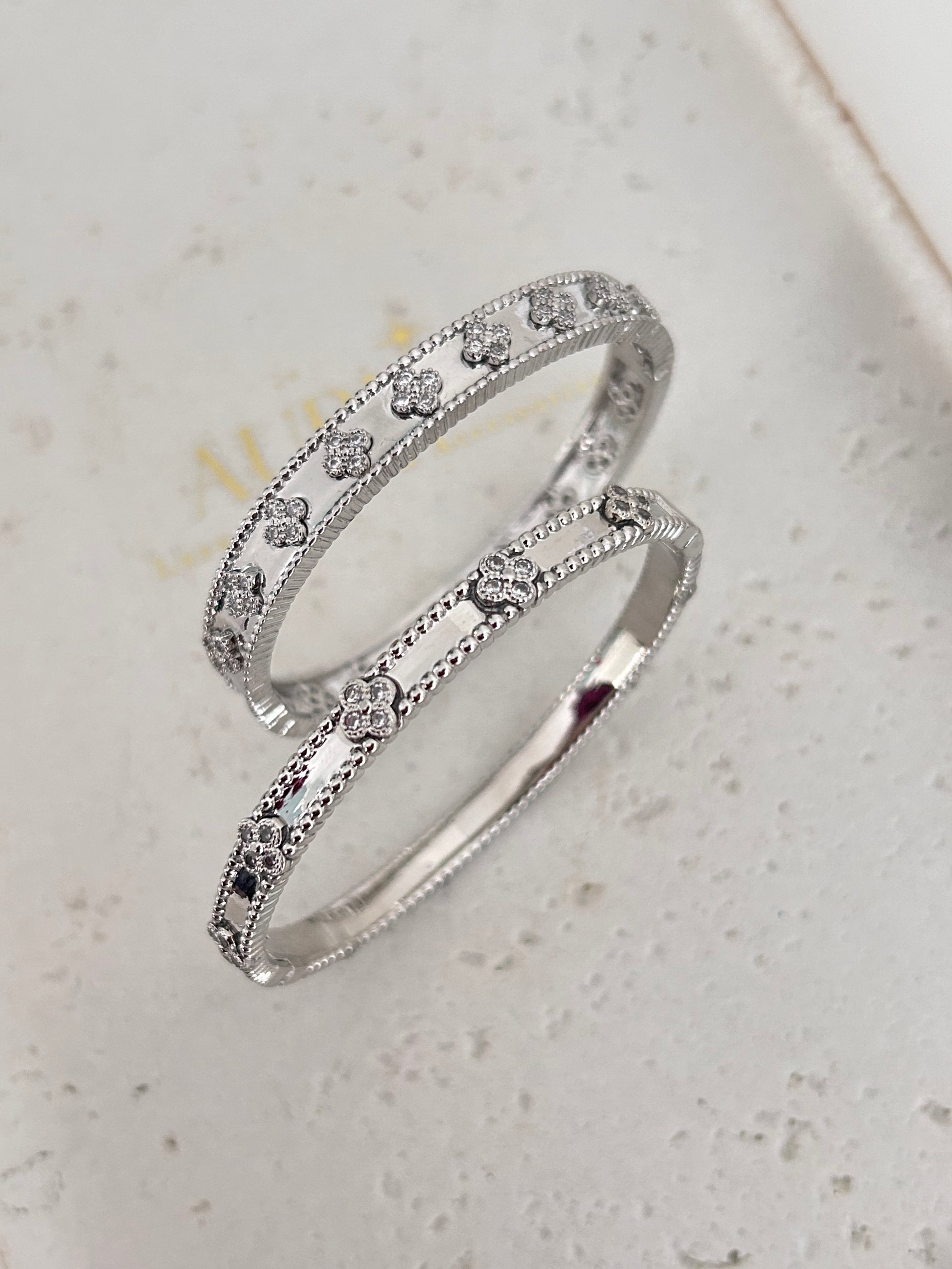 Kiran bangle •14k rhodium plated clover bangle with rhinestones