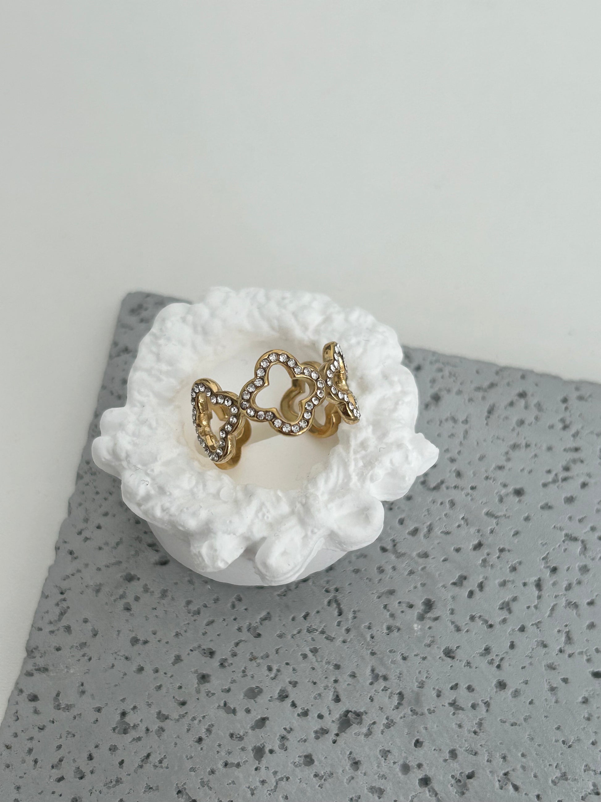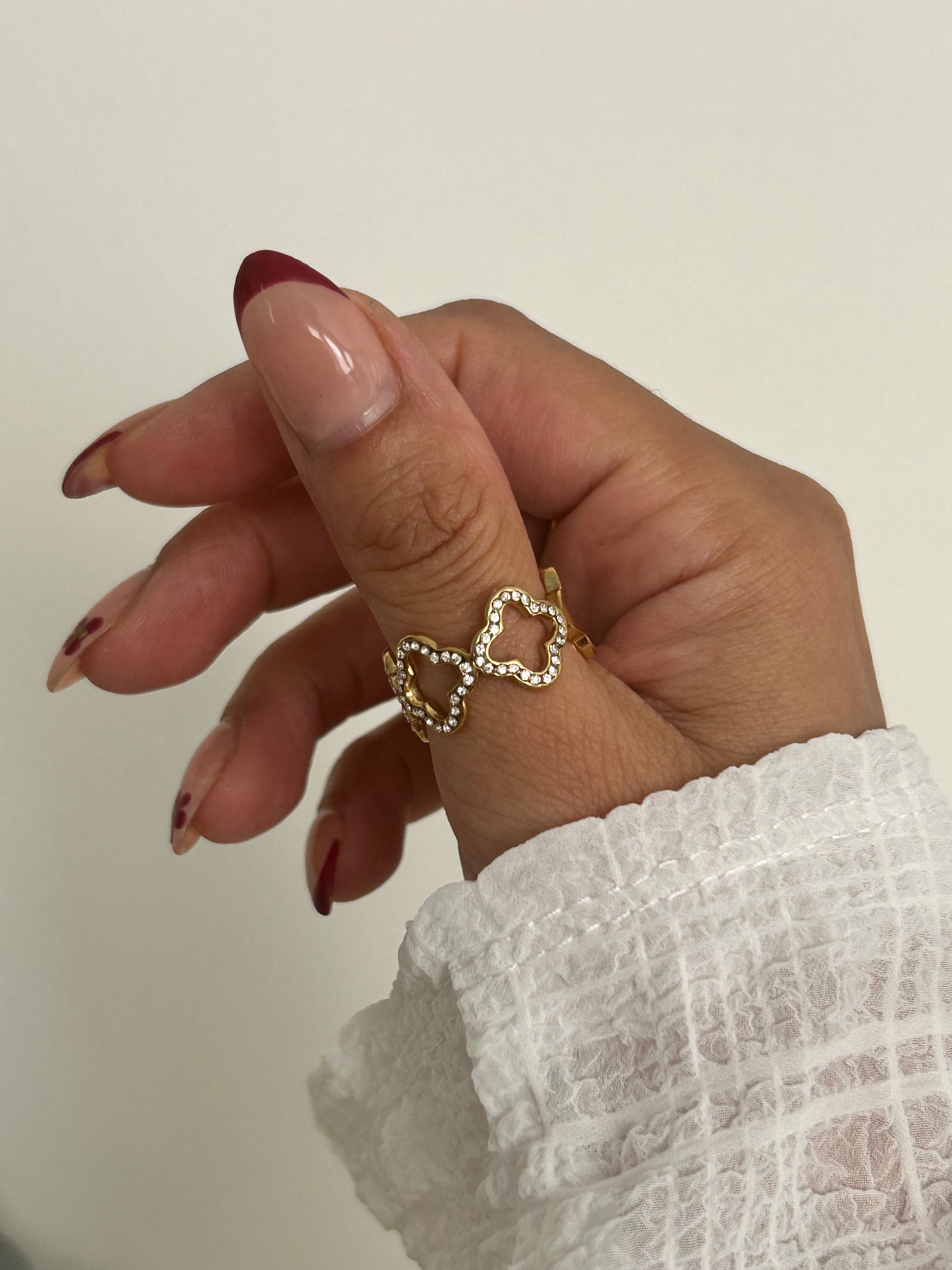 Manal ring - Adjustable Gold Sparkle Clover Ring