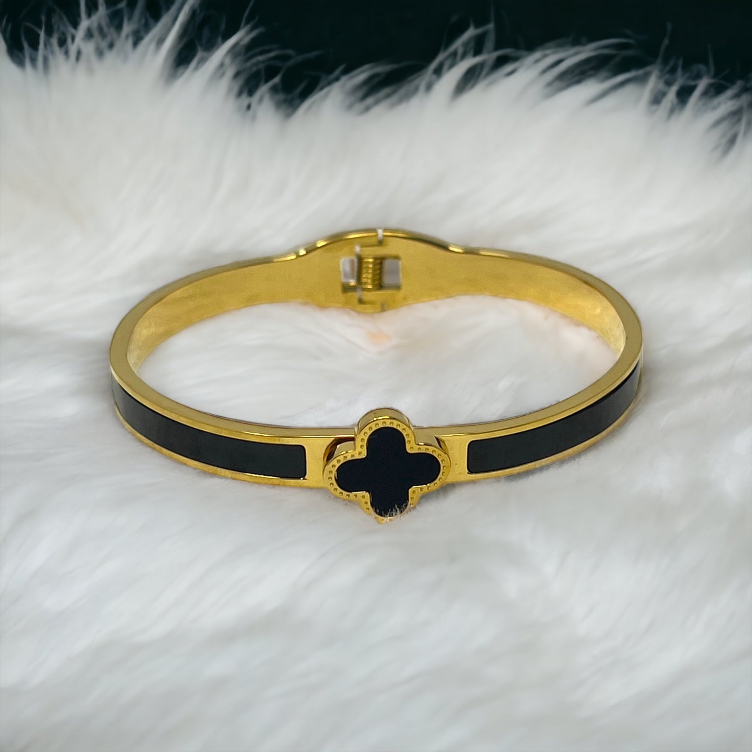 This grey mother of pearl four leaf clover bracelet is beautiful, looks lovely with other bracelets or alone. The grey mother of pearl is very pretty it almost takes on whatever colour you are wearing. As well my order arrived in a lovely packaged with great attention to detail, absolutely beautiful!