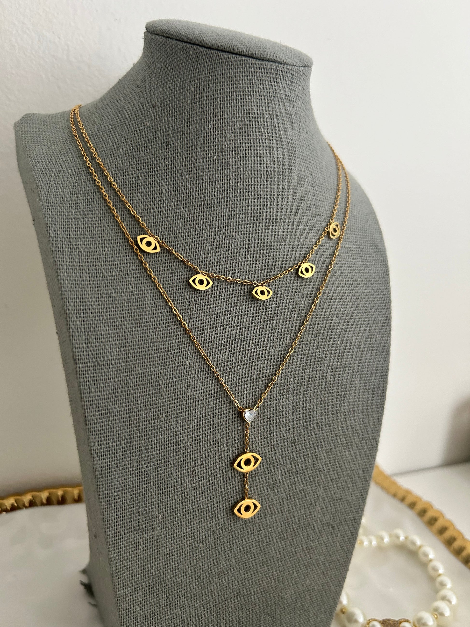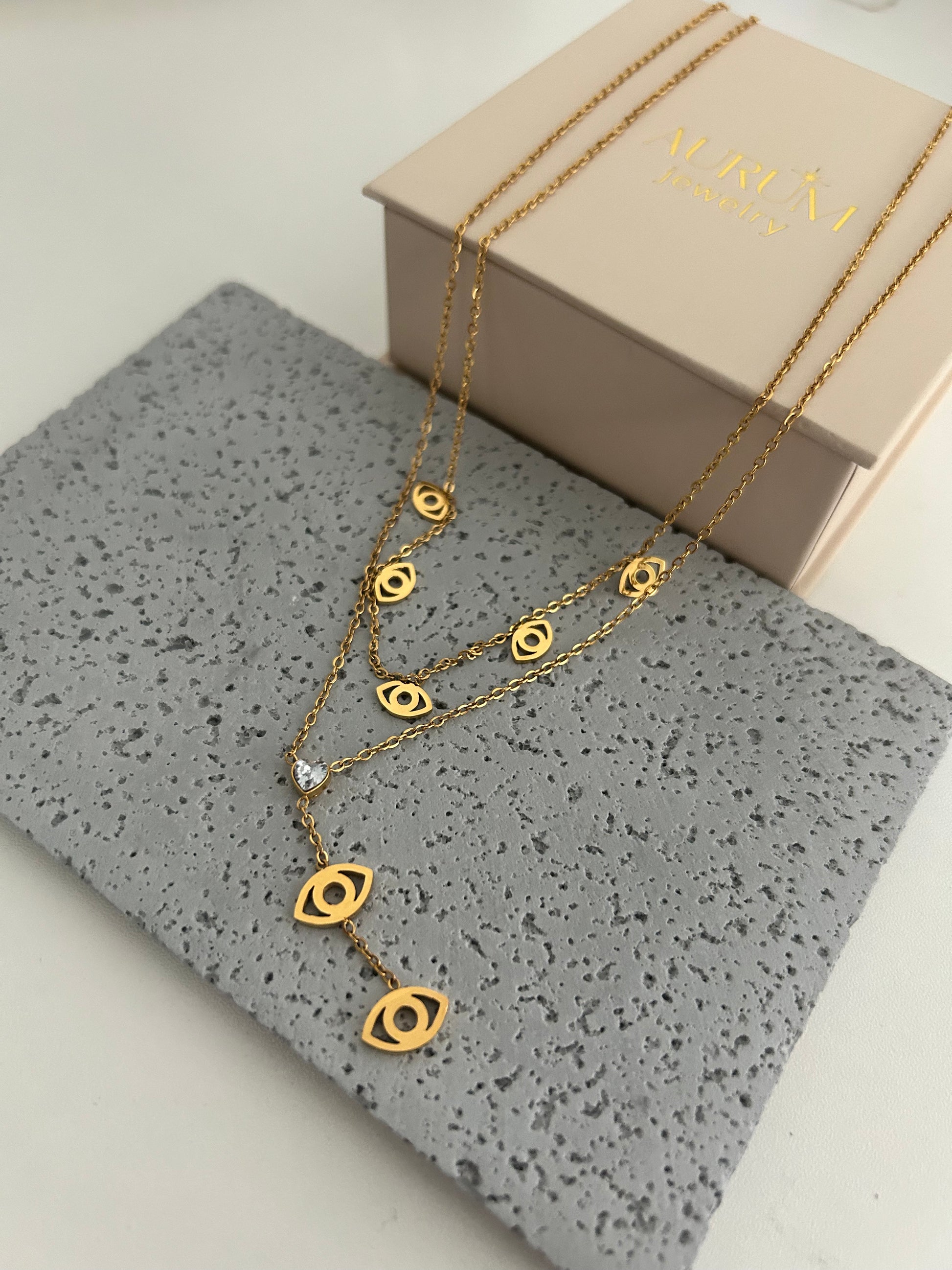 Nazar Necklace • Doible layer lariat Evil eye necklace