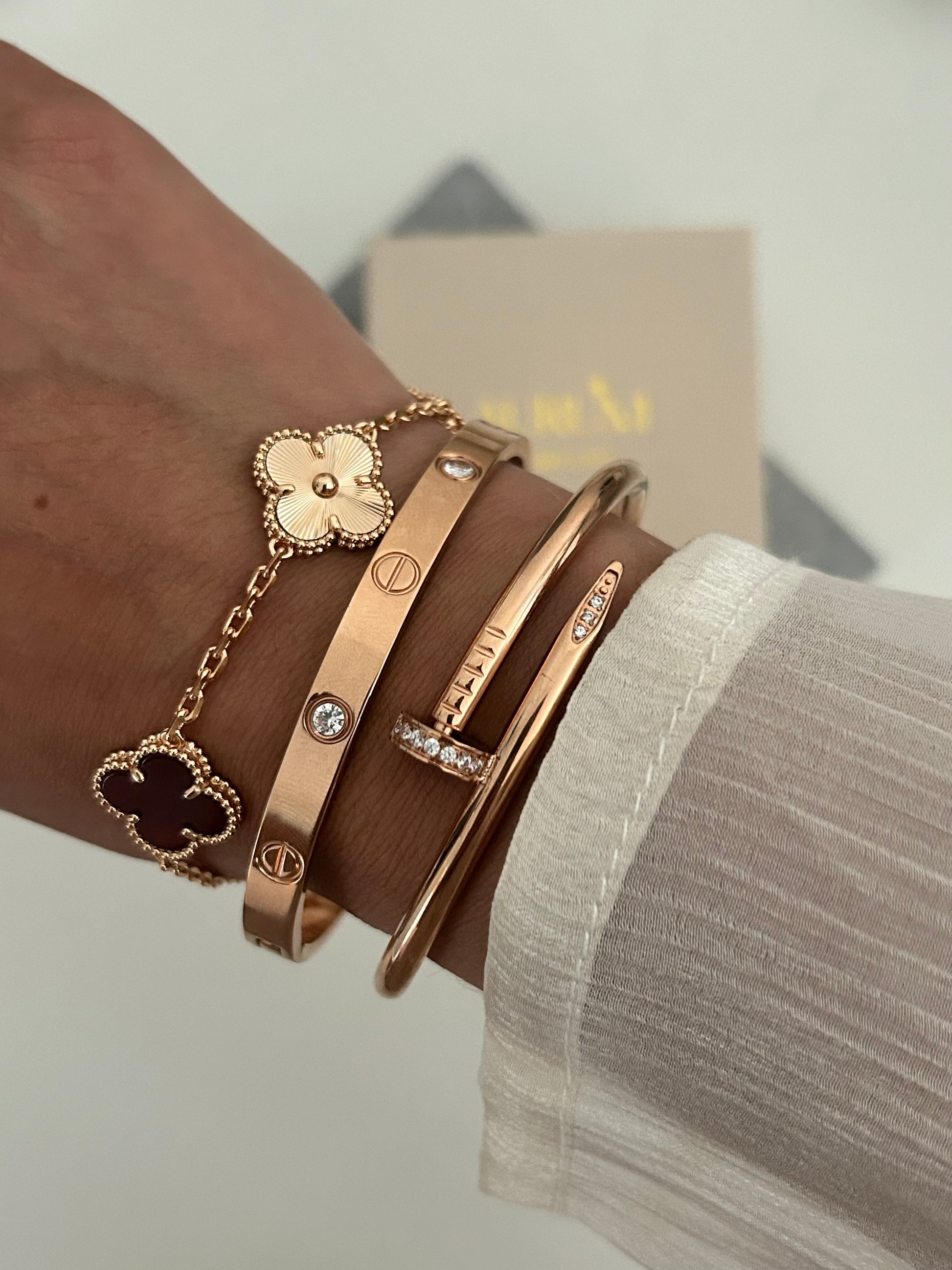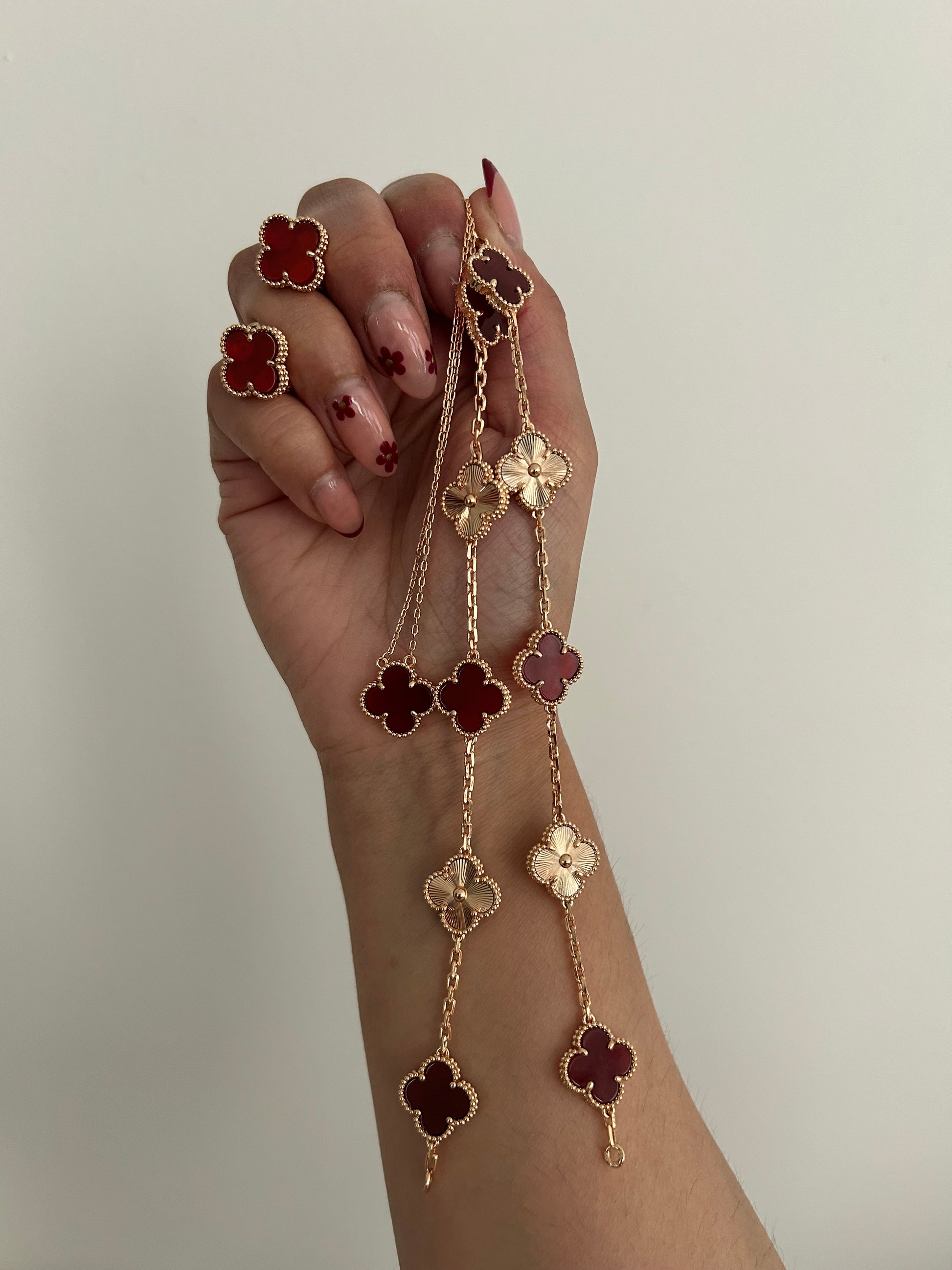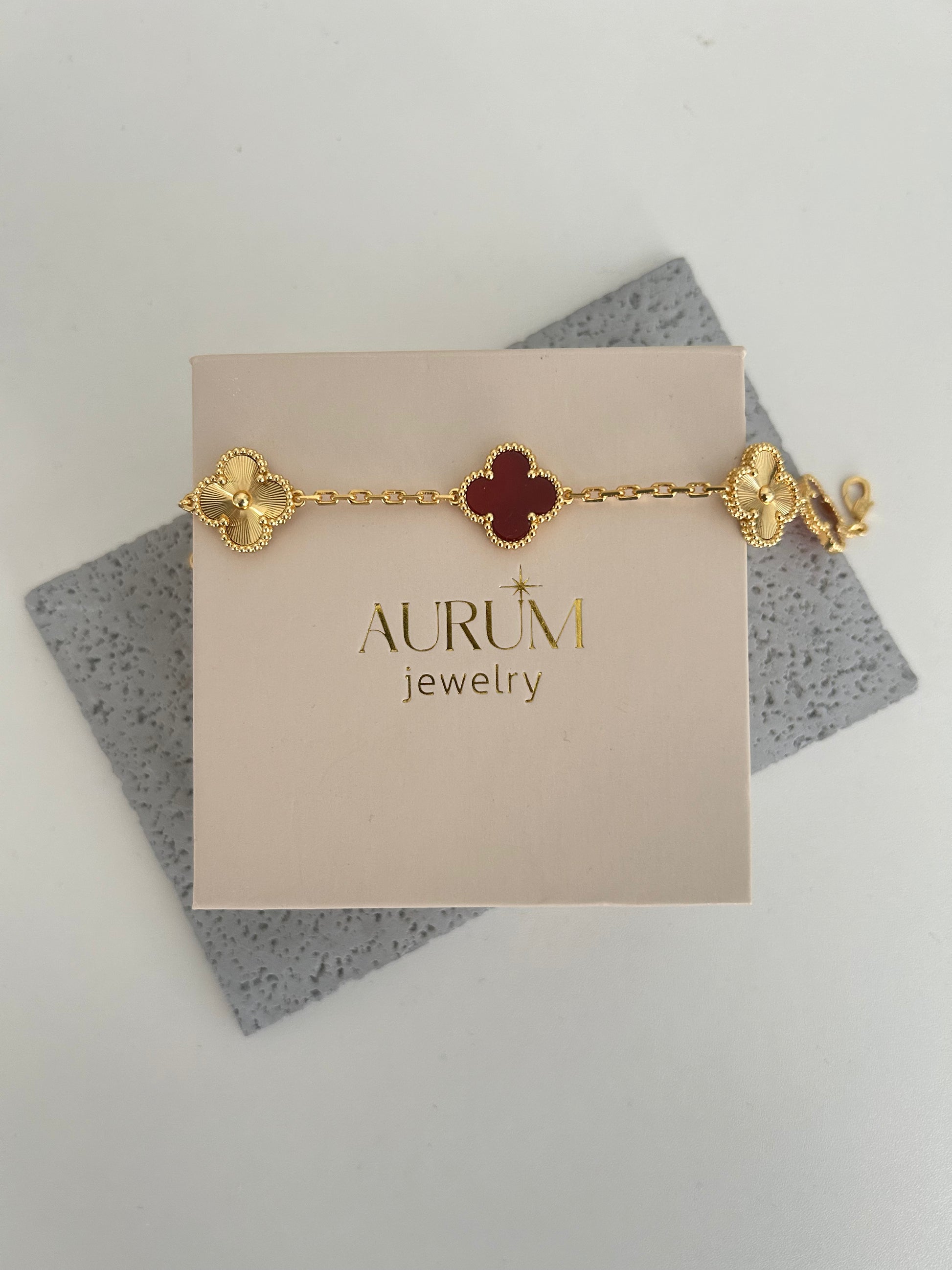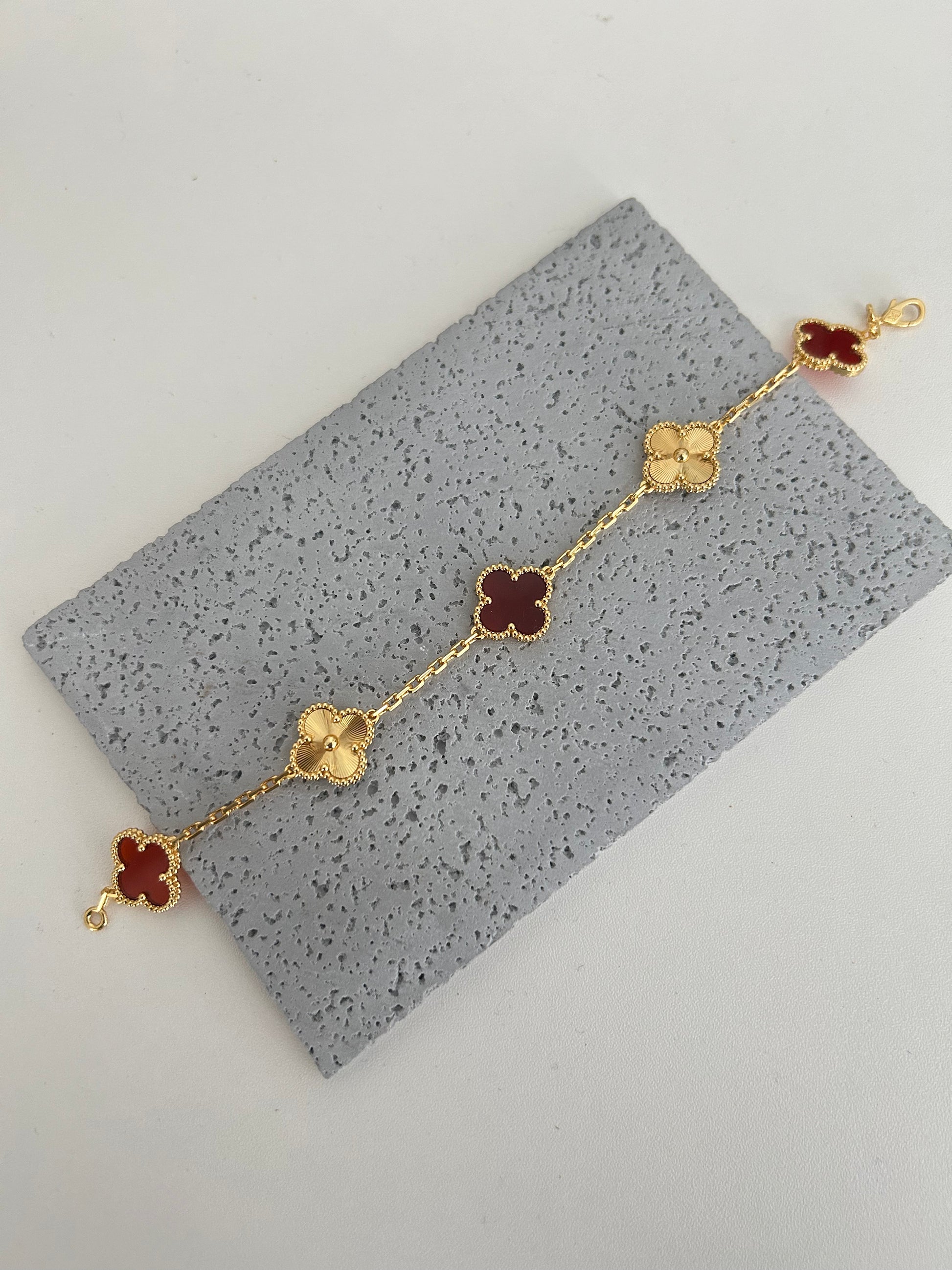 - 5 gold clovers bracelet (2 rose gold or gold, 3 wine colour clover double sided)