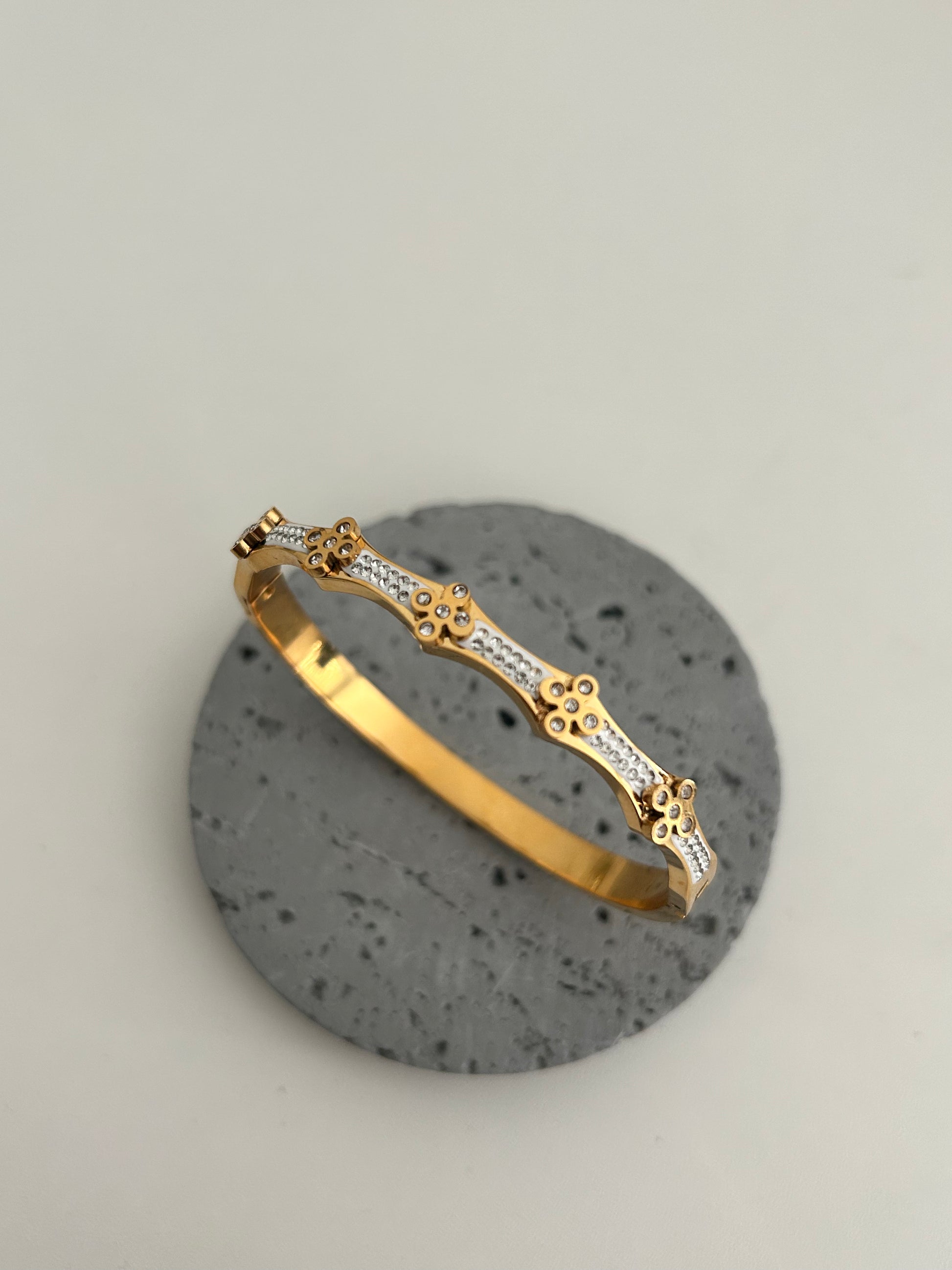 - GOLD PLATED OVER STAINLESS STEEL embellished with ZIRCONIA STONES