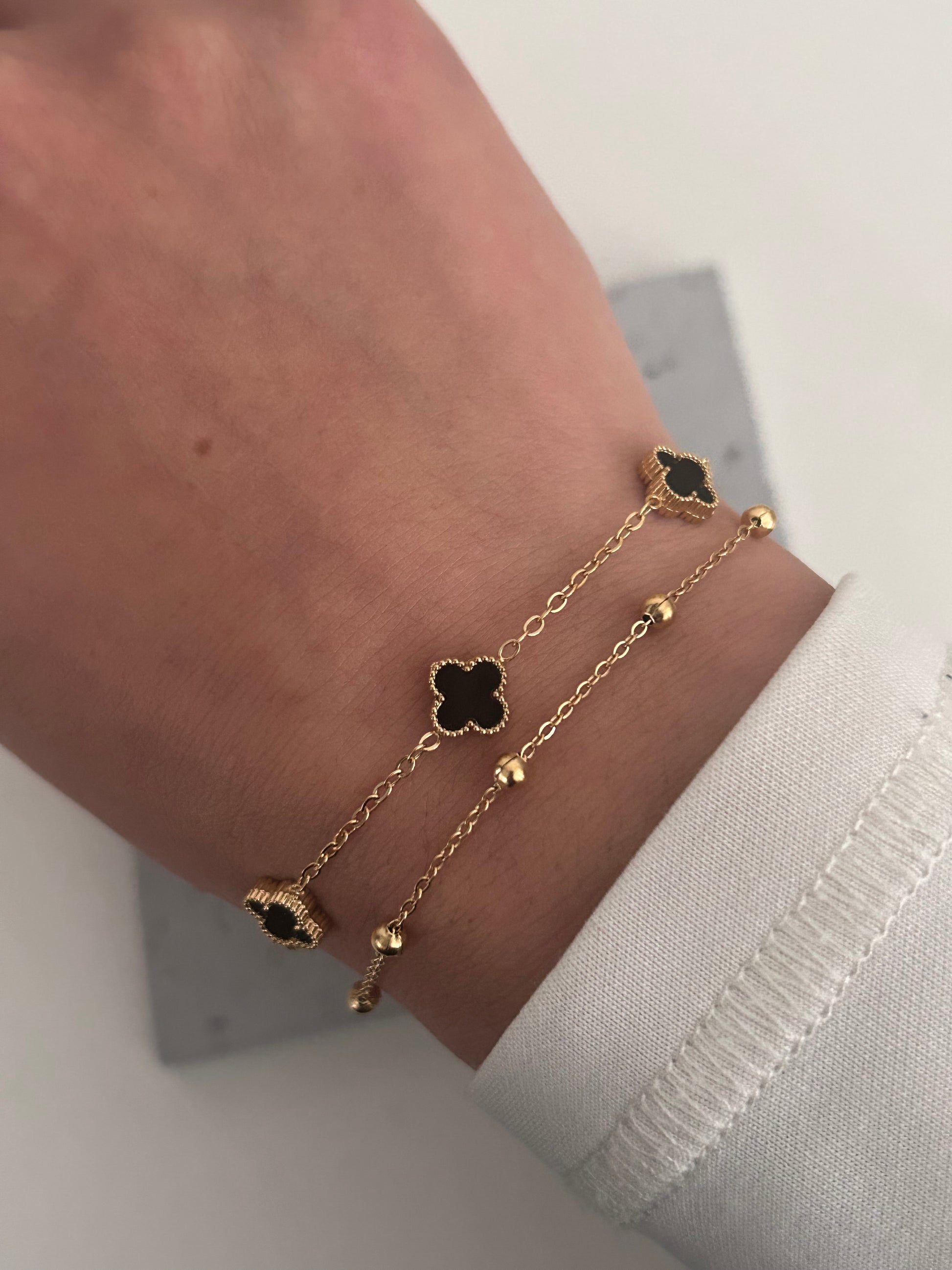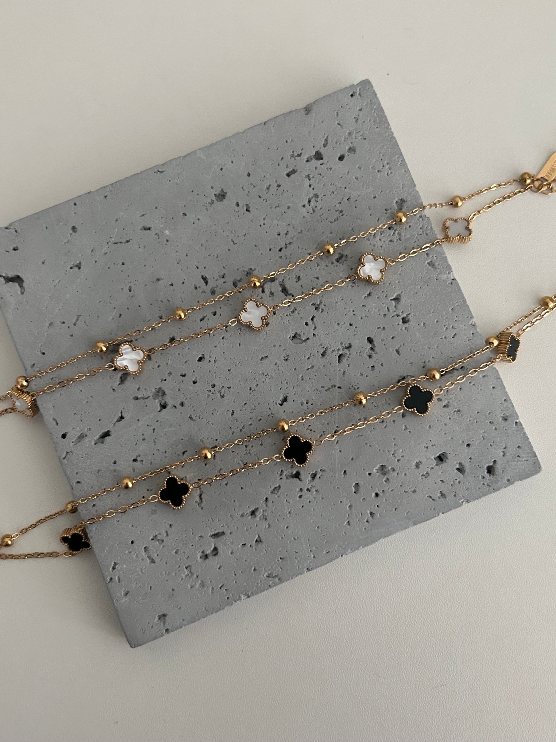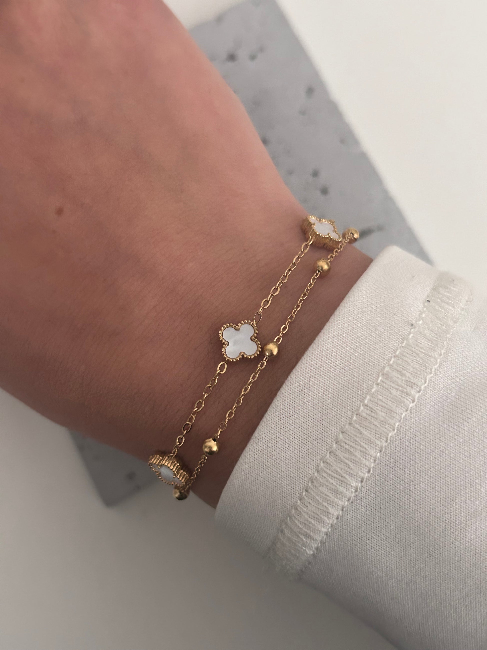 Sidra bracelet - Double layer Four-leaf Gold dainty clover bracelet