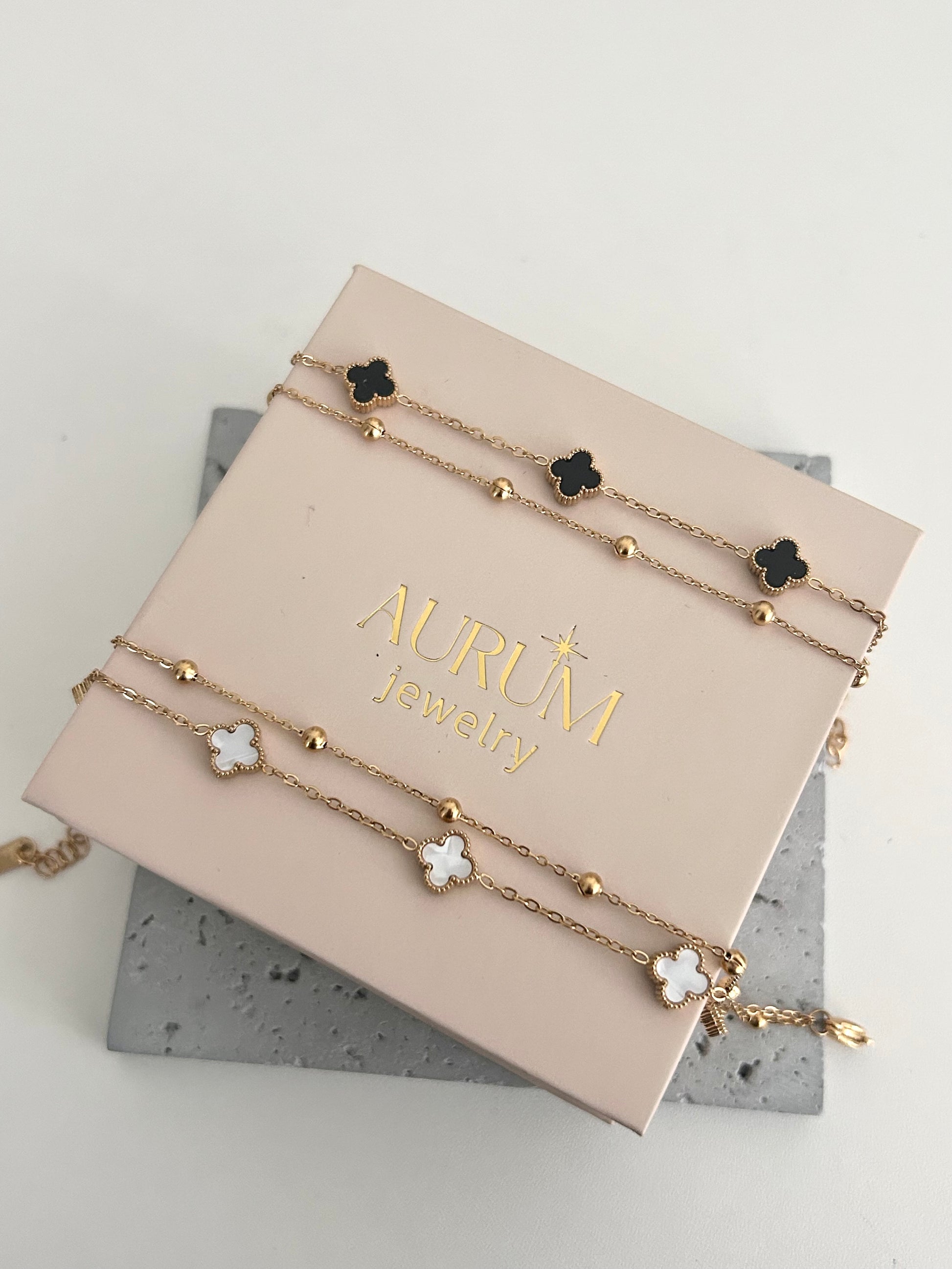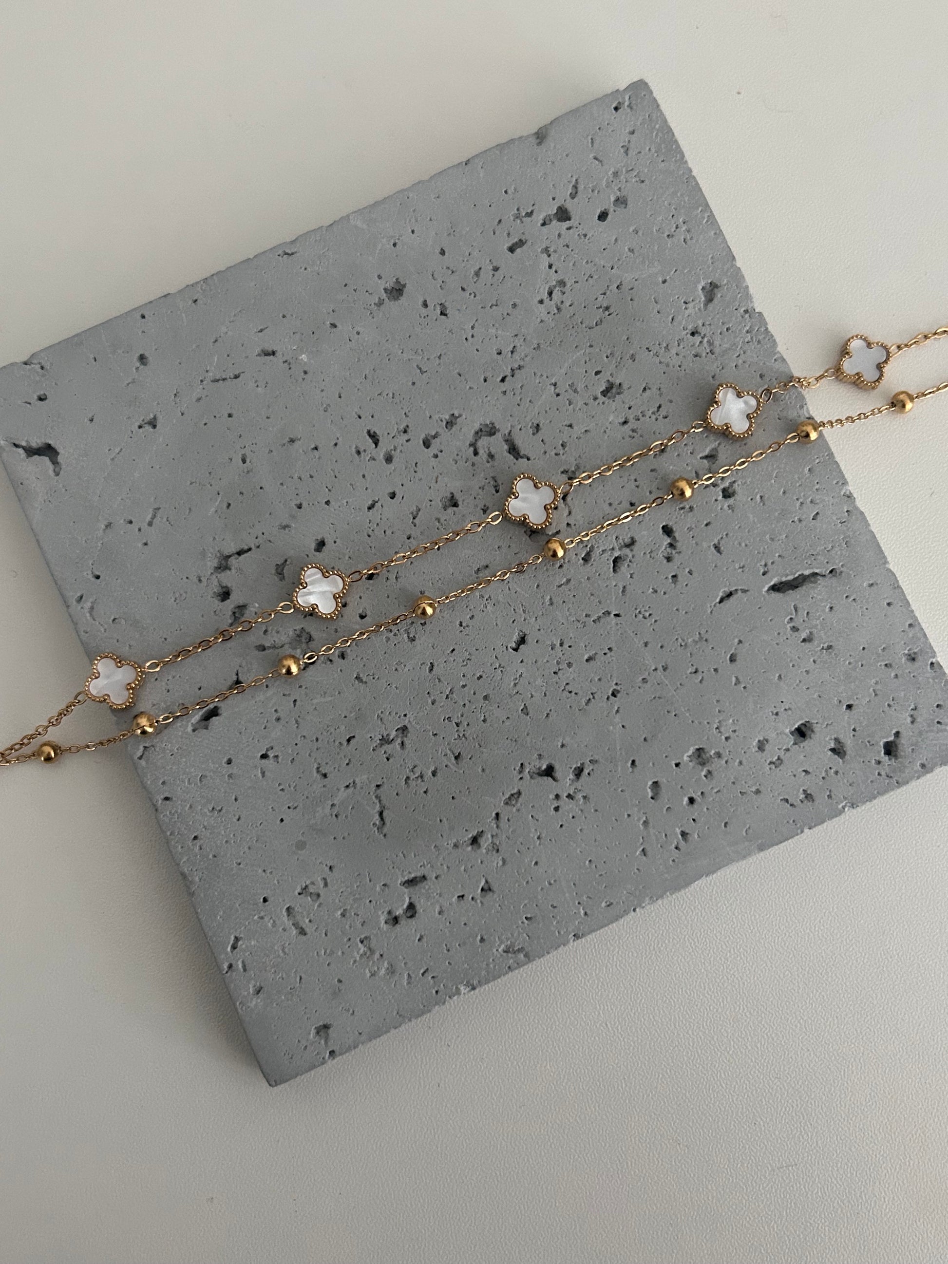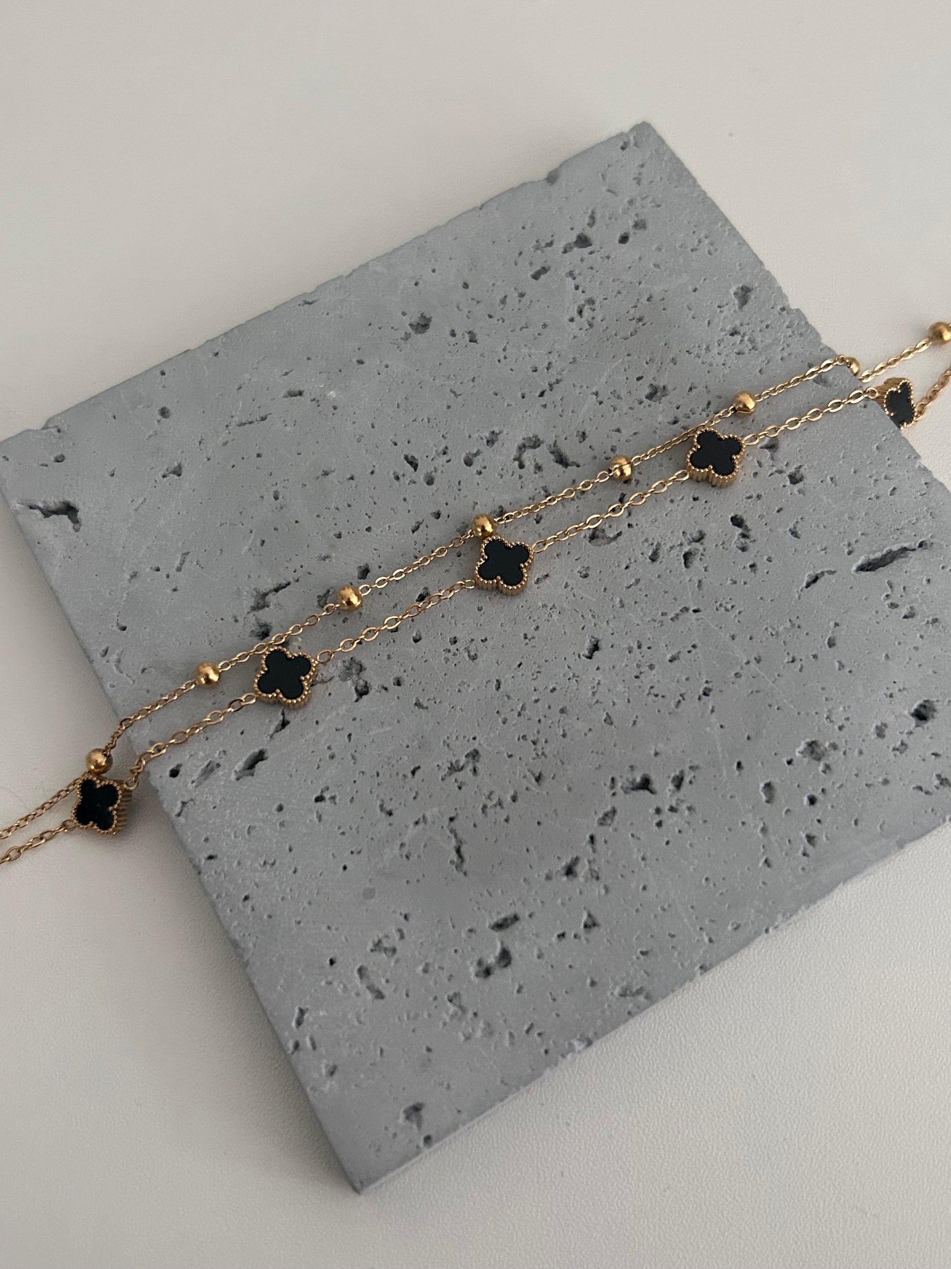 Sidra bracelet - Double layer Four-leaf Gold dainty clover bracelet