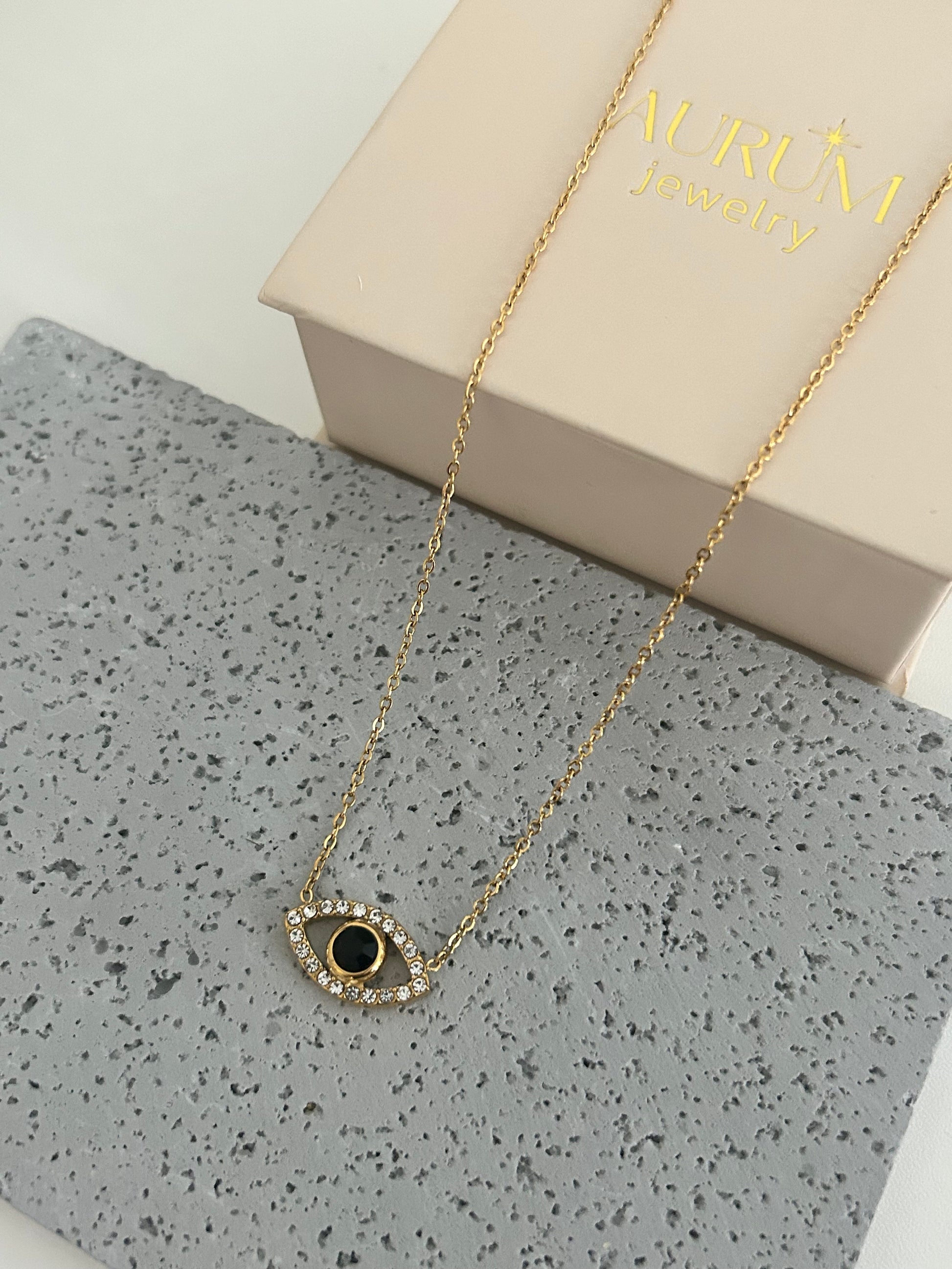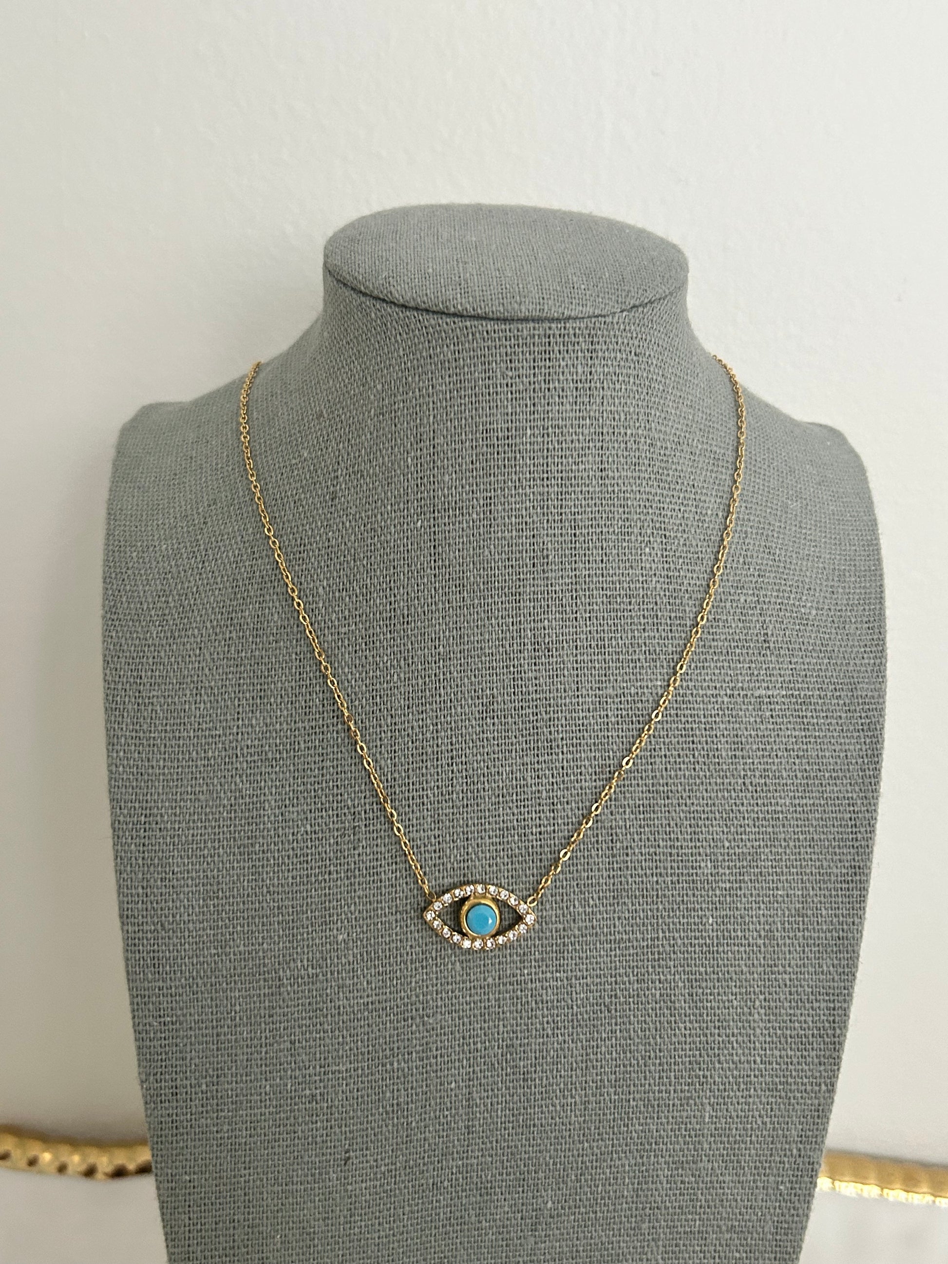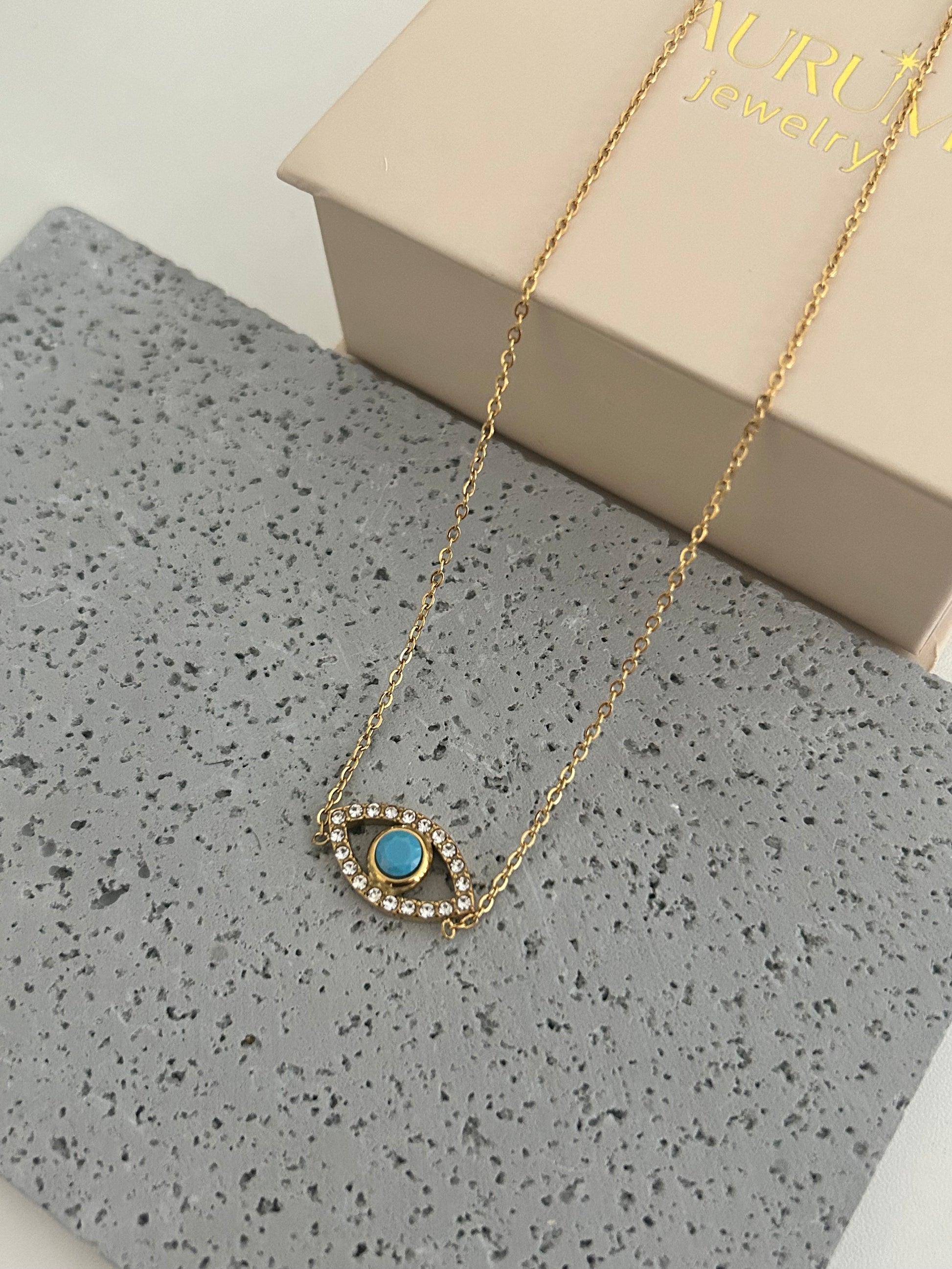 Alicia Necklace • Gold evil eye necklace key features: