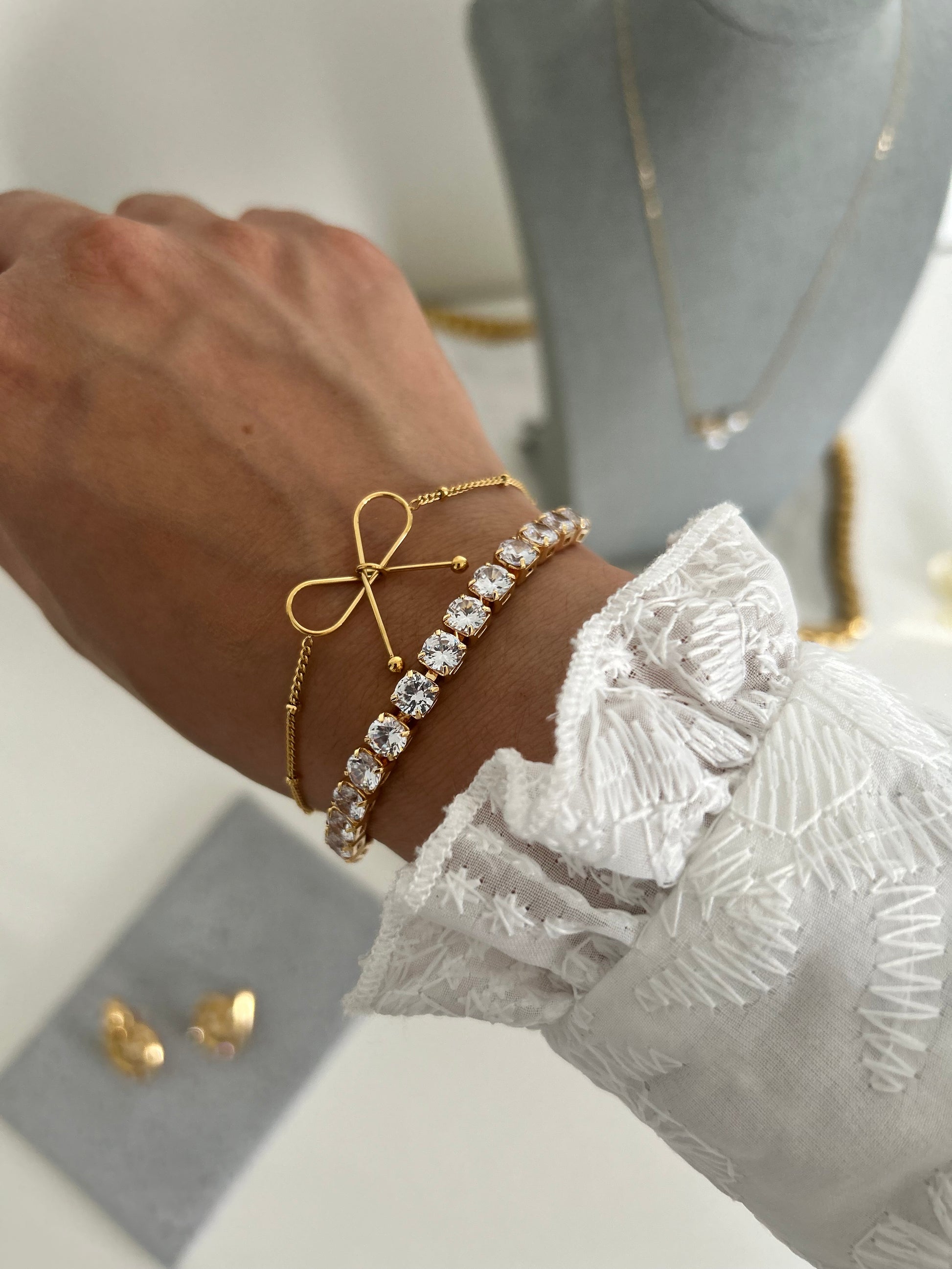 Why wait? Add a little sparkle to your life with the Anais Gold Bow Bracelet – it's stylish, durable, and oh-so-comfy!