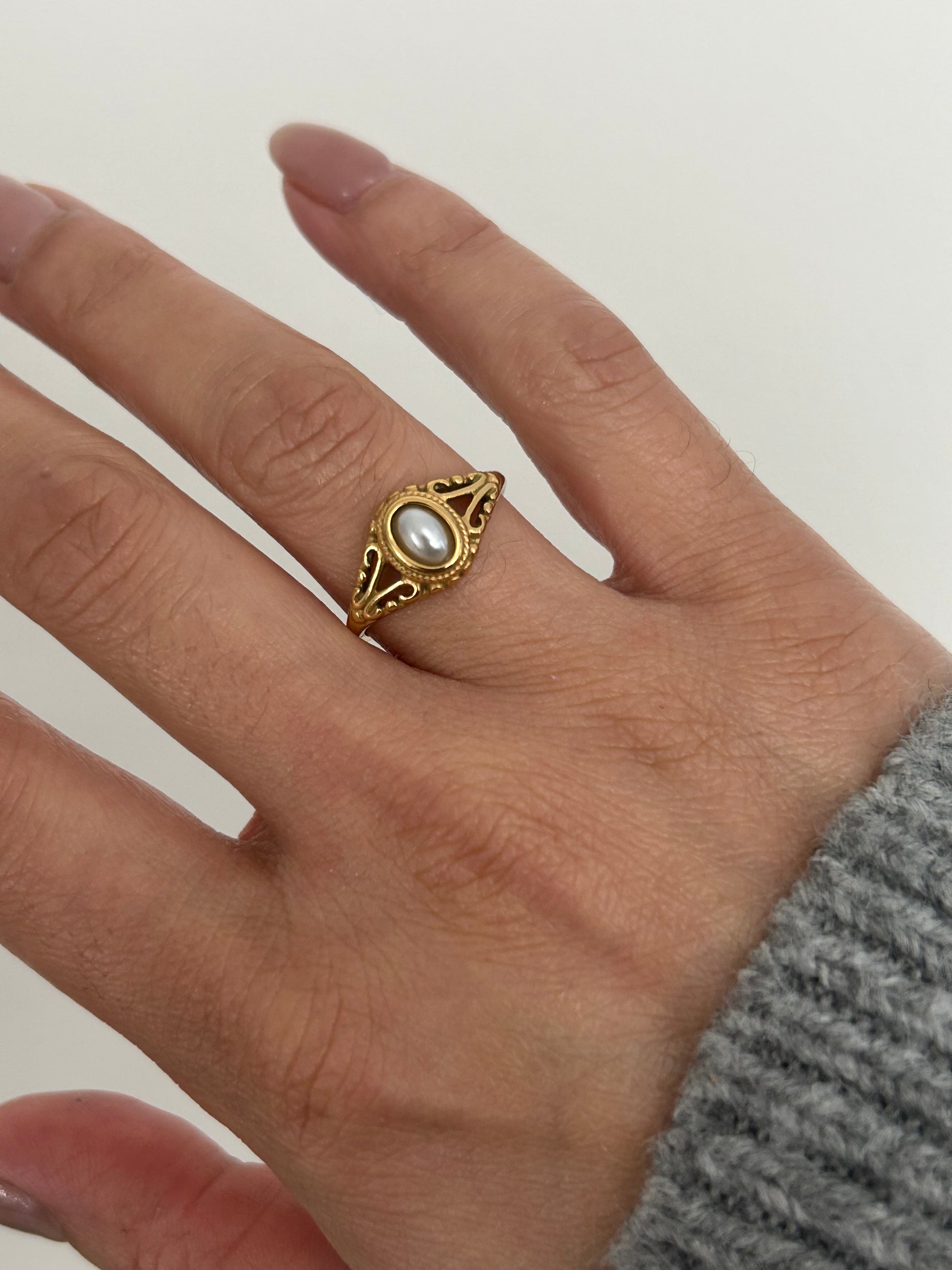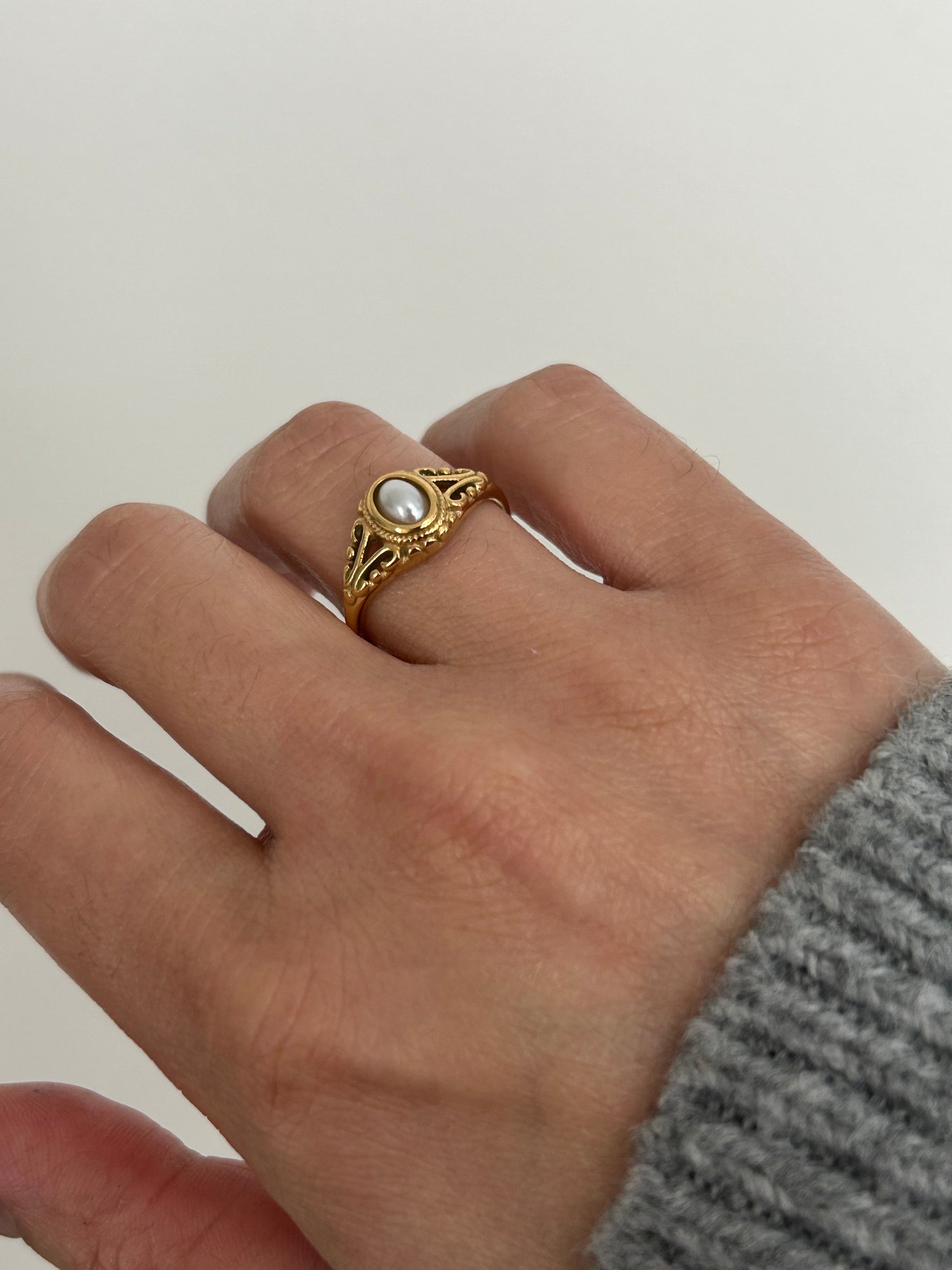 Annie Ring • Anti-tarnish Vintage Pearl gold ring