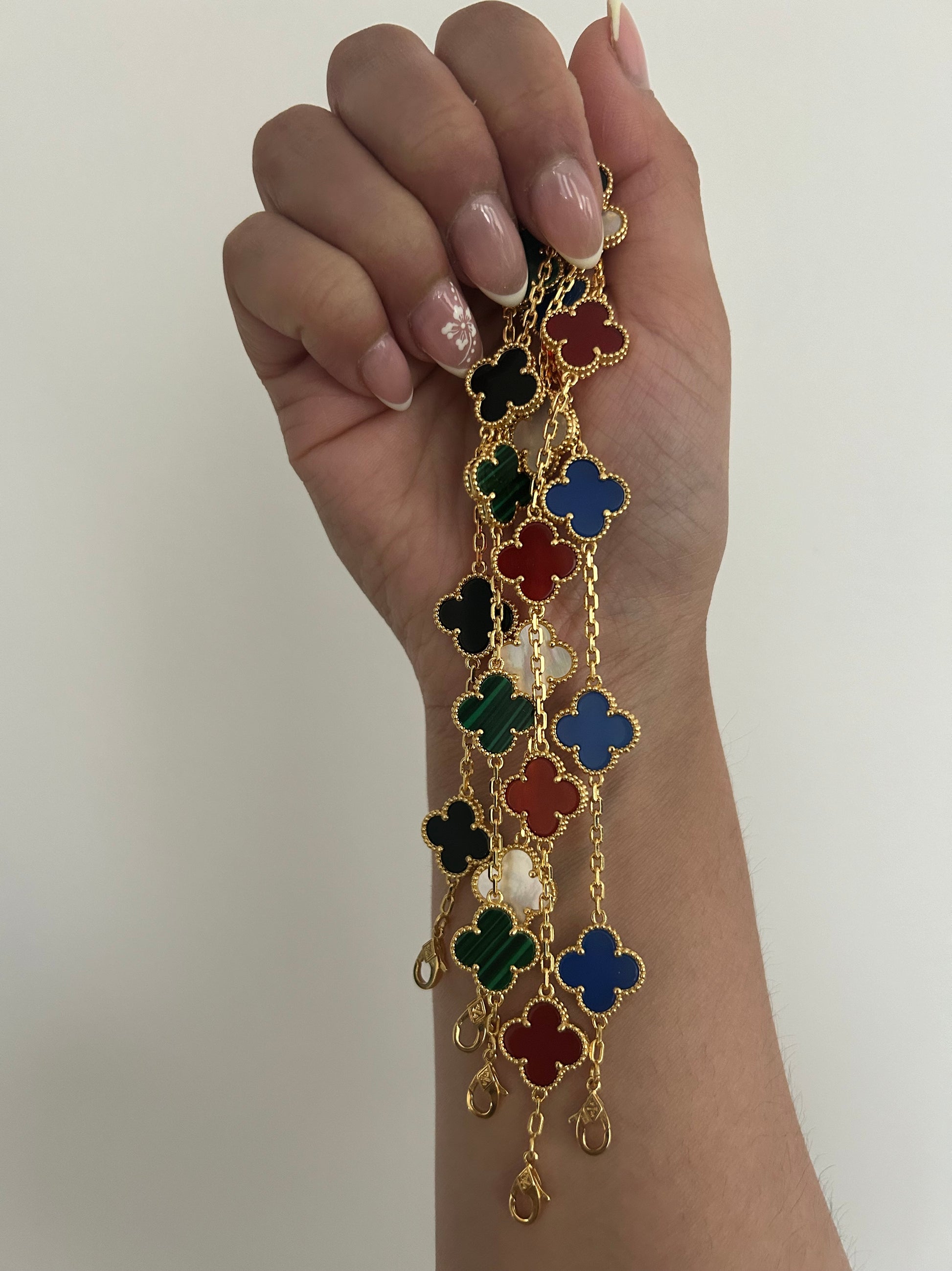This grey mother of pearl four leaf clover bracelet is beautiful, looks lovely with other bracelets or alone. The grey mother of pearl is very pretty it almost takes on whatever colour you are wearing. As well my order arrived in a lovely packaged with great attention to detail, absolutely beautiful!