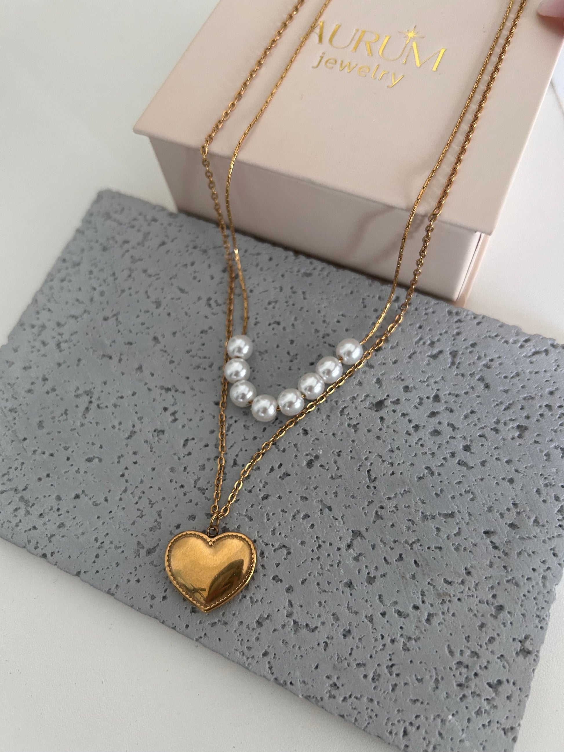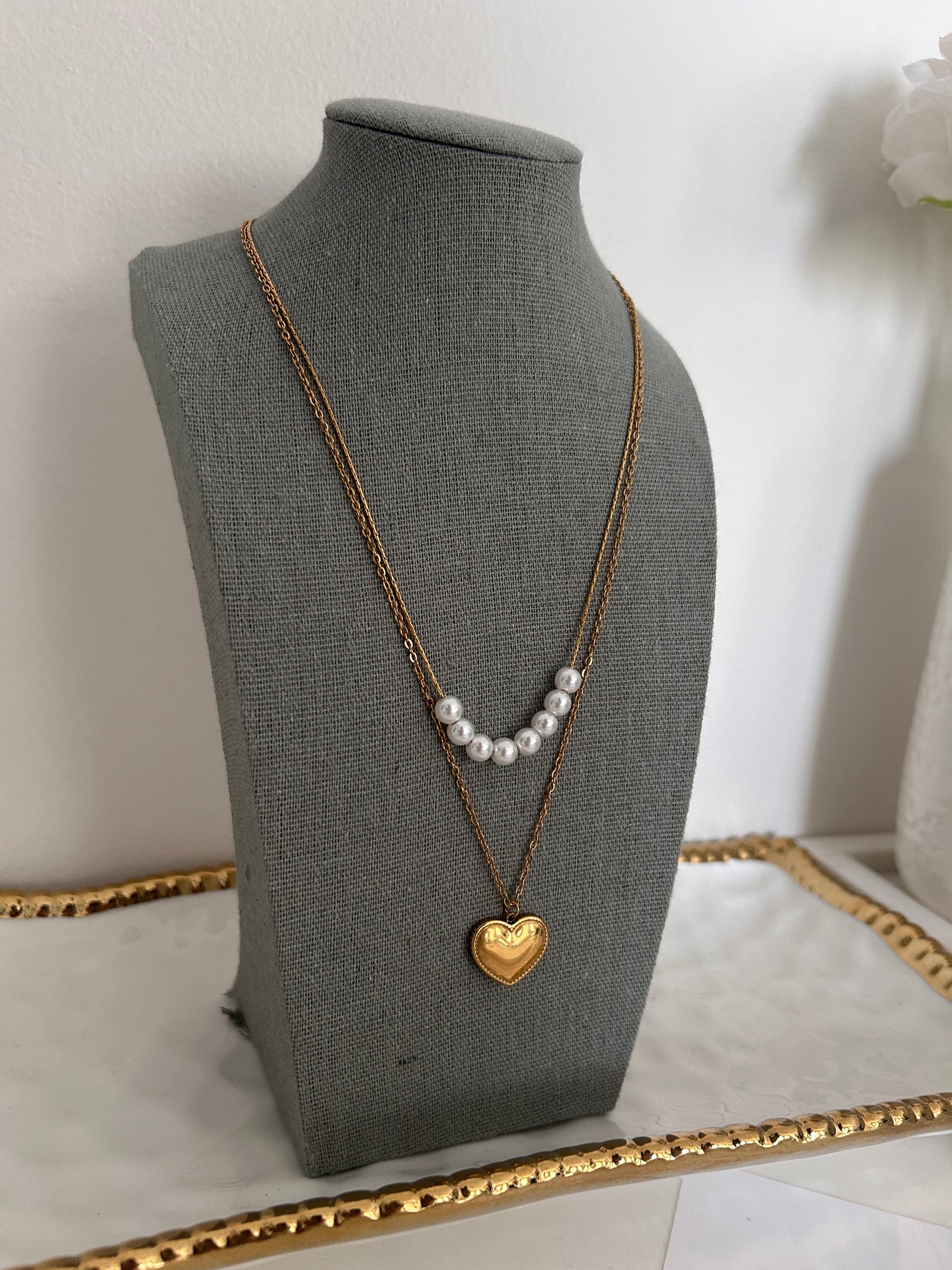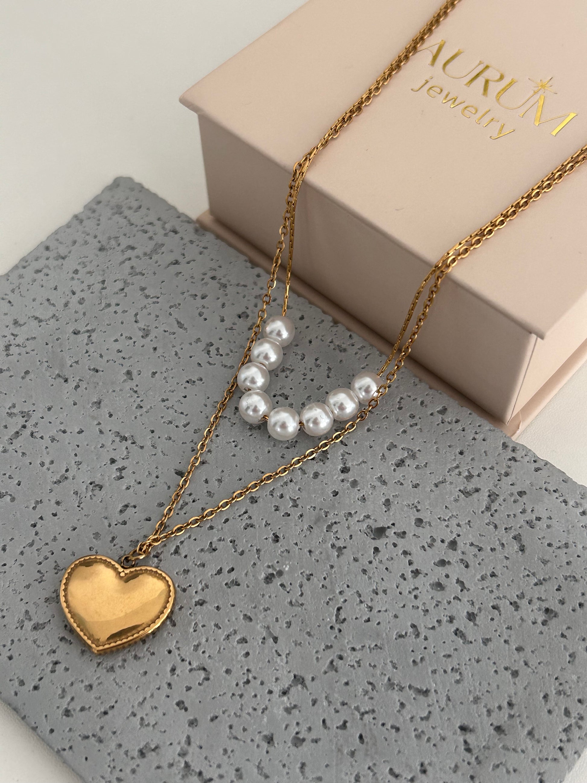 Ayela Necklace • Double Layer Pearly heart Necklace