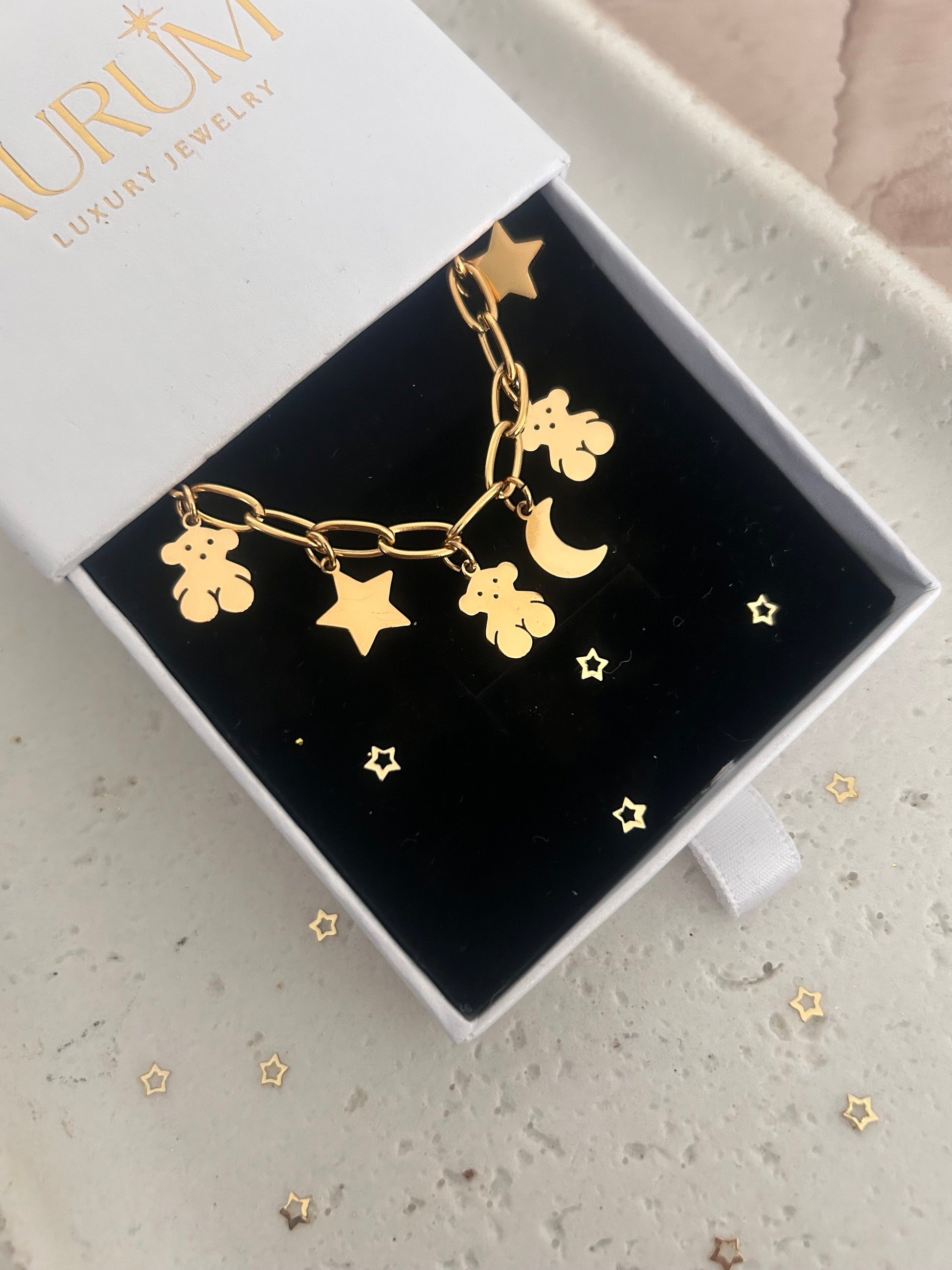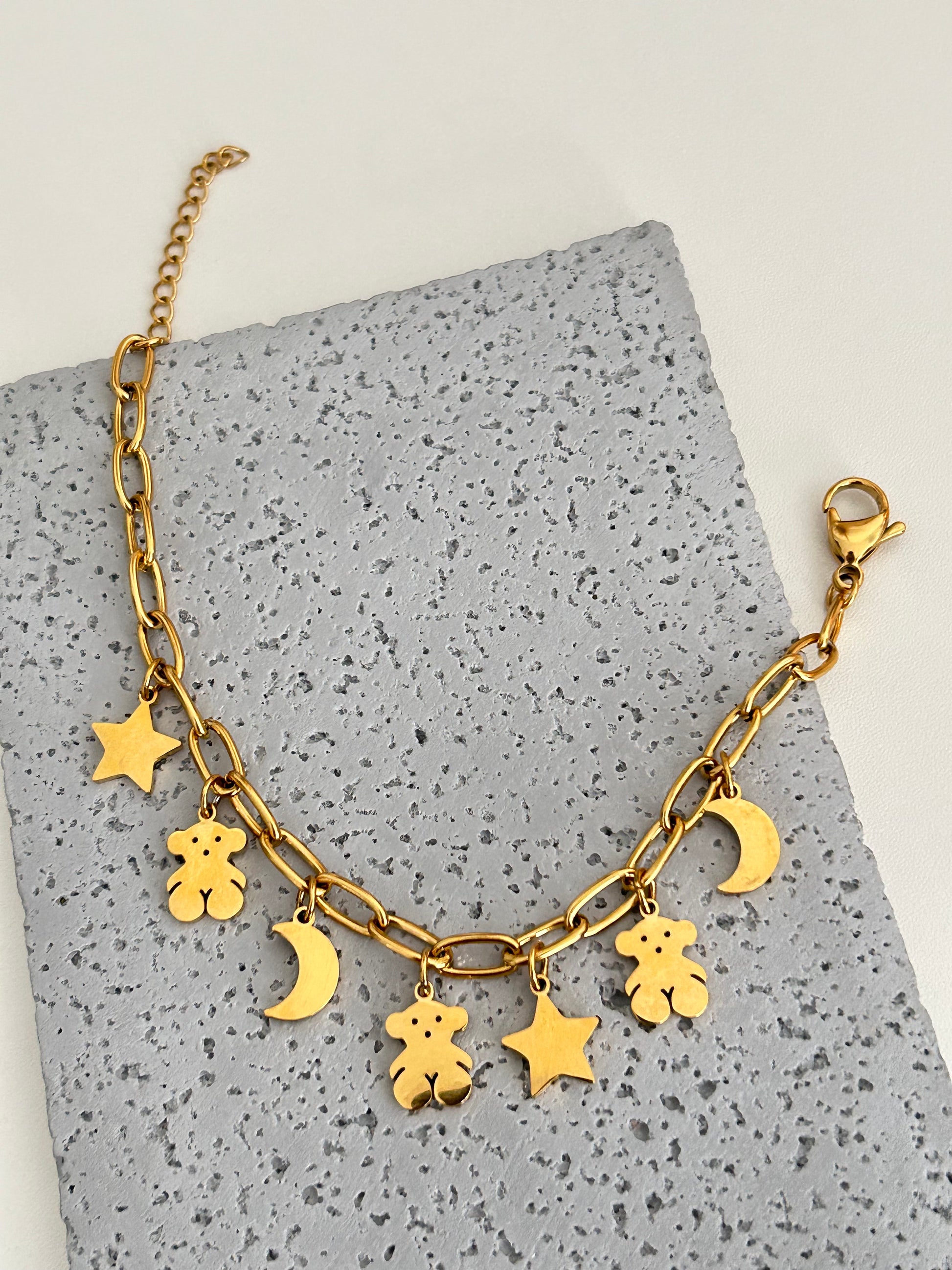 Meet Barea Bear Bracelet! It's your new go-to for adding a touch of timeless charm and cuteness to any outfit. Crafted from 18K gold plated stainless steel, it's simple yet stunning.