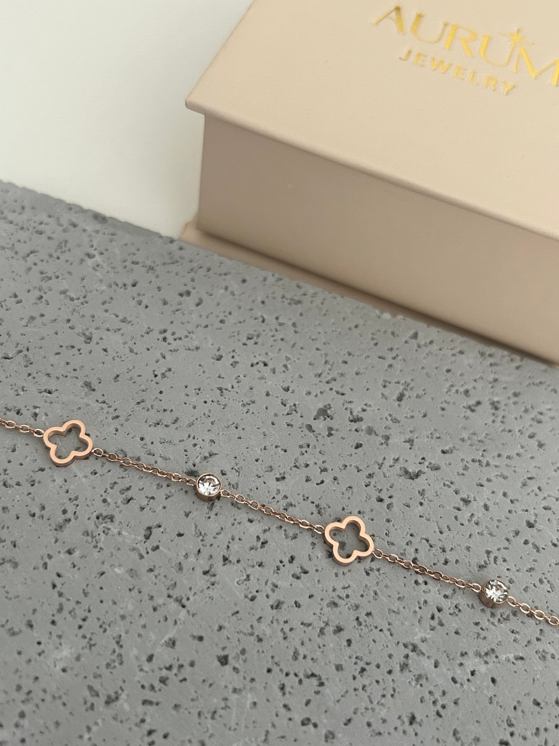 This grey mother of pearl four leaf clover bracelet is beautiful, looks lovely with other bracelets or alone. The grey mother of pearl is very pretty it almost takes on whatever colour you are wearing. As well my order arrived in a lovely packaged with great attention to detail, absolutely beautiful!