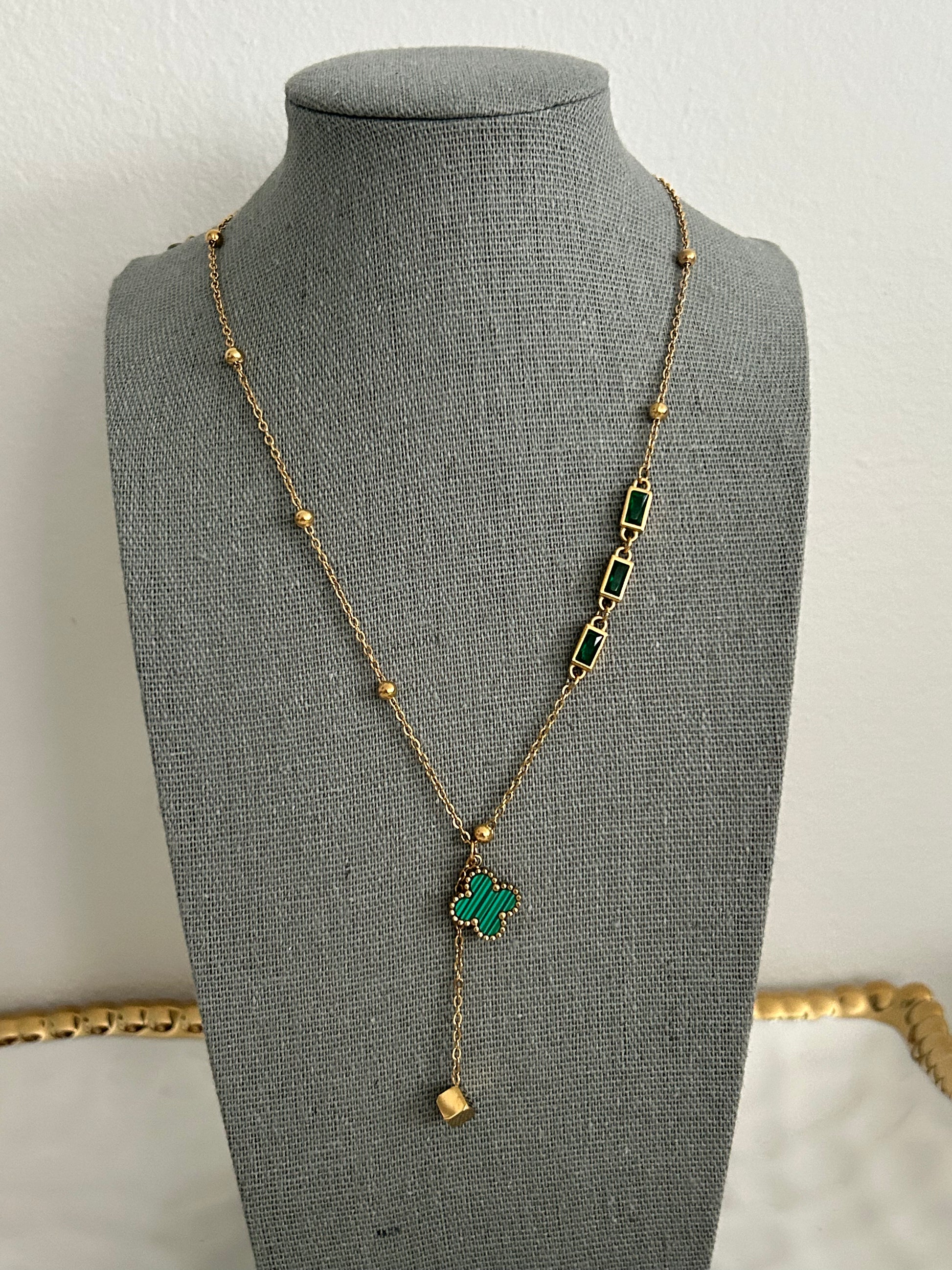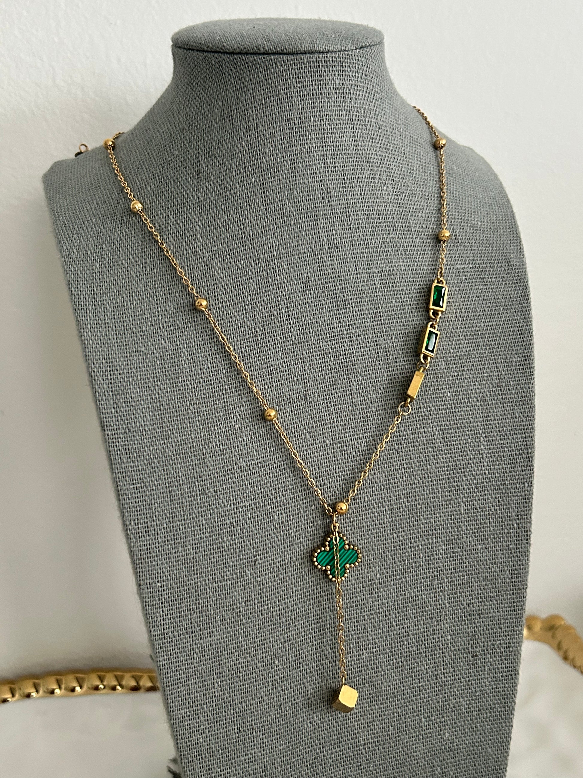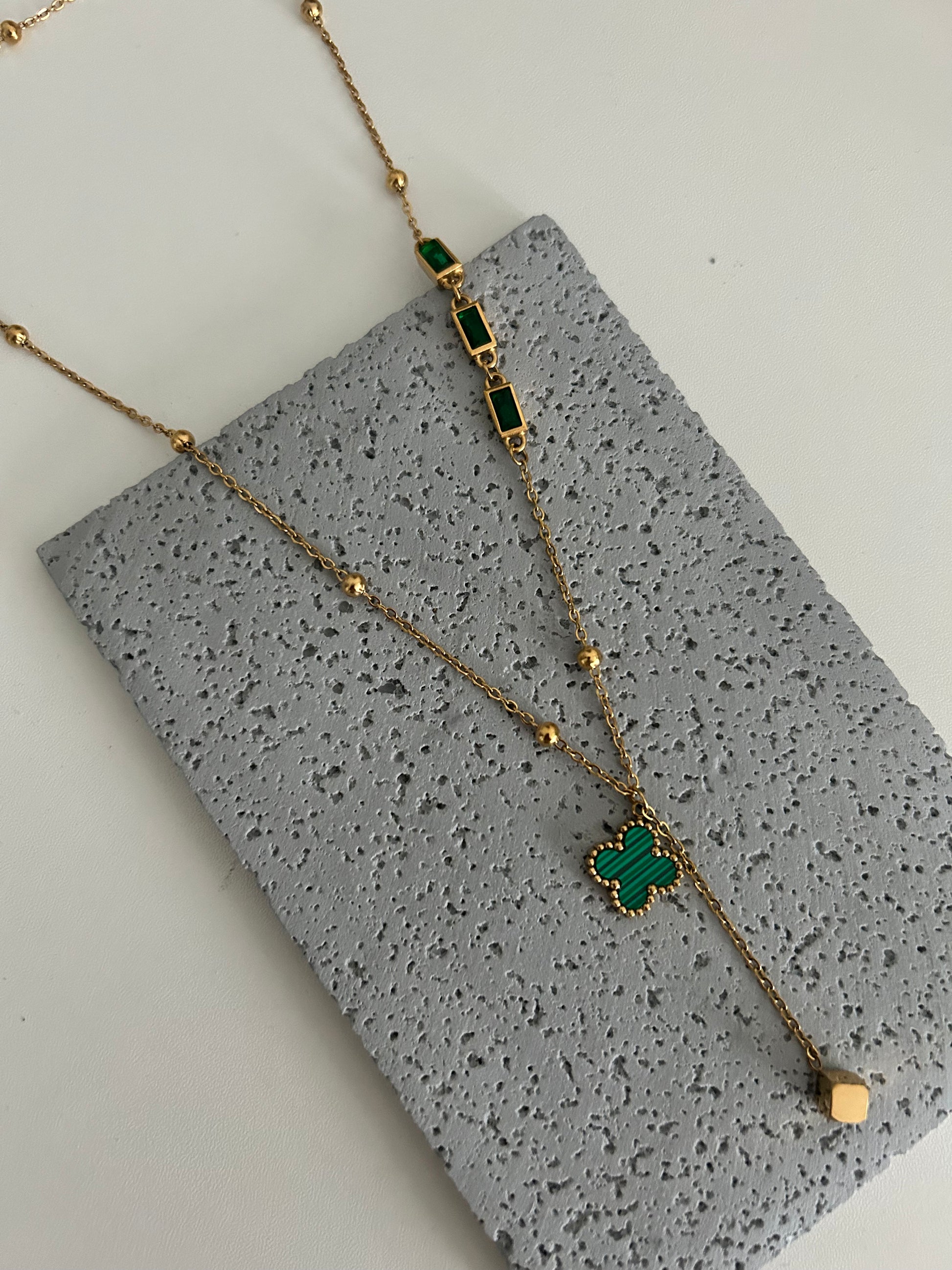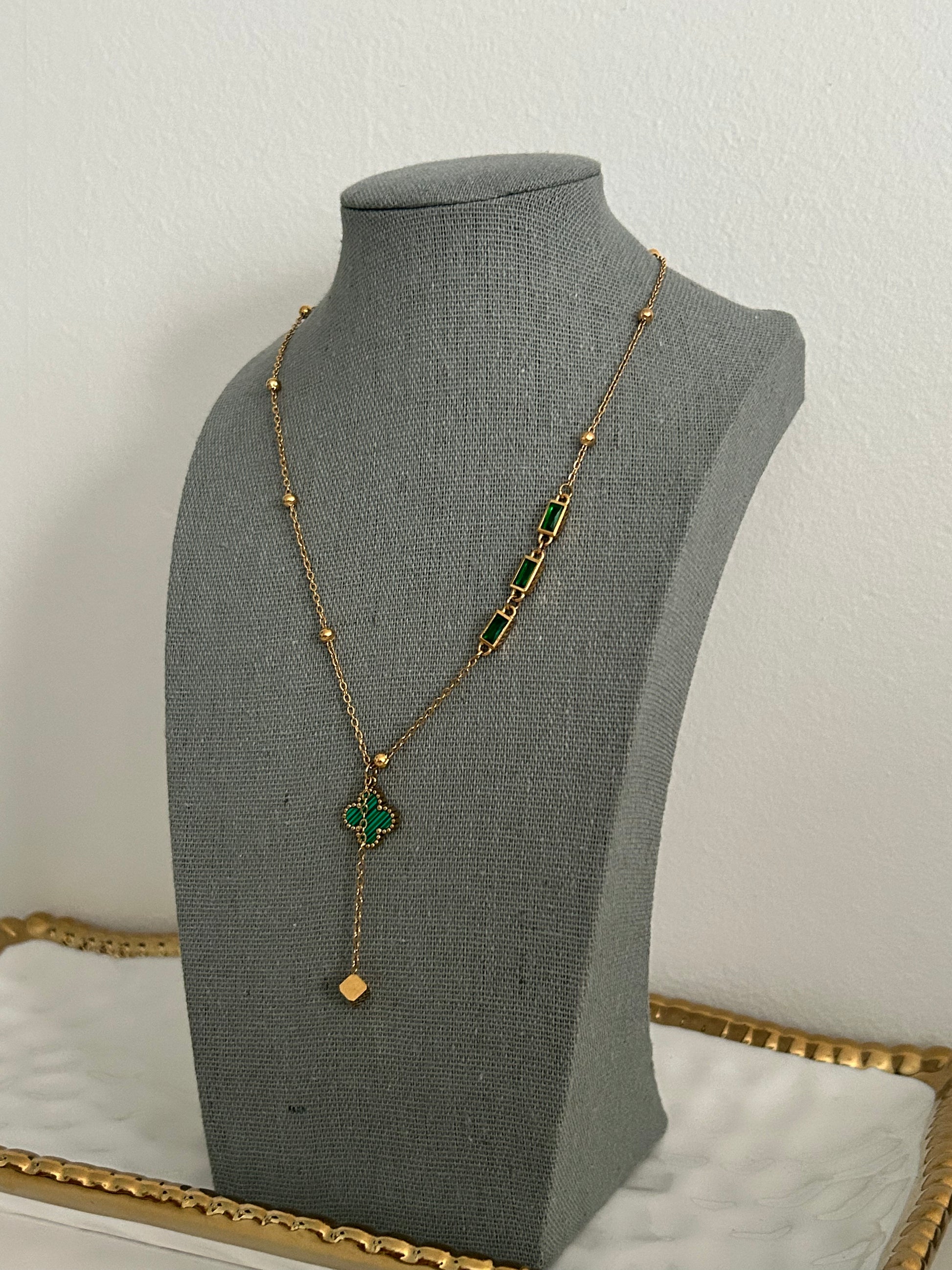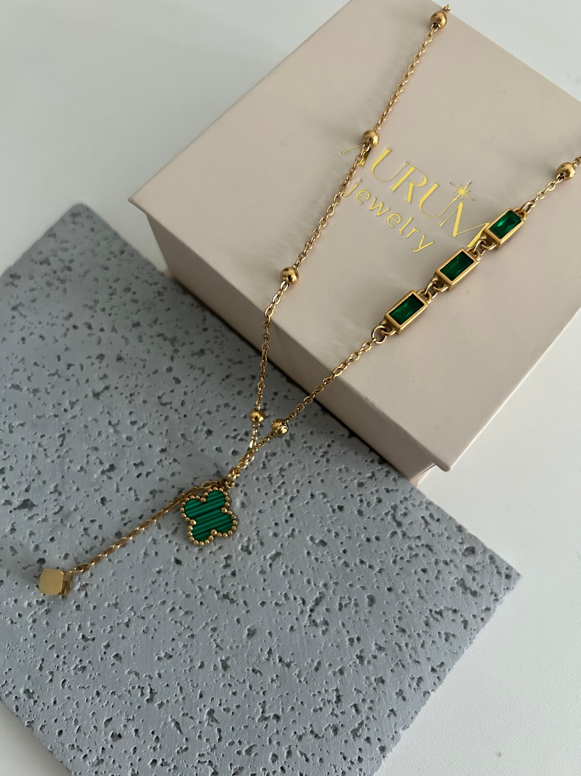 Bayan necklace • Dainty Emerald necklace with a four leaf green clover