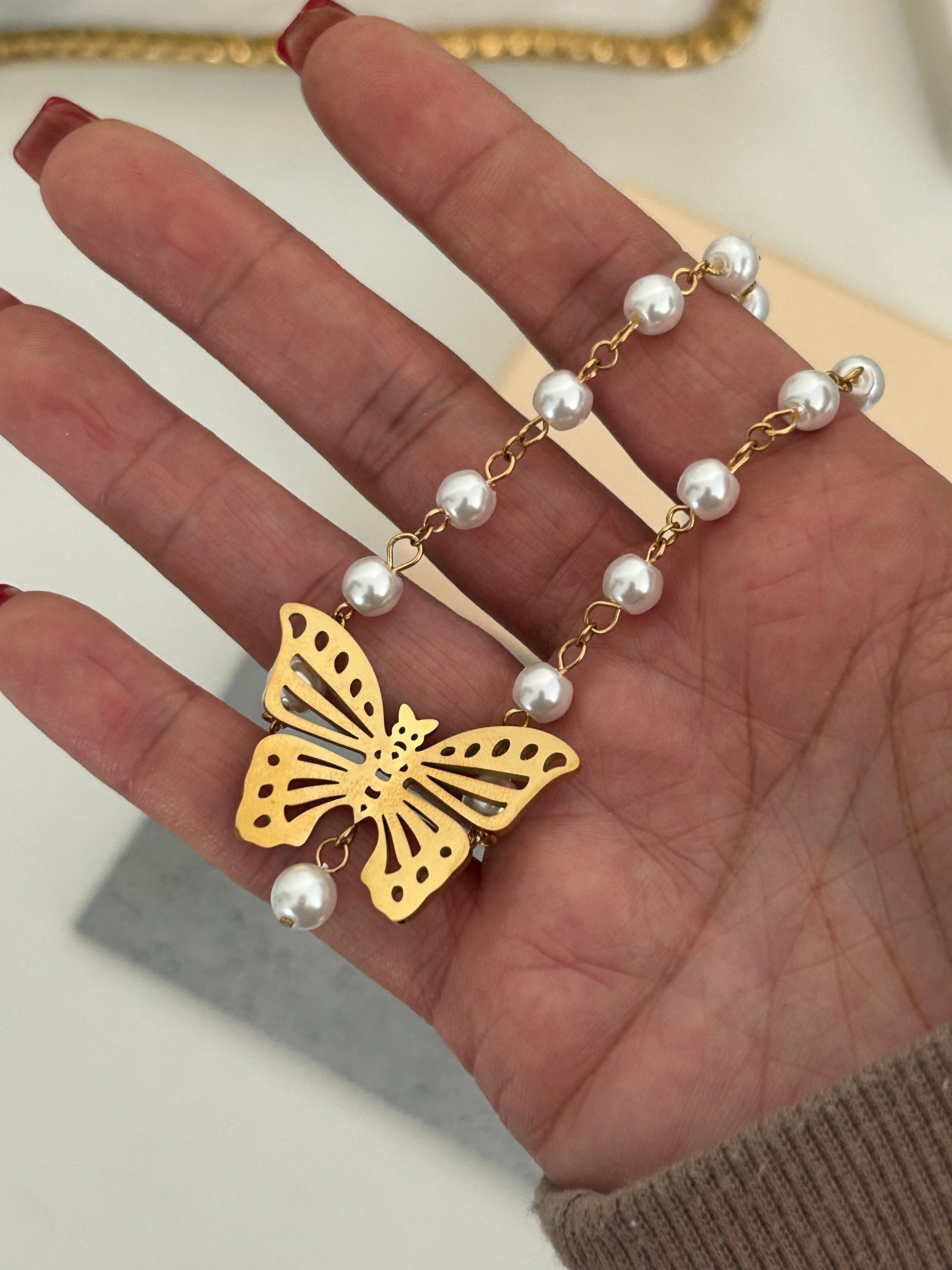 Camille Necklace • Pearly Butterfly choker necklace