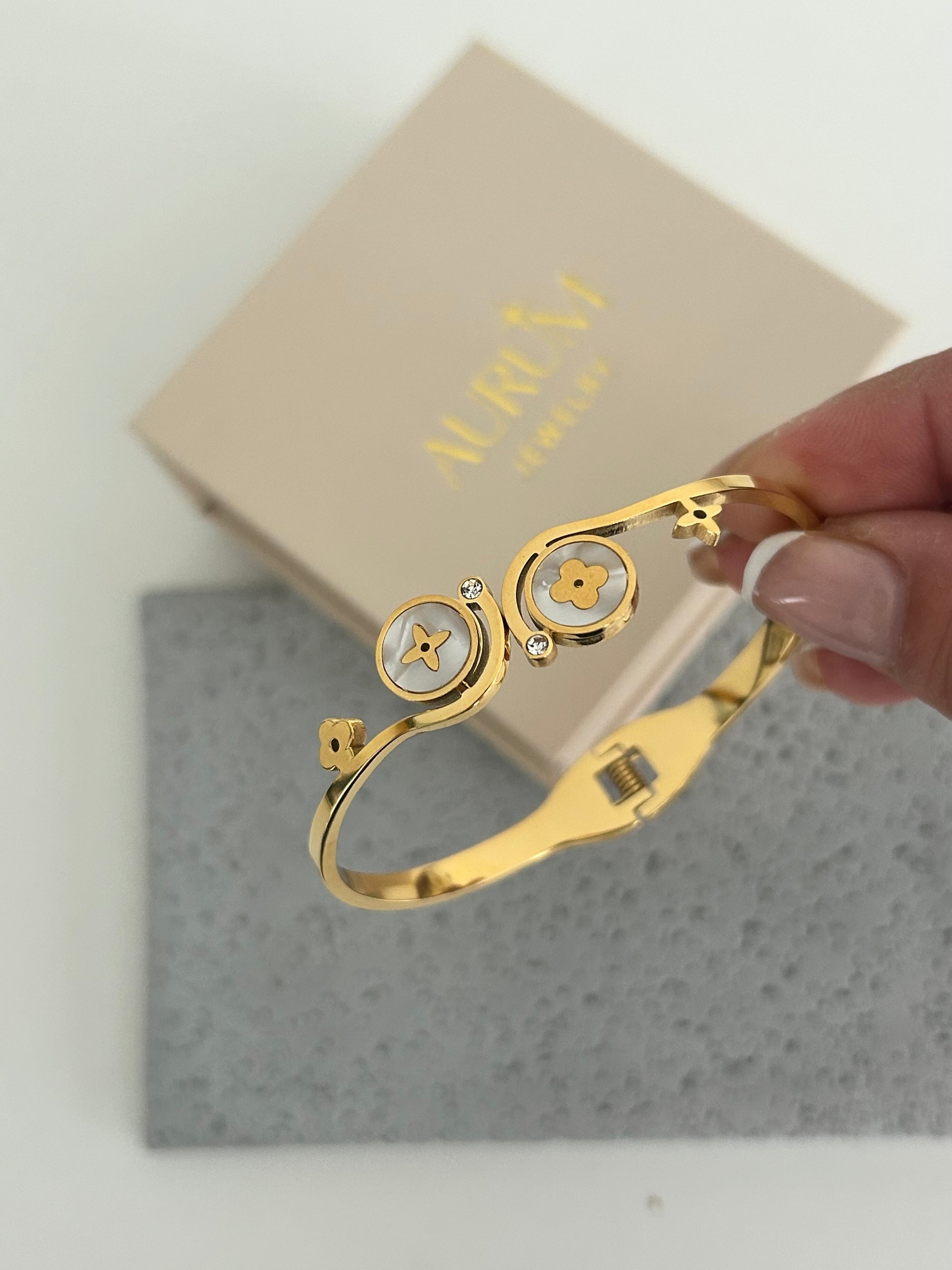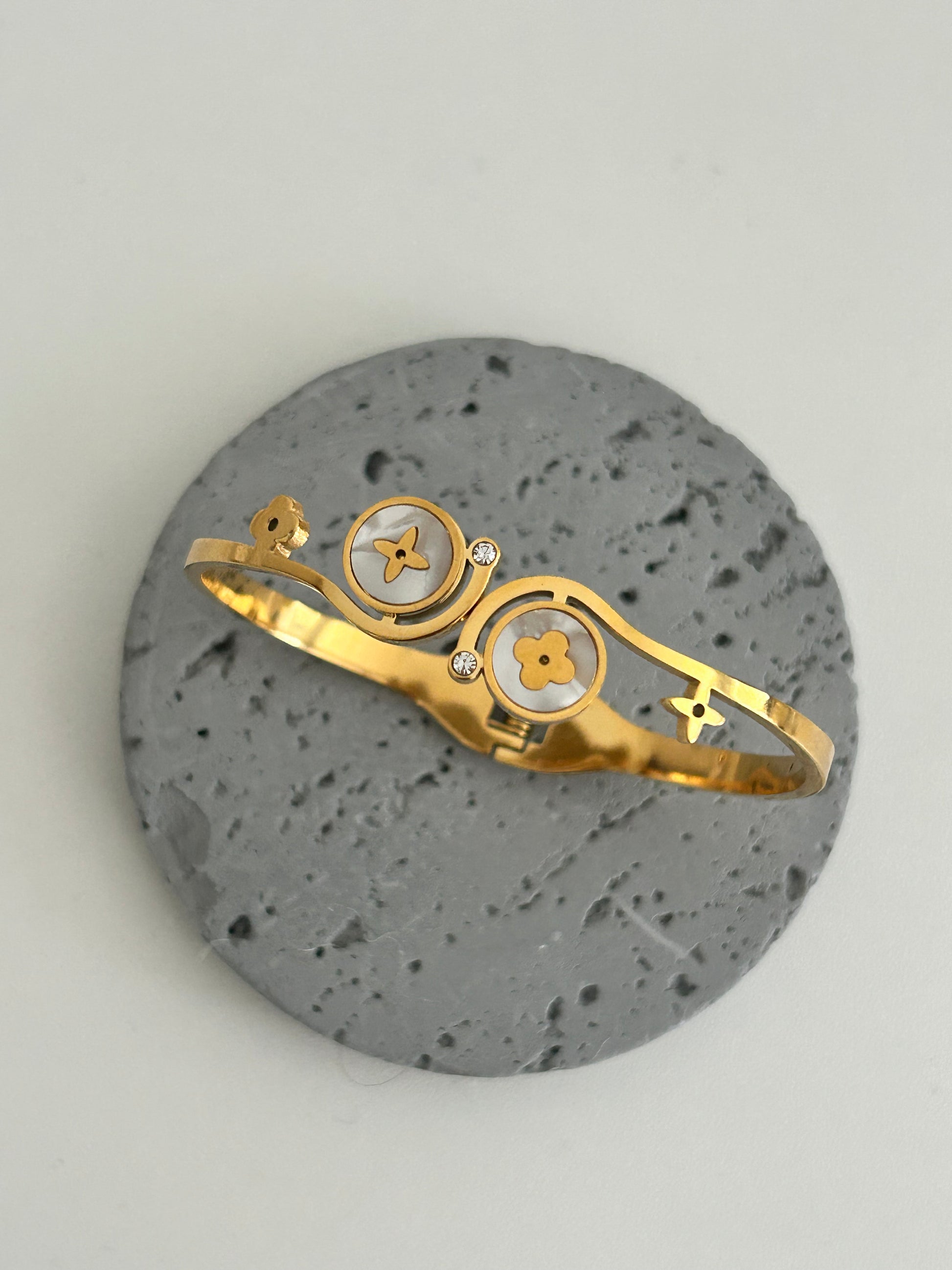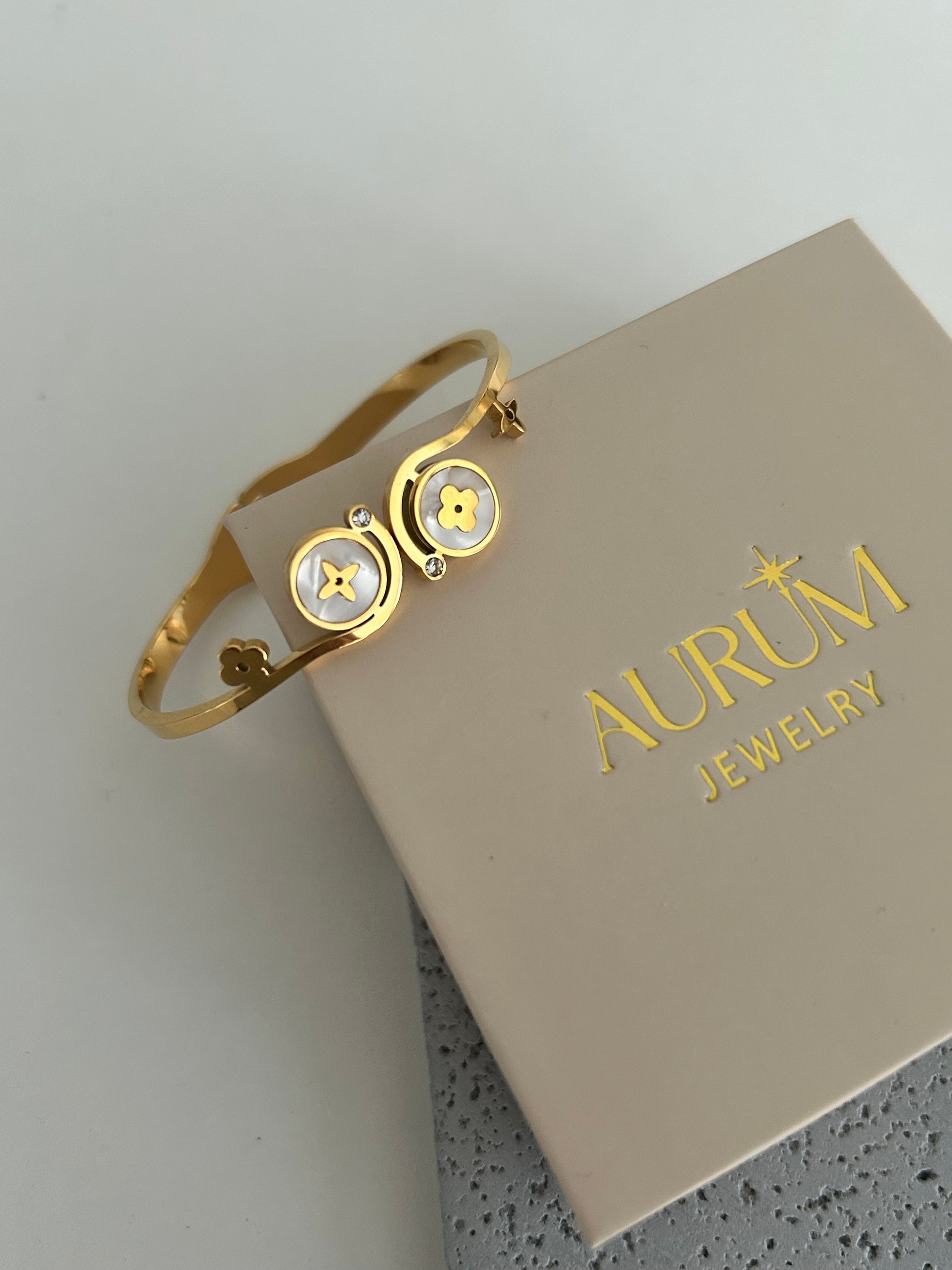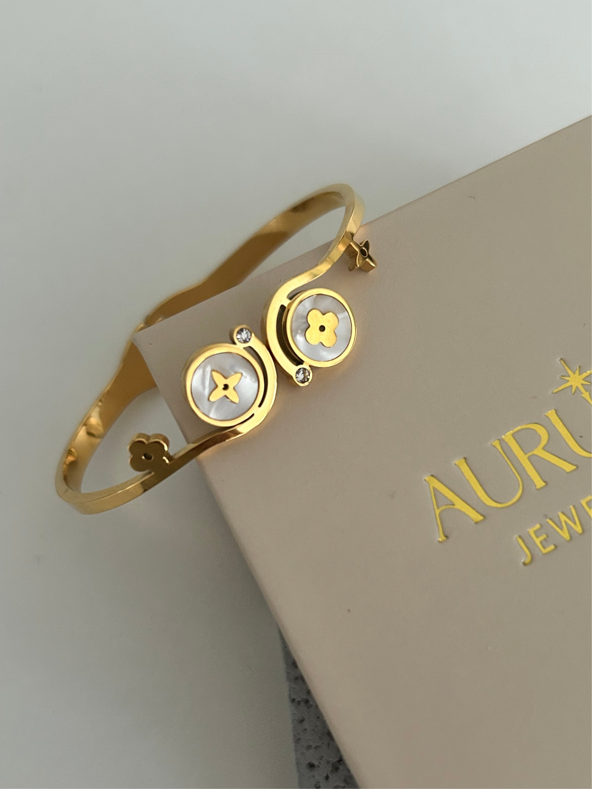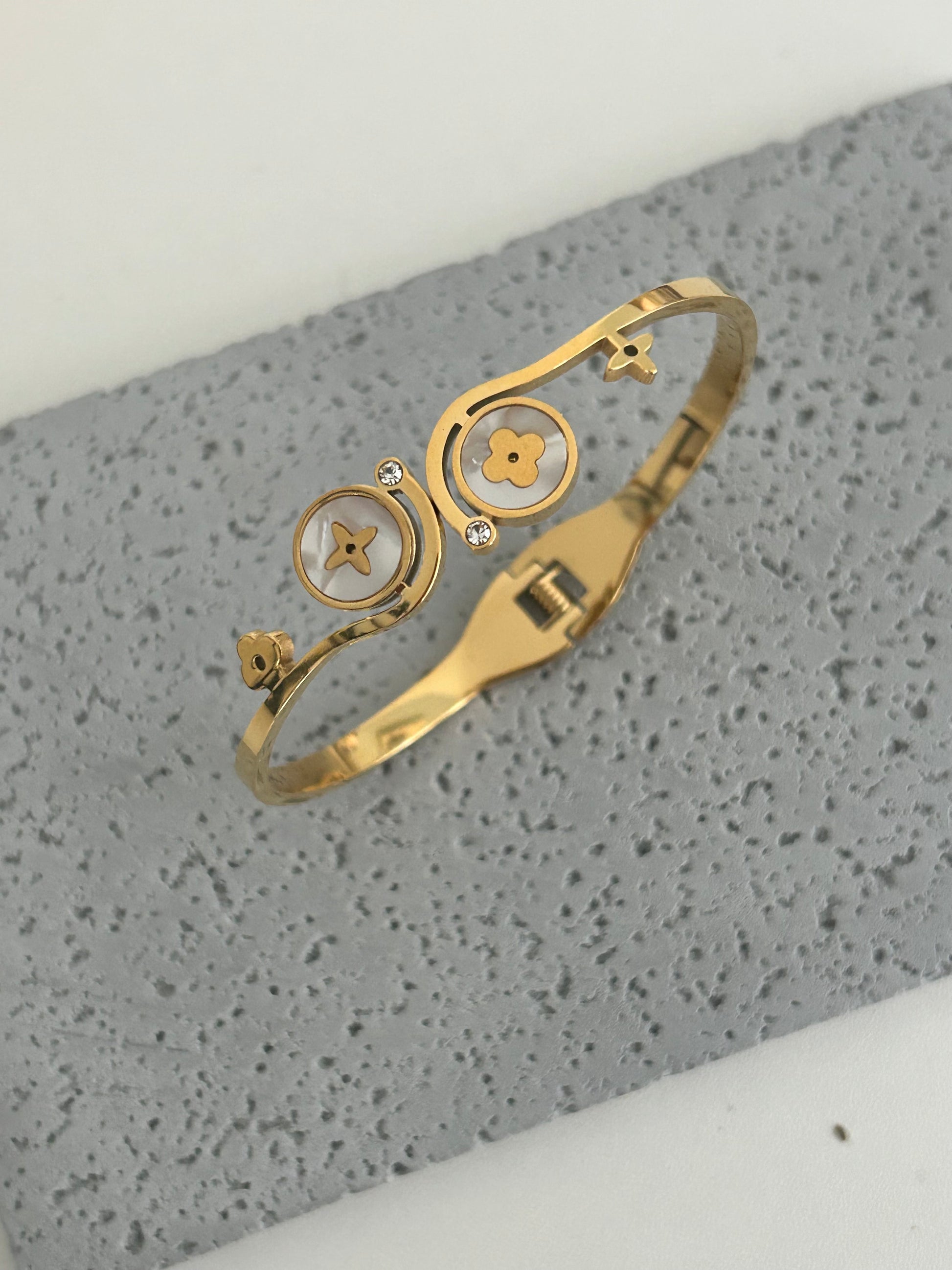This grey mother of pearl four leaf clover bracelet is beautiful, looks lovely with other bracelets or alone. The grey mother of pearl is very pretty it almost takes on whatever colour you are wearing. As well my order arrived in a lovely packaged with great attention to detail, absolutely beautiful!