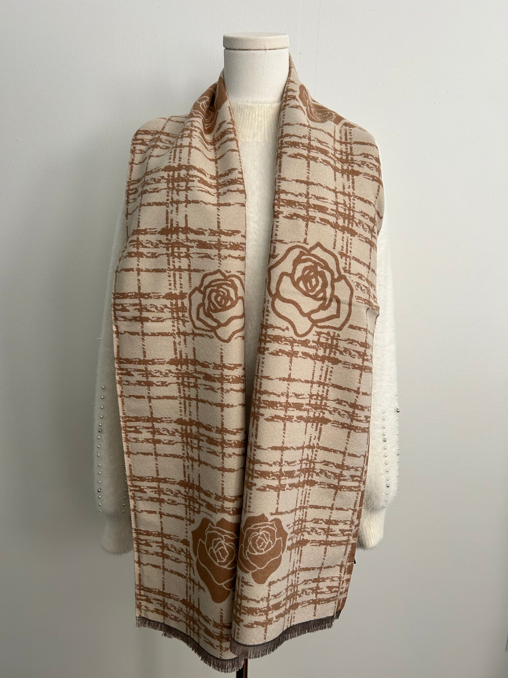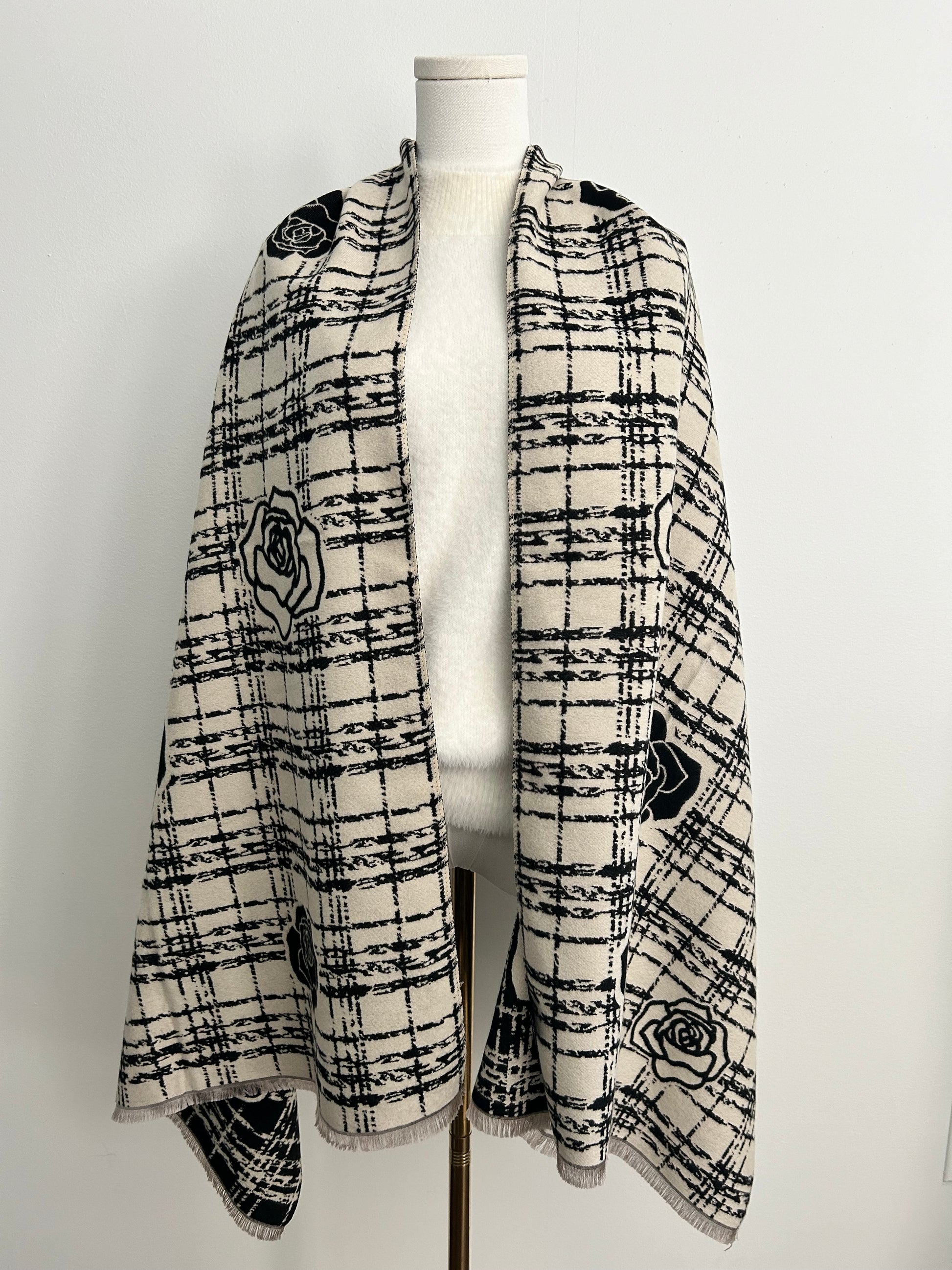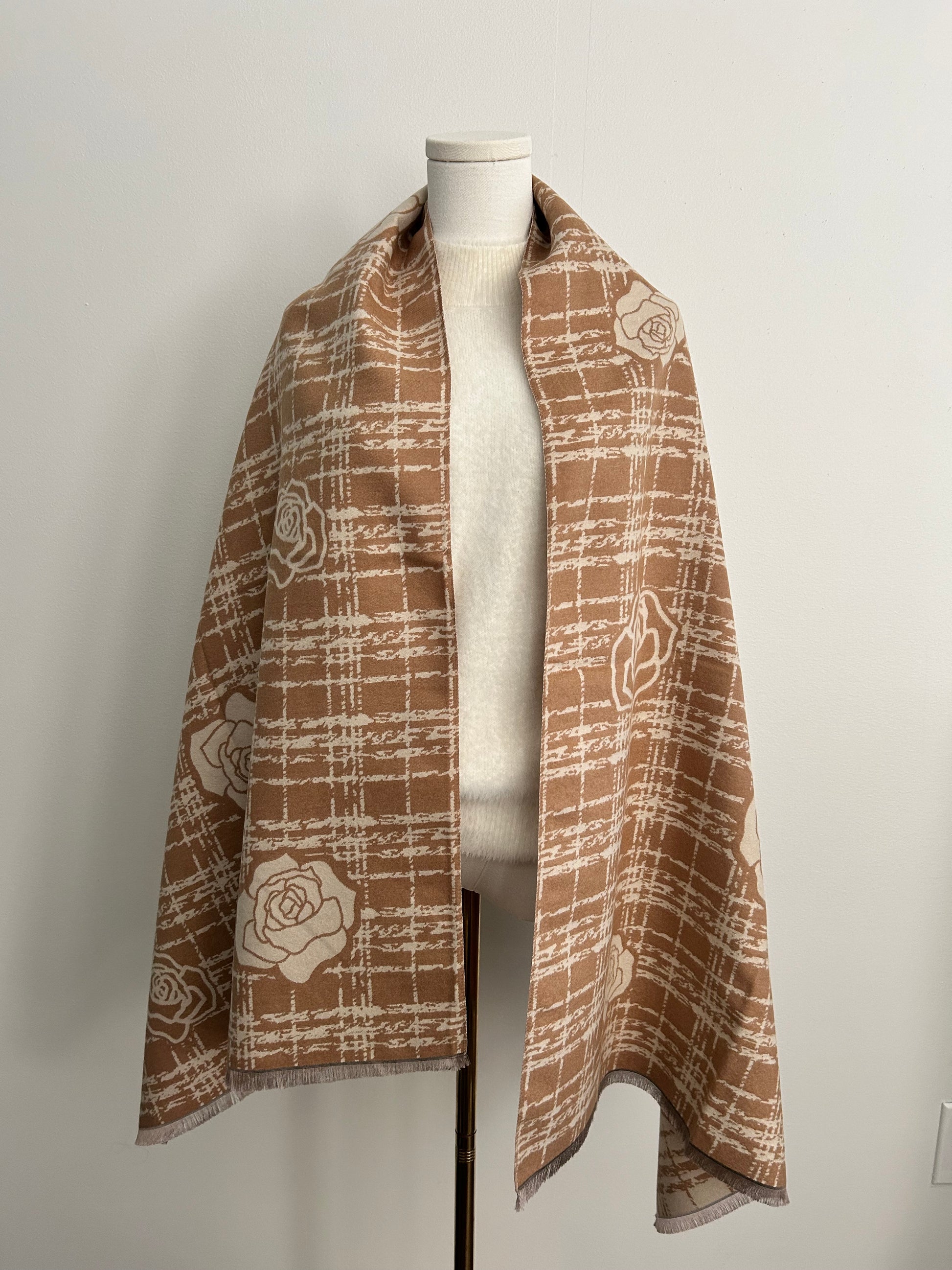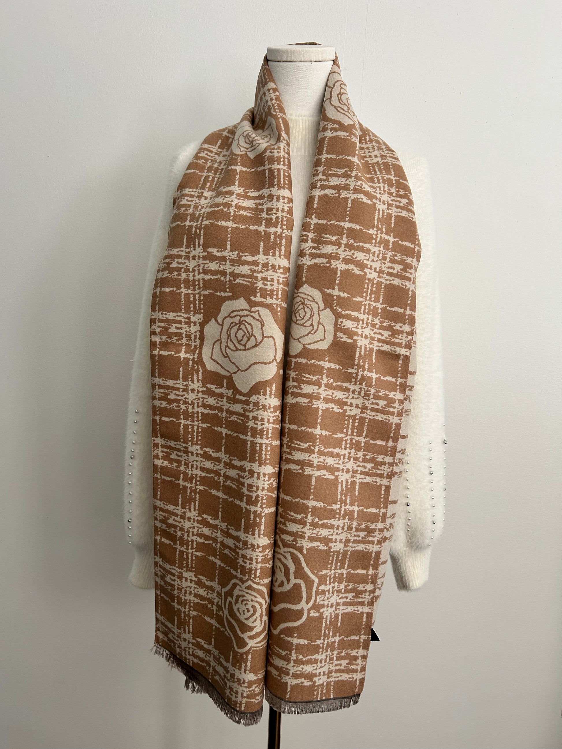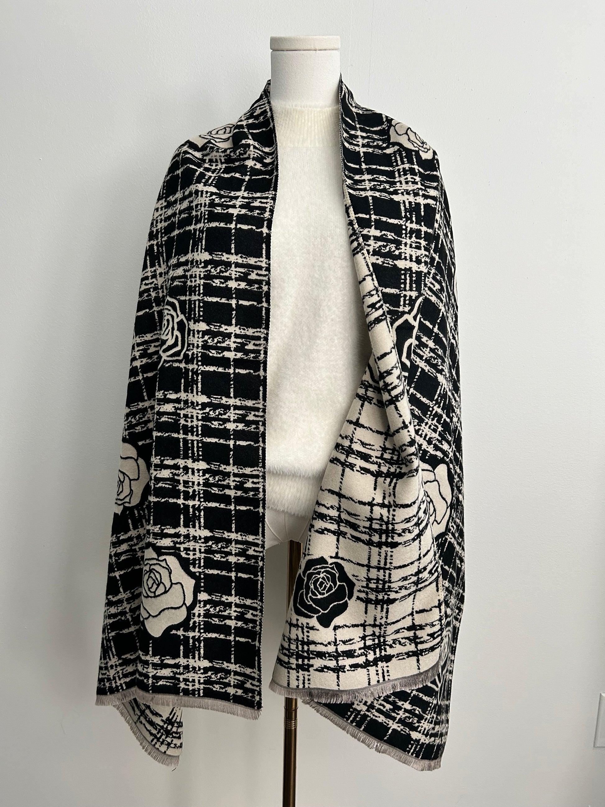 Cashmere feel shawl with camelia flowers prints