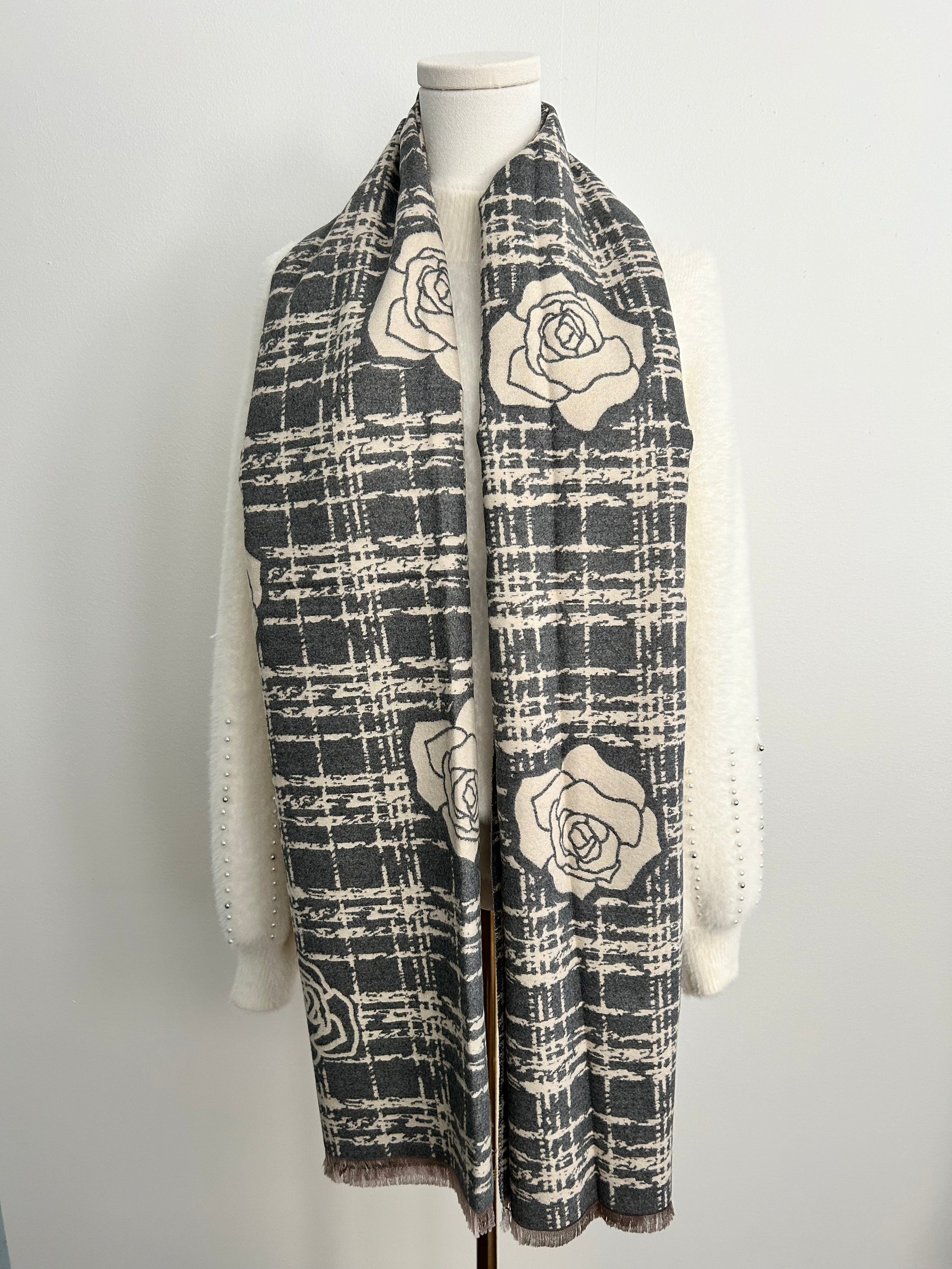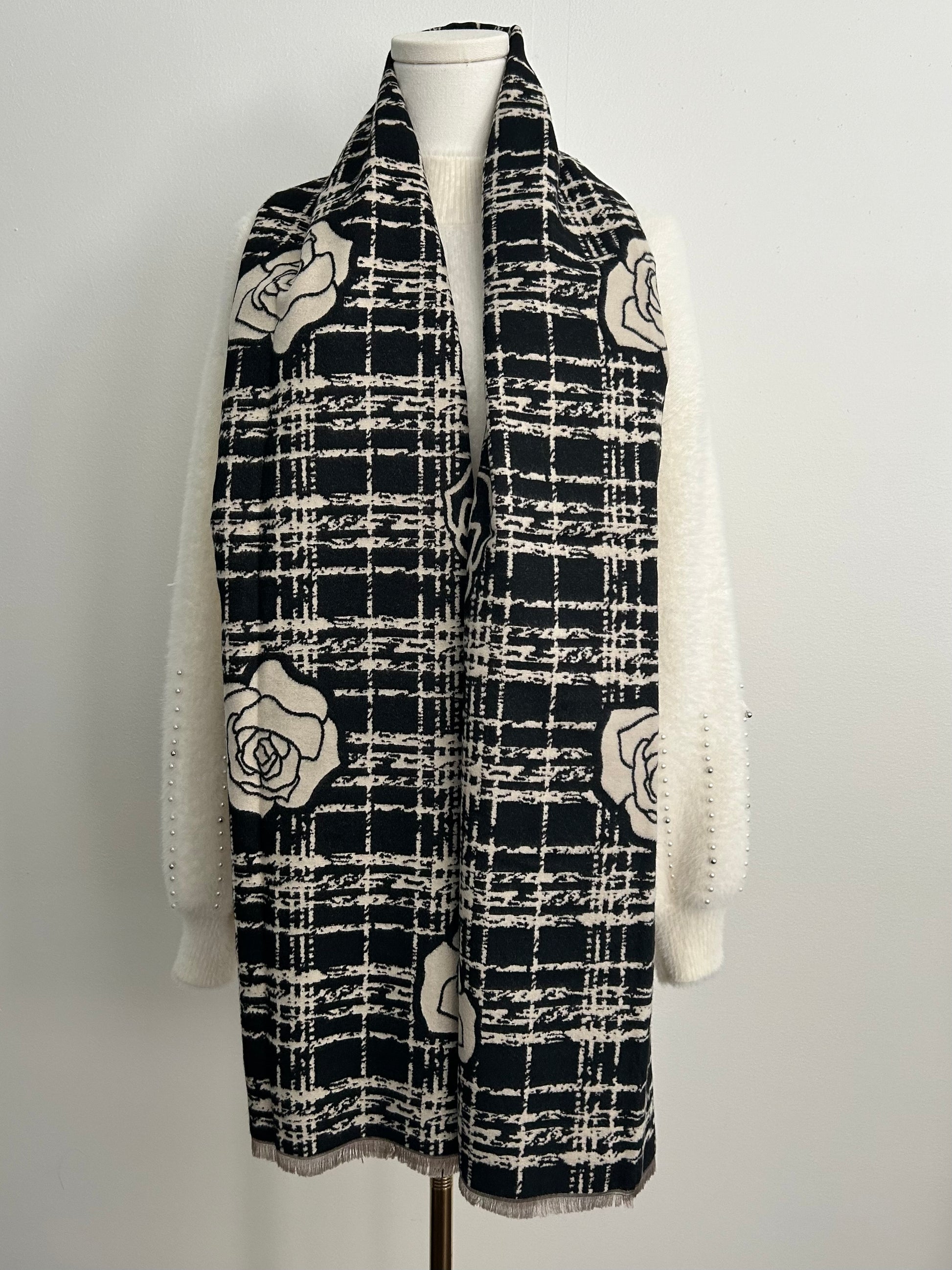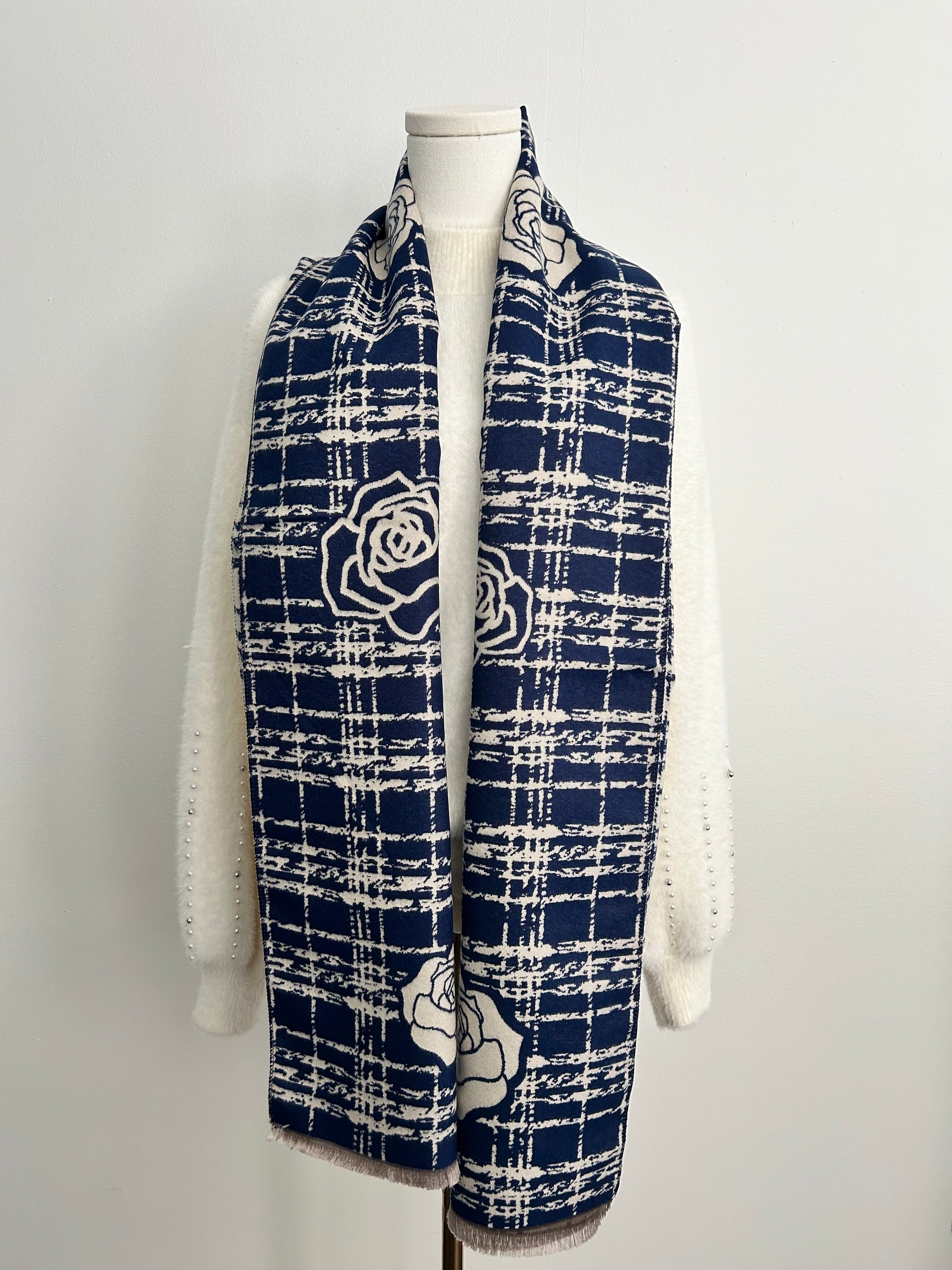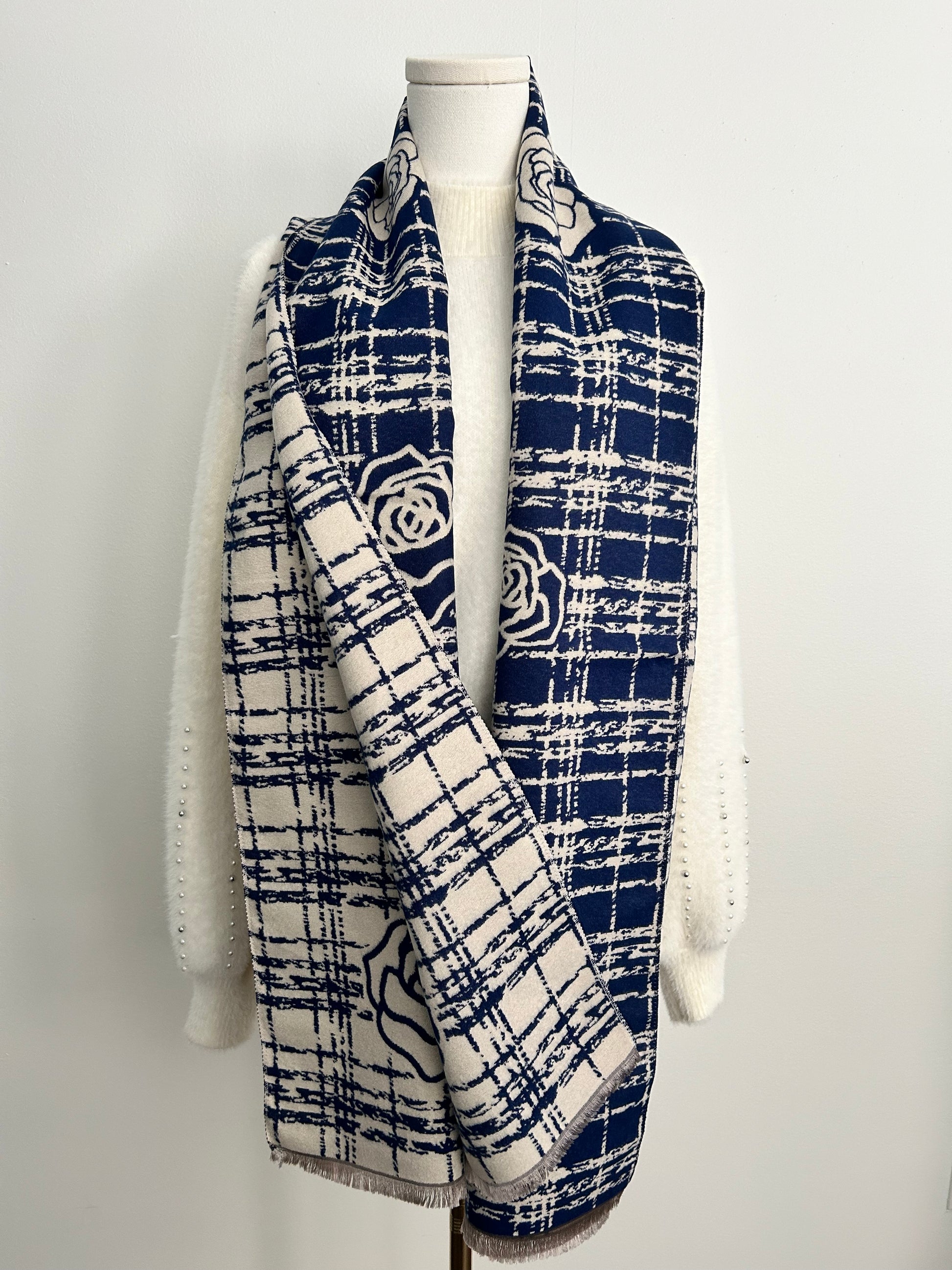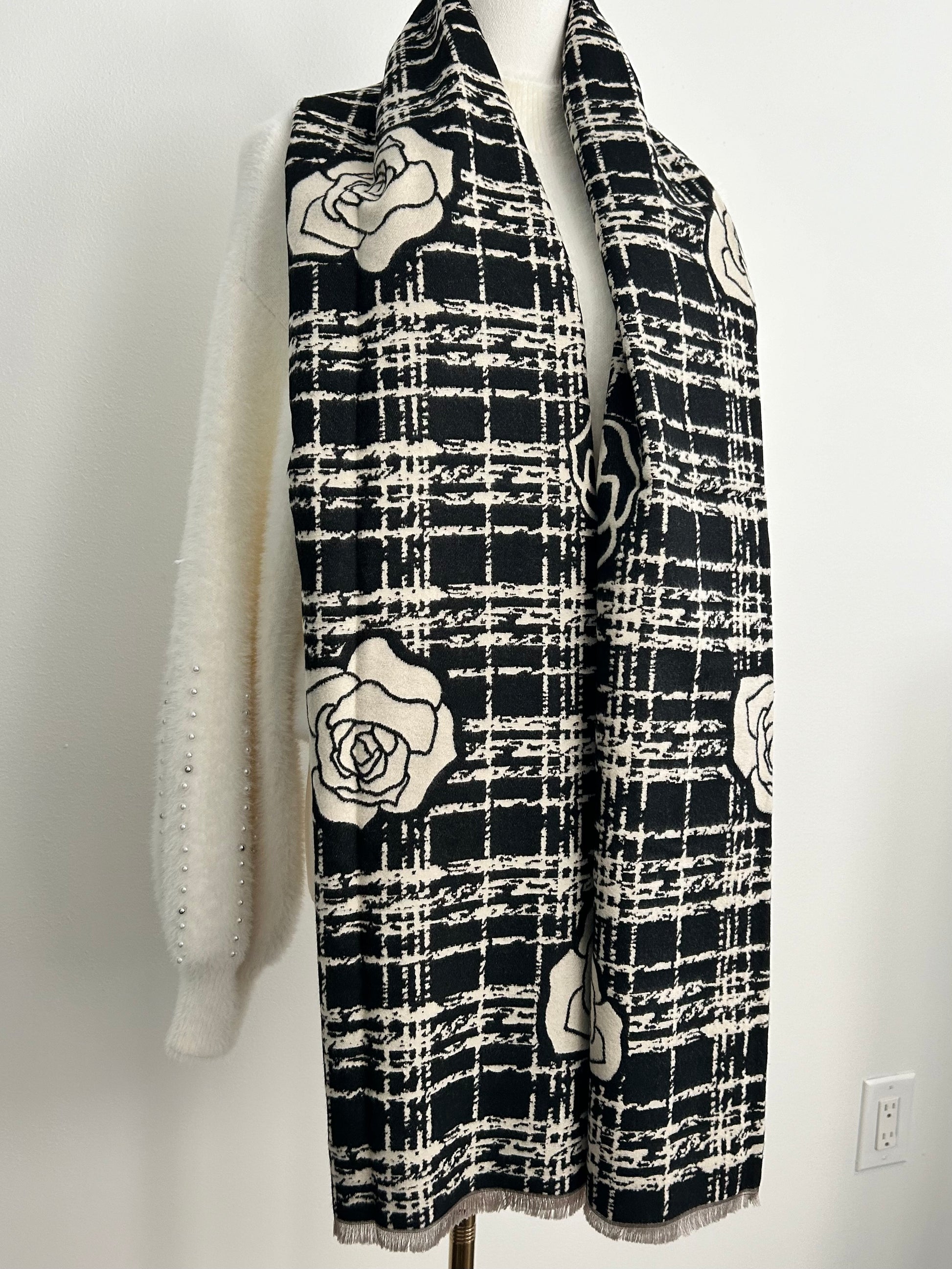 Cashmere feel shawl with camelia flowers prints