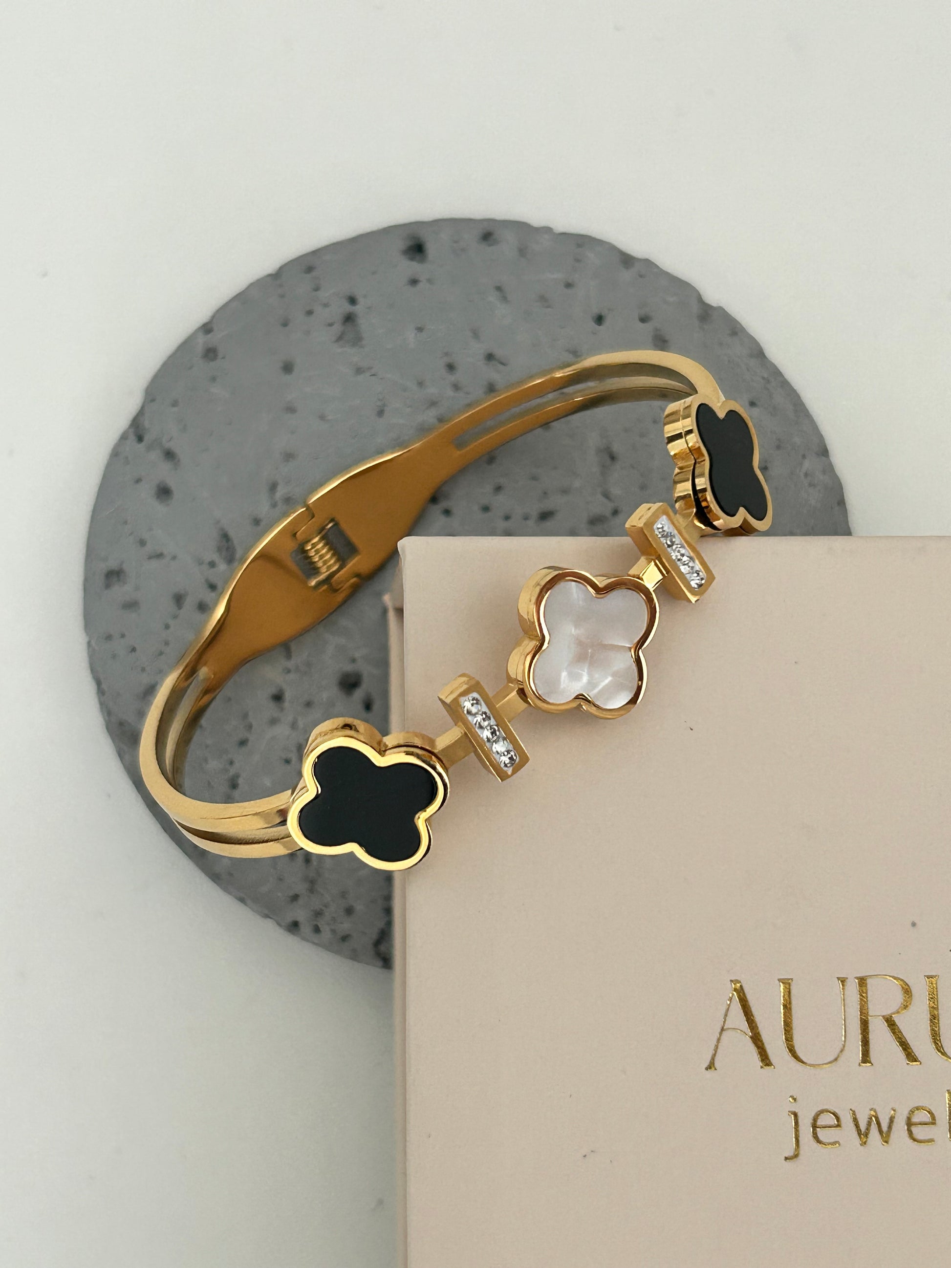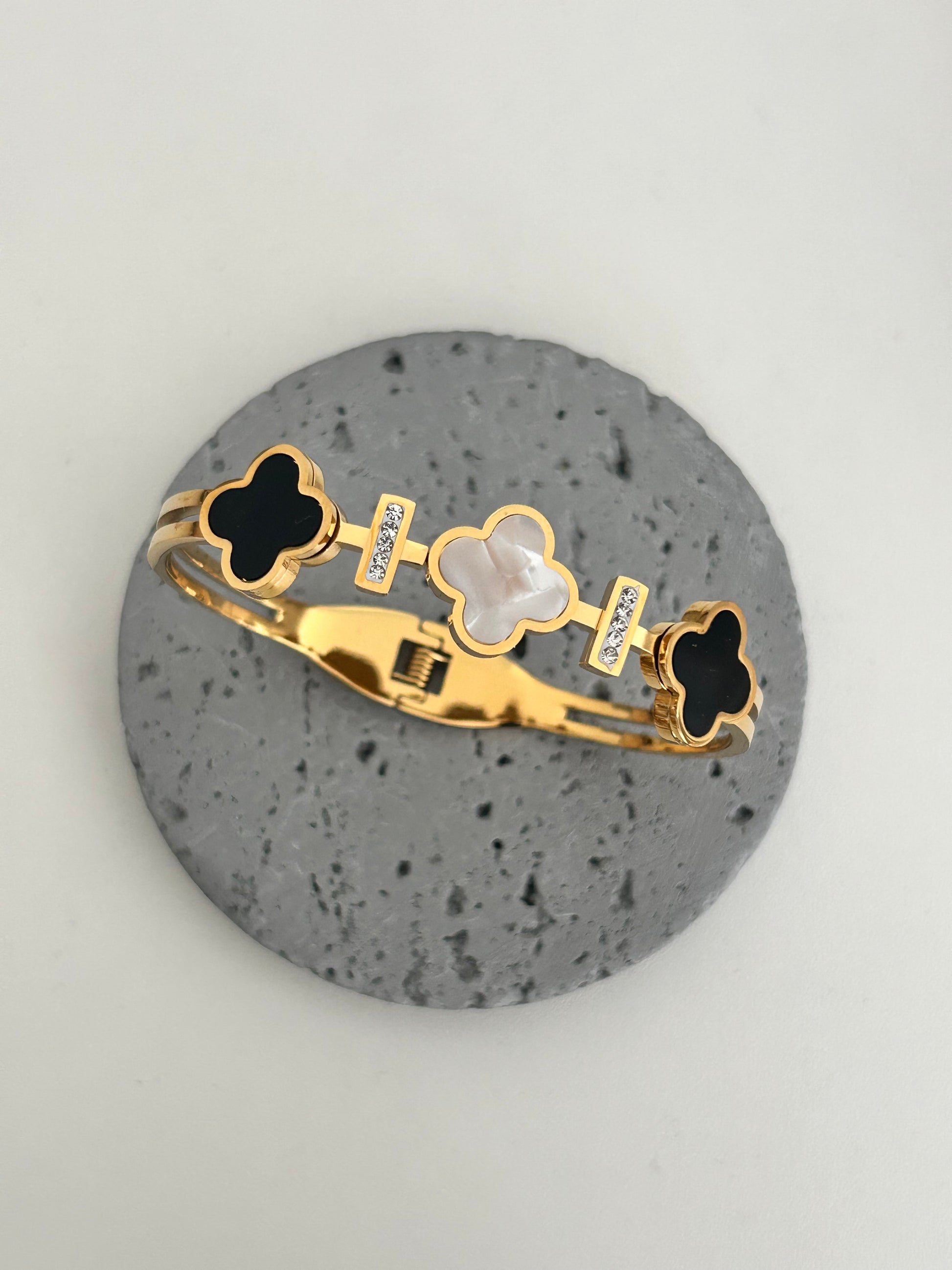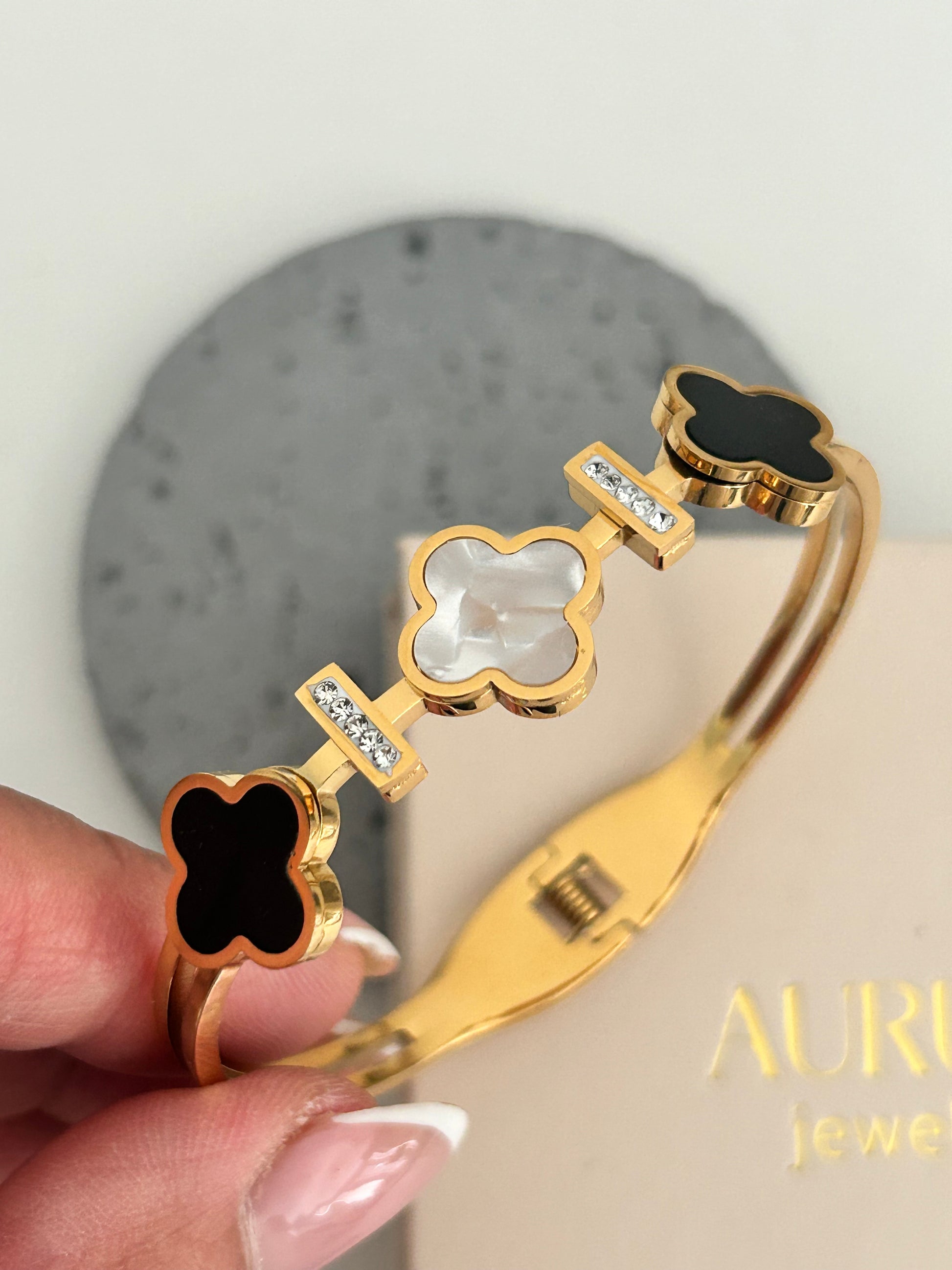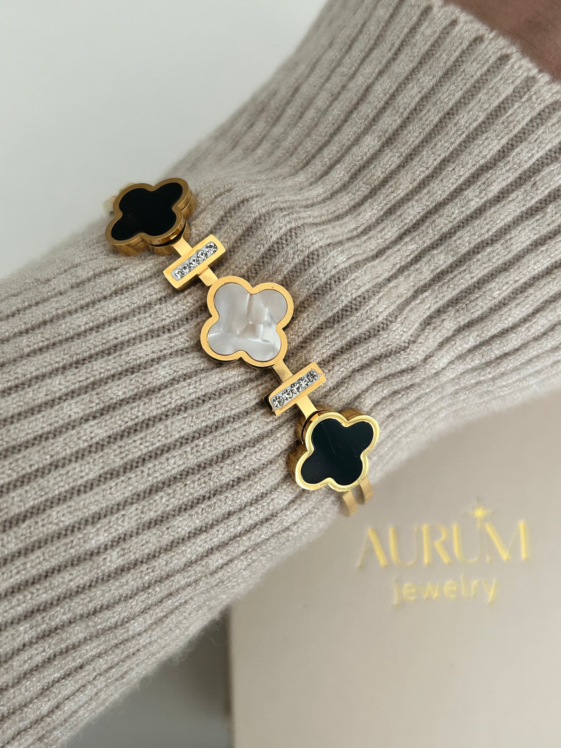 This grey mother of pearl four leaf clover bracelet is beautiful, looks lovely with other bracelets or alone. The grey mother of pearl is very pretty it almost takes on whatever colour you are wearing. As well my order arrived in a lovely packaged with great attention to detail, absolutely beautiful!
