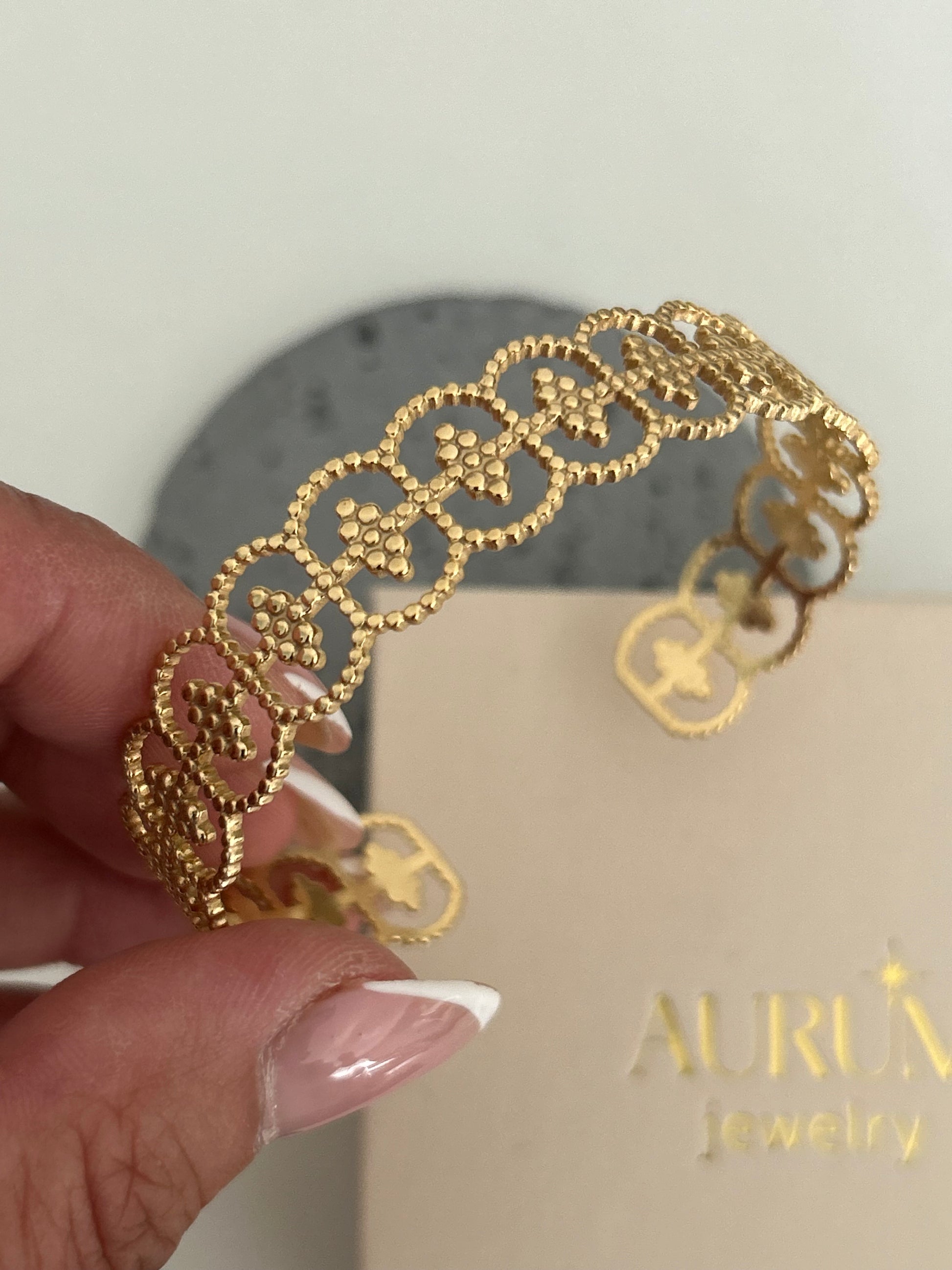 Me encantan los brazaletes que adquirí con este proveedor, se ven de buena calidad y su presentación es excelente, excedió mis expectativas. Me gustó también que me enviaron un regalo, un broche para el cabello. ¡Muchas gracias AURUM!