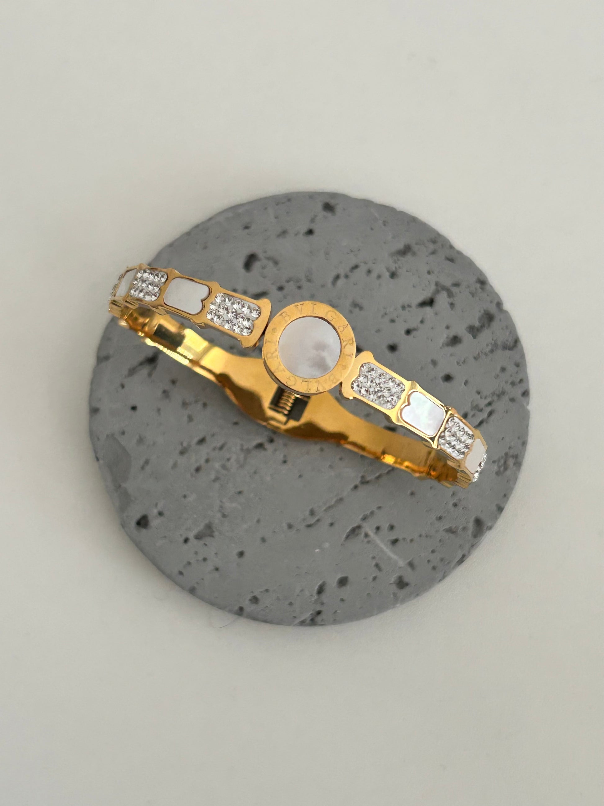 This grey mother of pearl four leaf clover bracelet is beautiful, looks lovely with other bracelets or alone. The grey mother of pearl is very pretty it almost takes on whatever colour you are wearing. As well my order arrived in a lovely packaged with great attention to detail, absolutely beautiful!