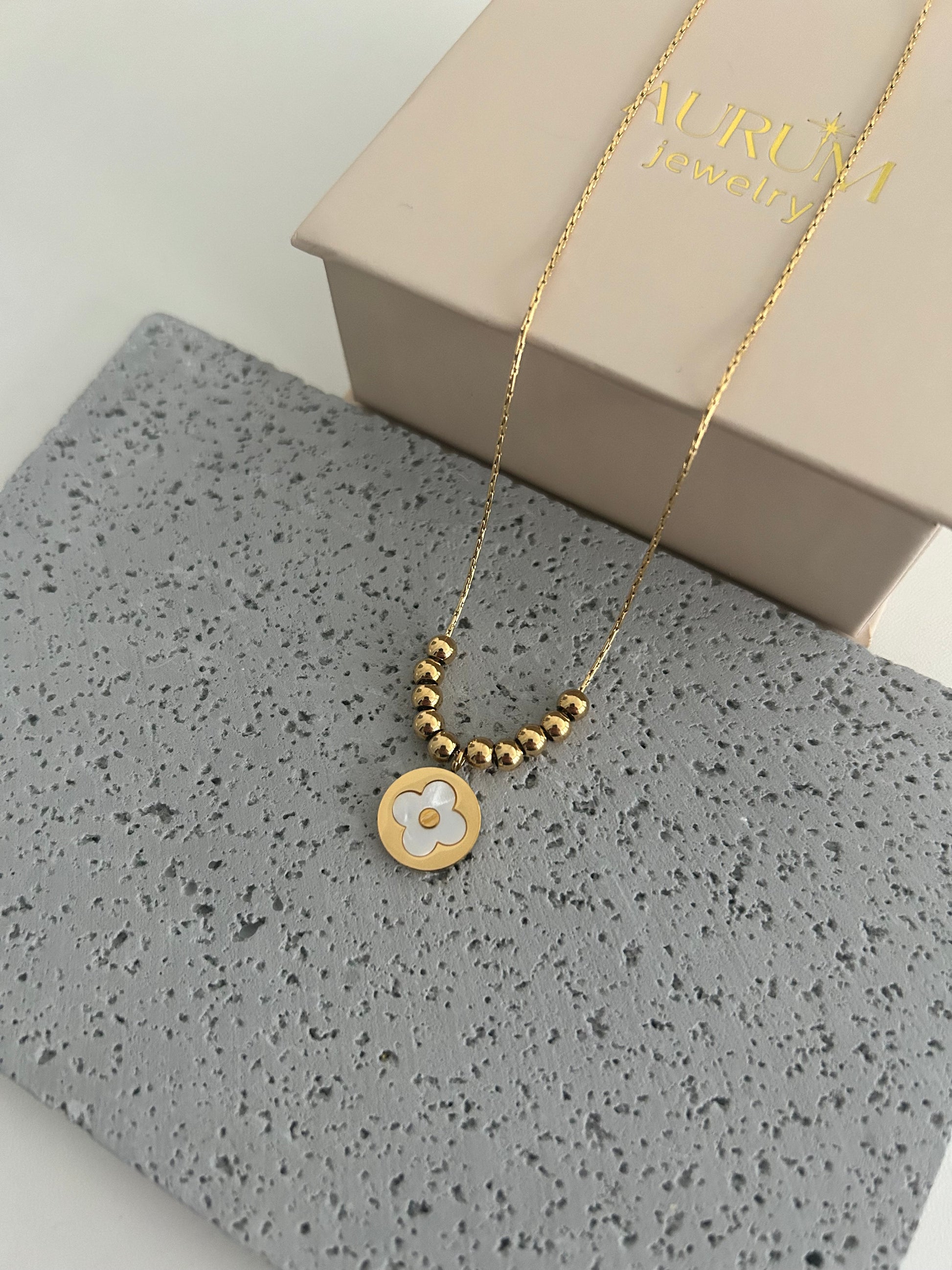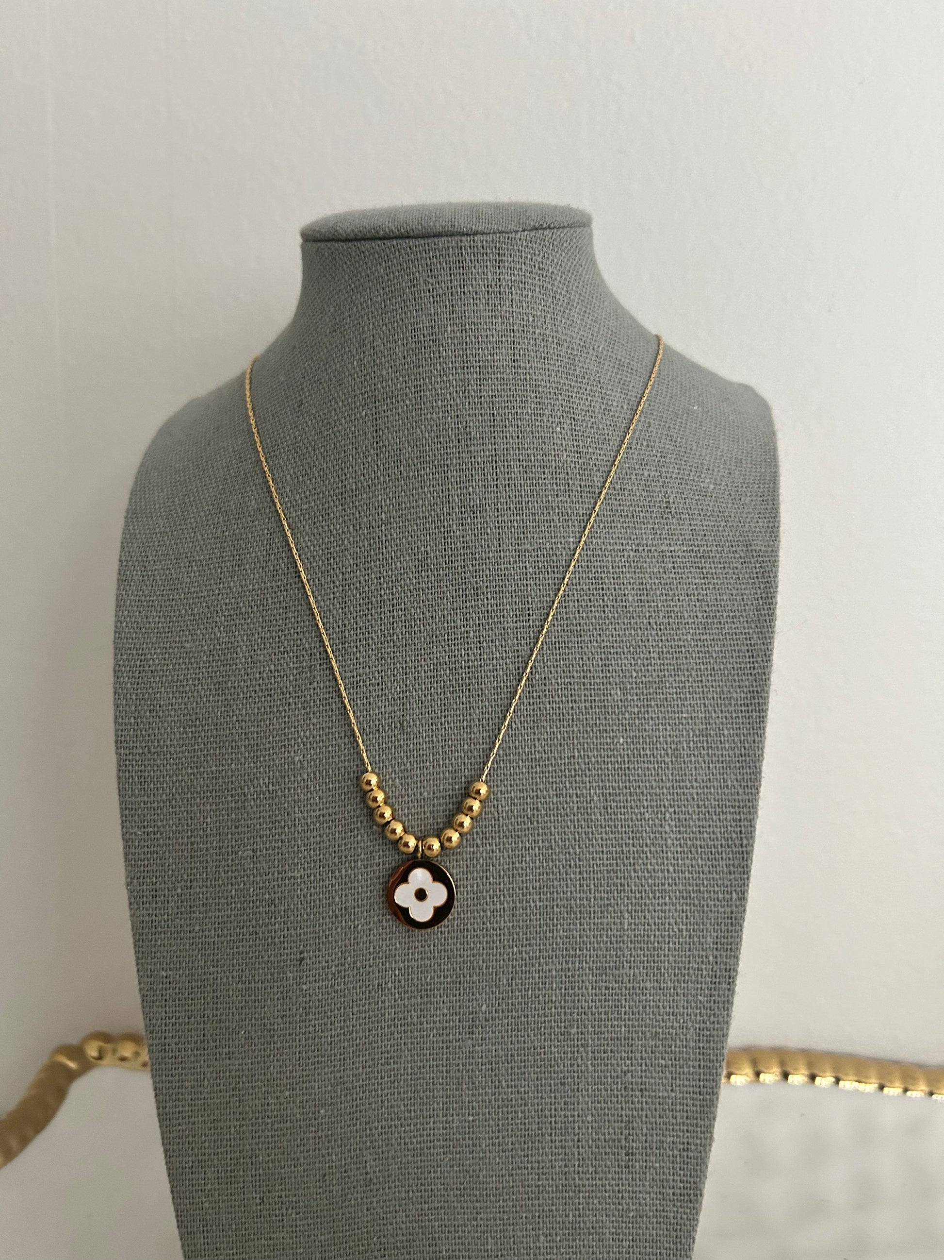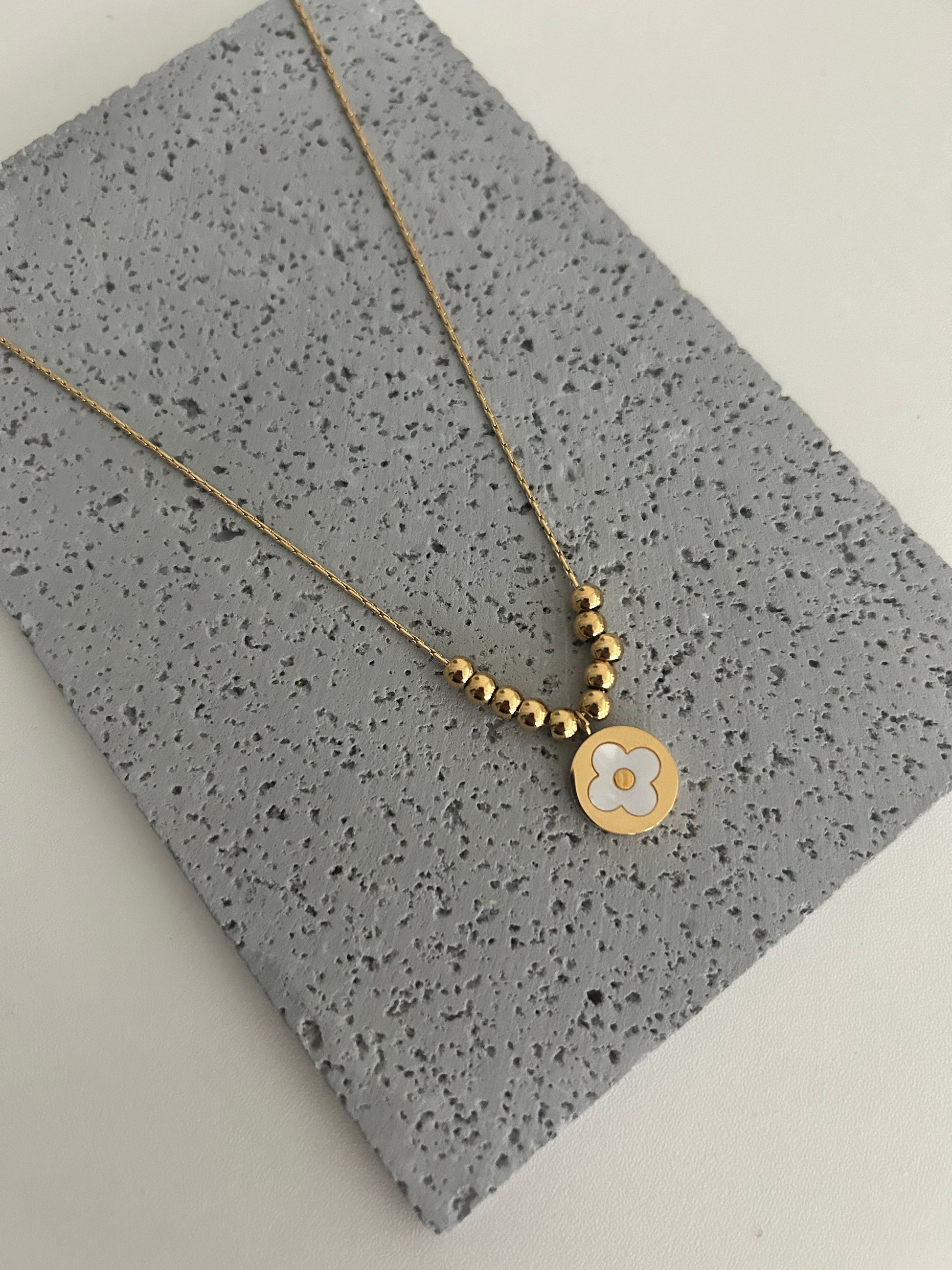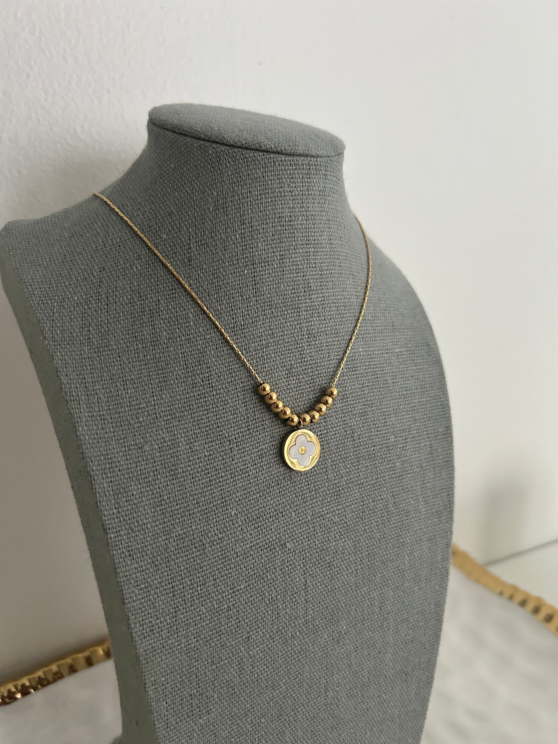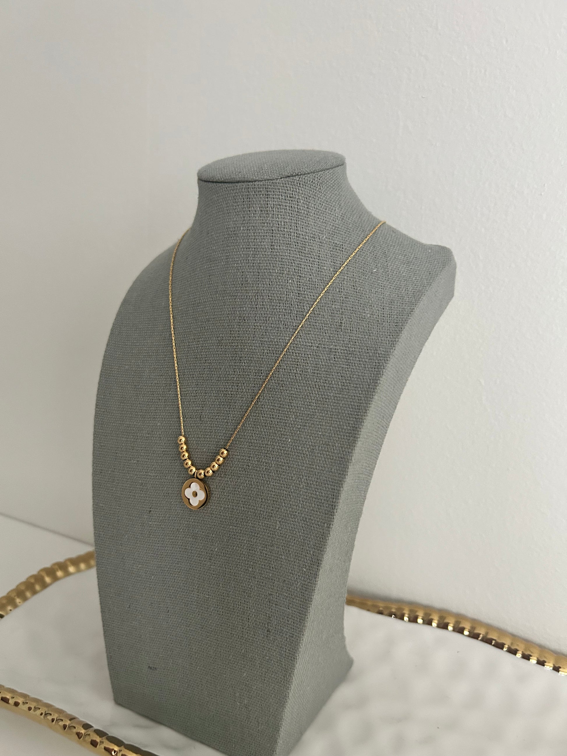 Farida necklace • Dainty beaded necklace with a white clover pendant