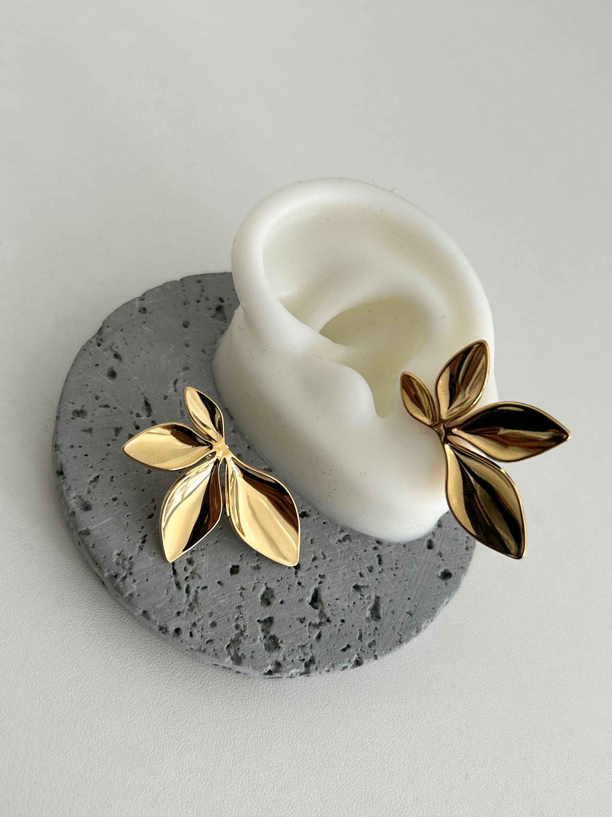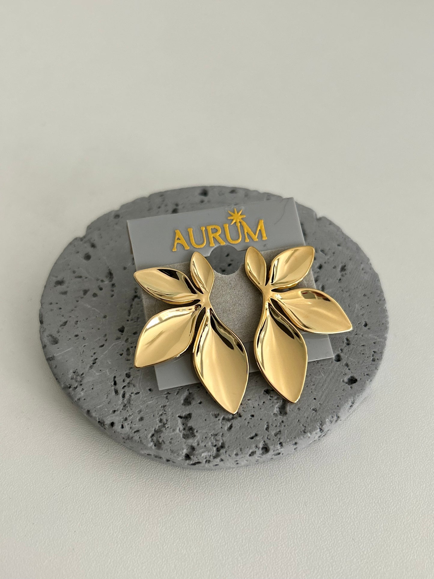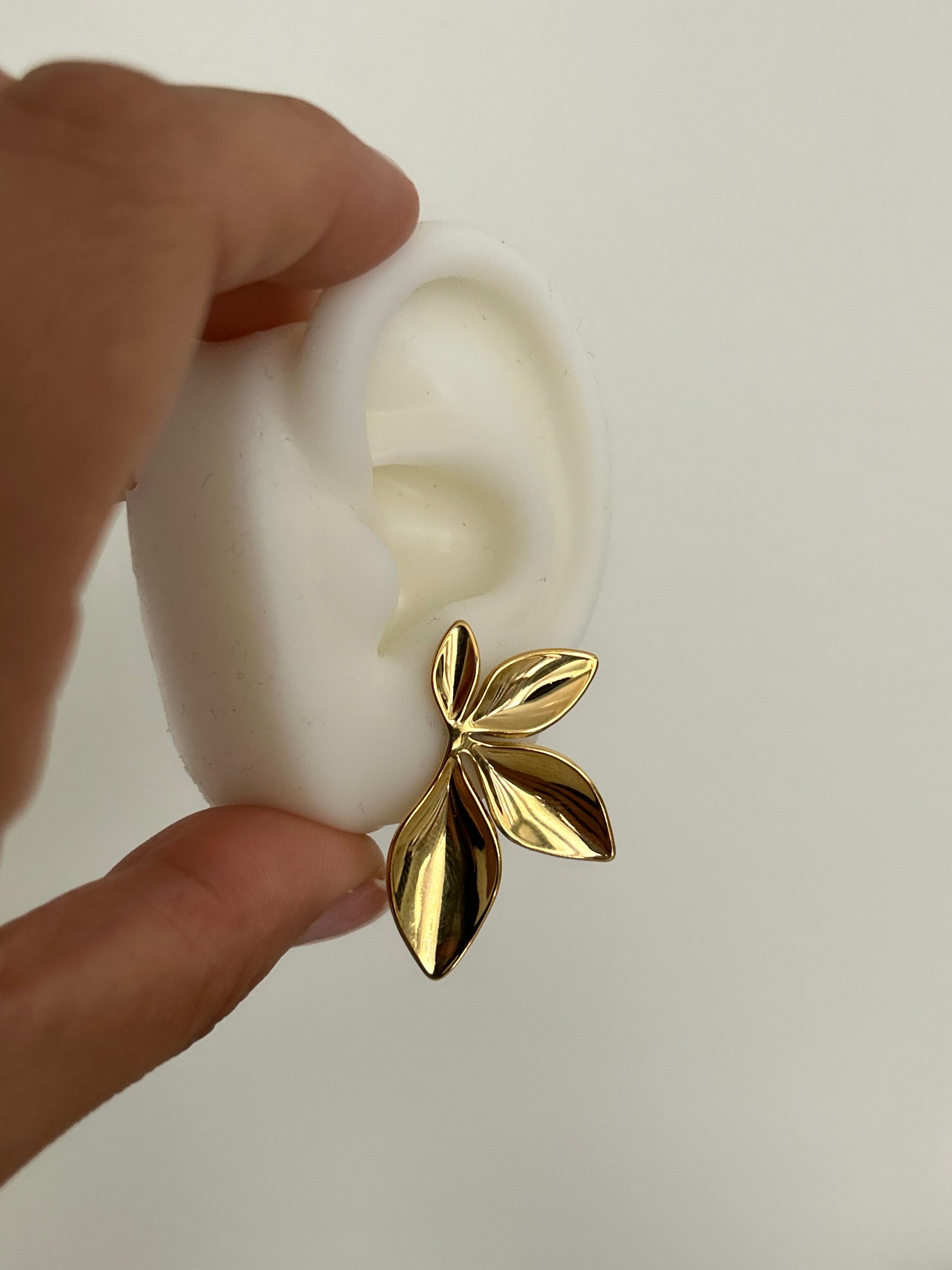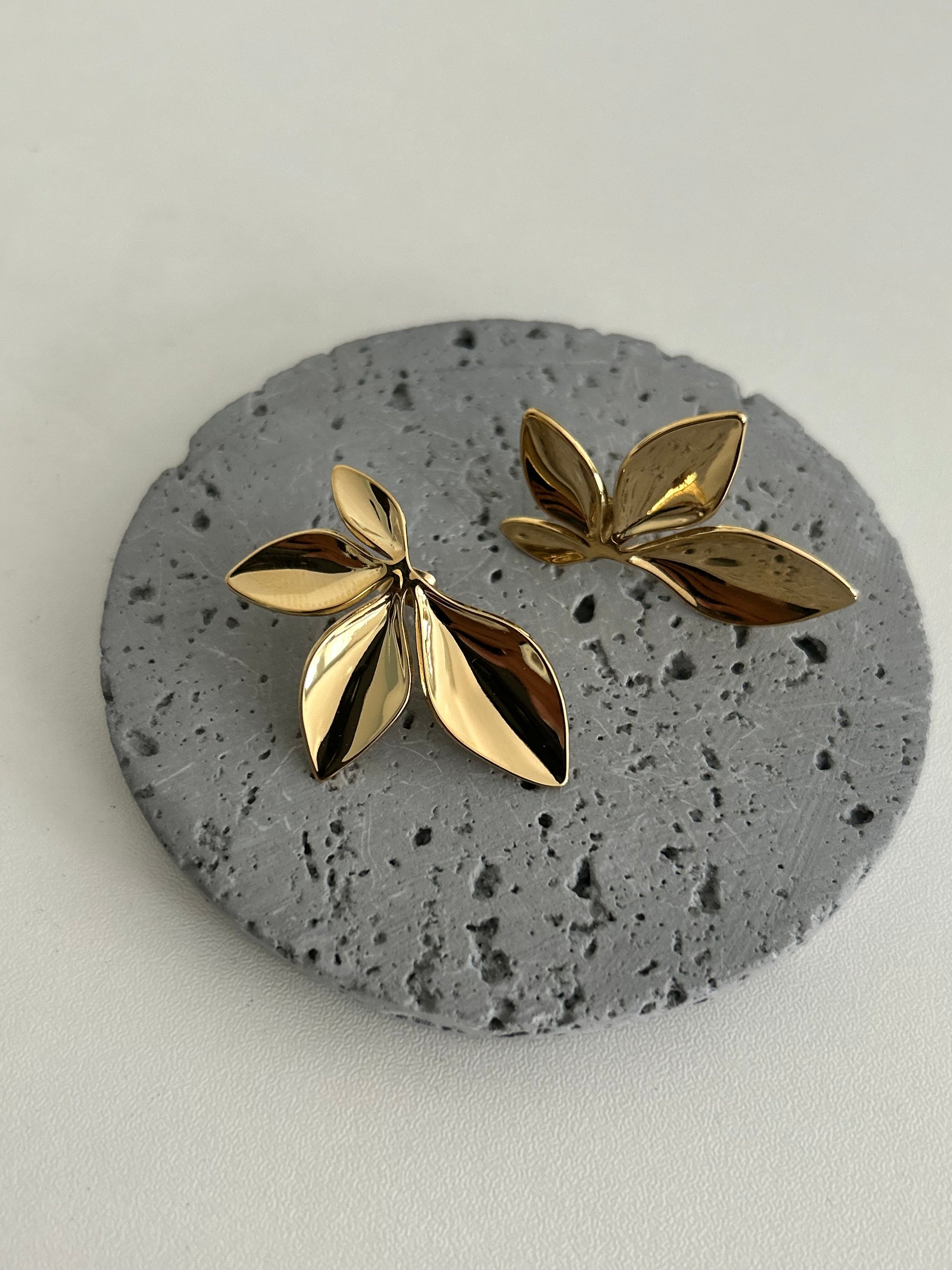 These Flora earrings feature a chunky floral design in high-quality gold plating over stainless steel. Perfect for a classic and sophisticated look, these earrings will add a touch of elegance to any outfit. Get ready to turn heads with these stunning statement pieces.