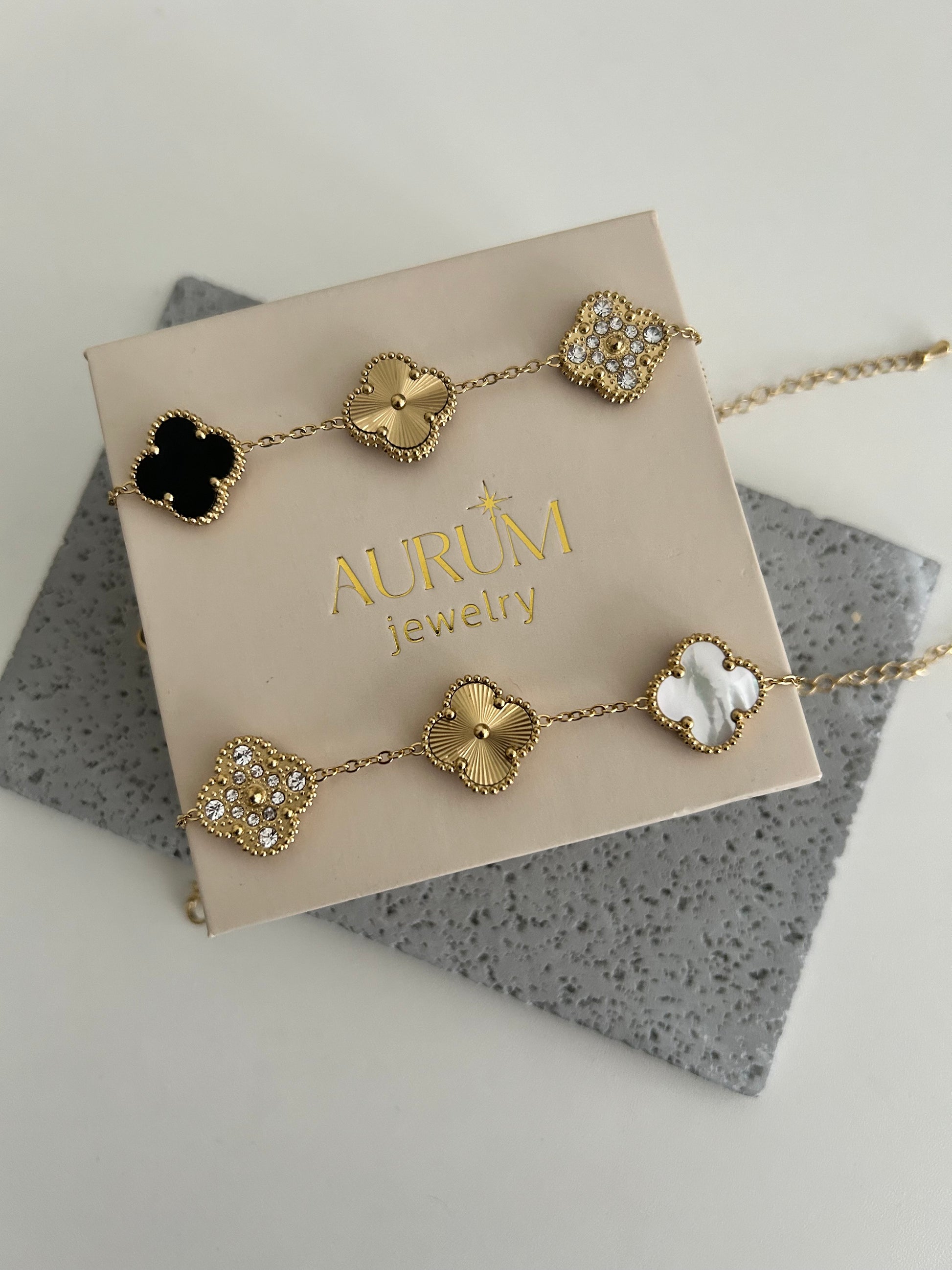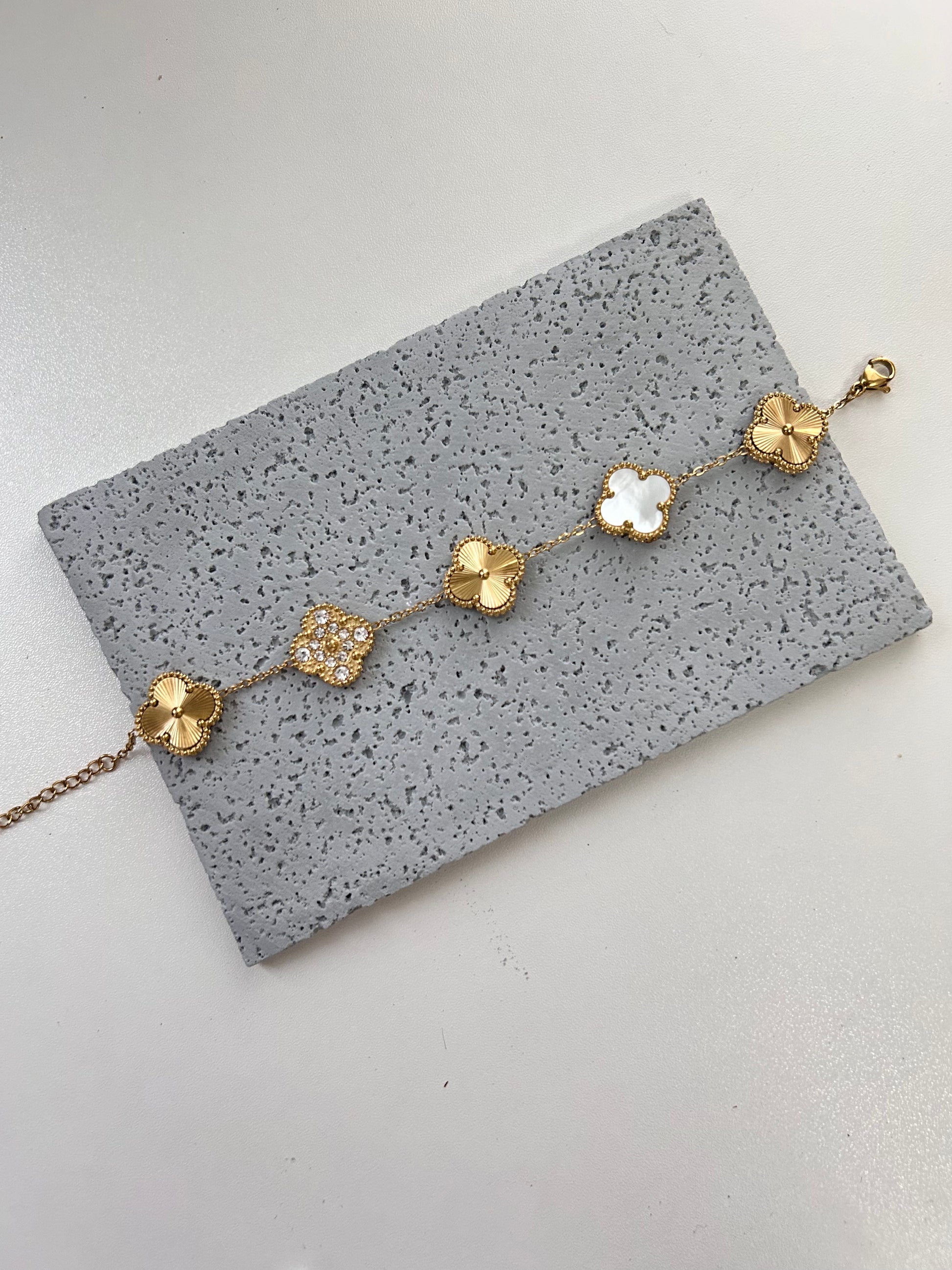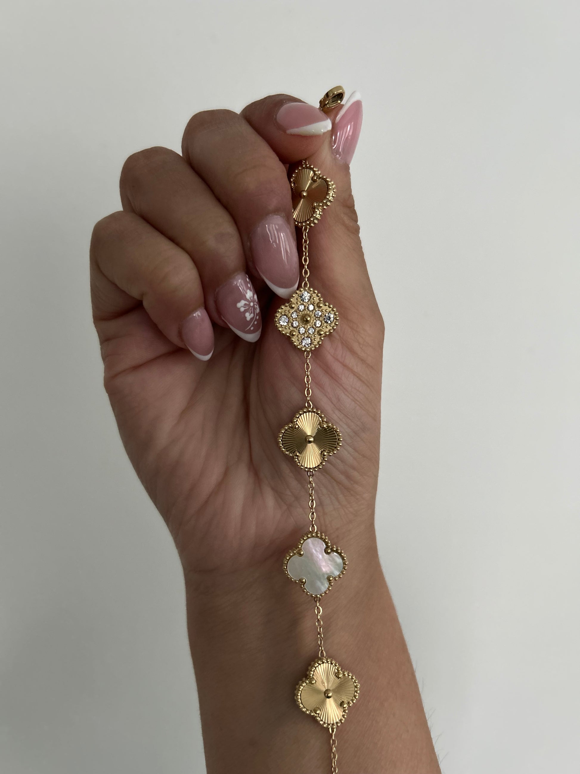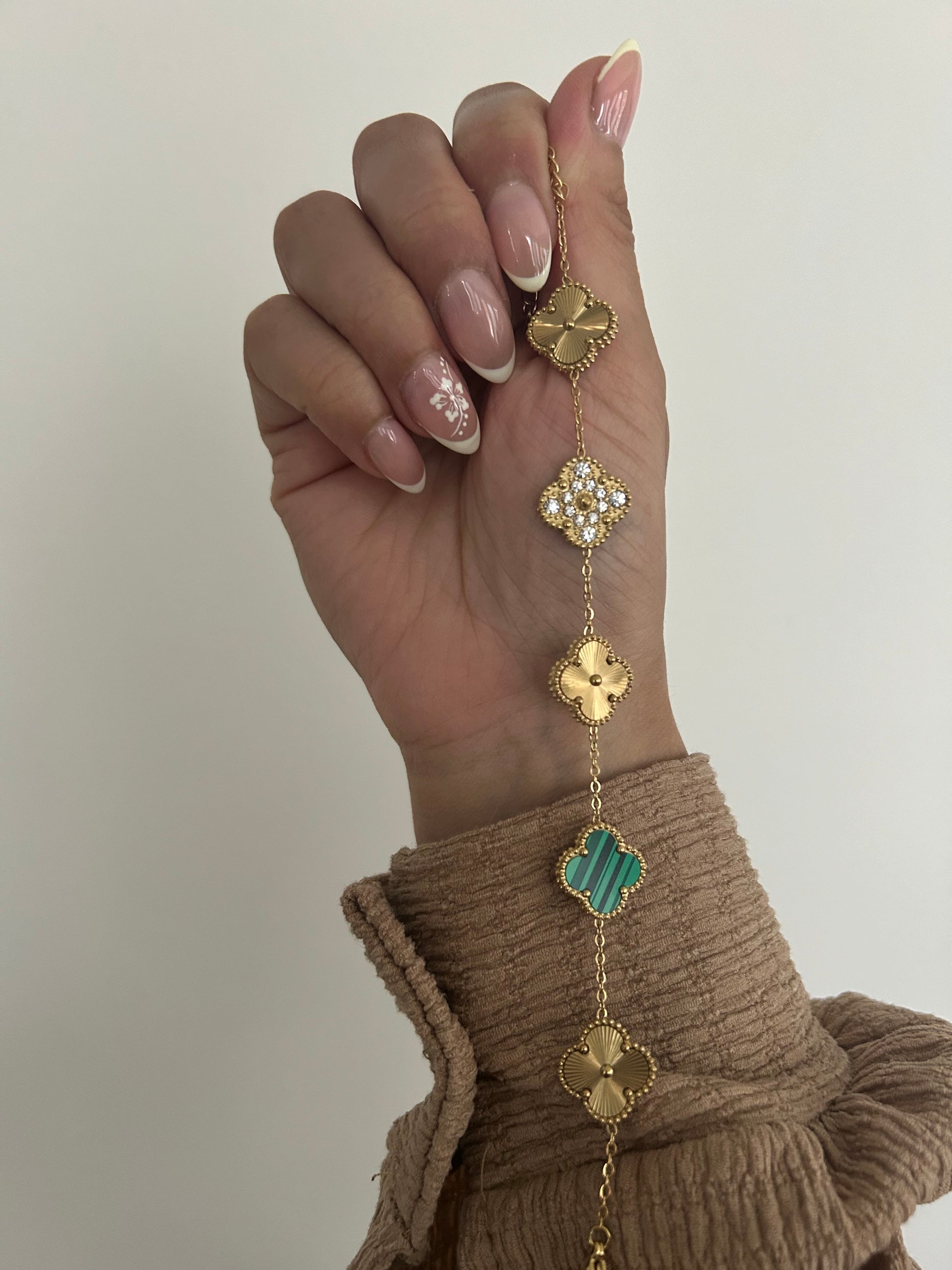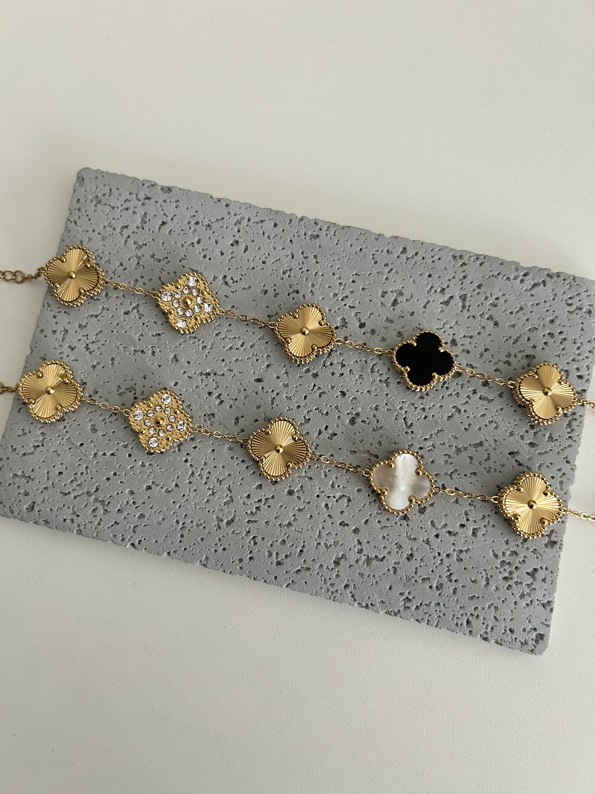 Alayna bracelet • Rhinestone and gold clover bracelet