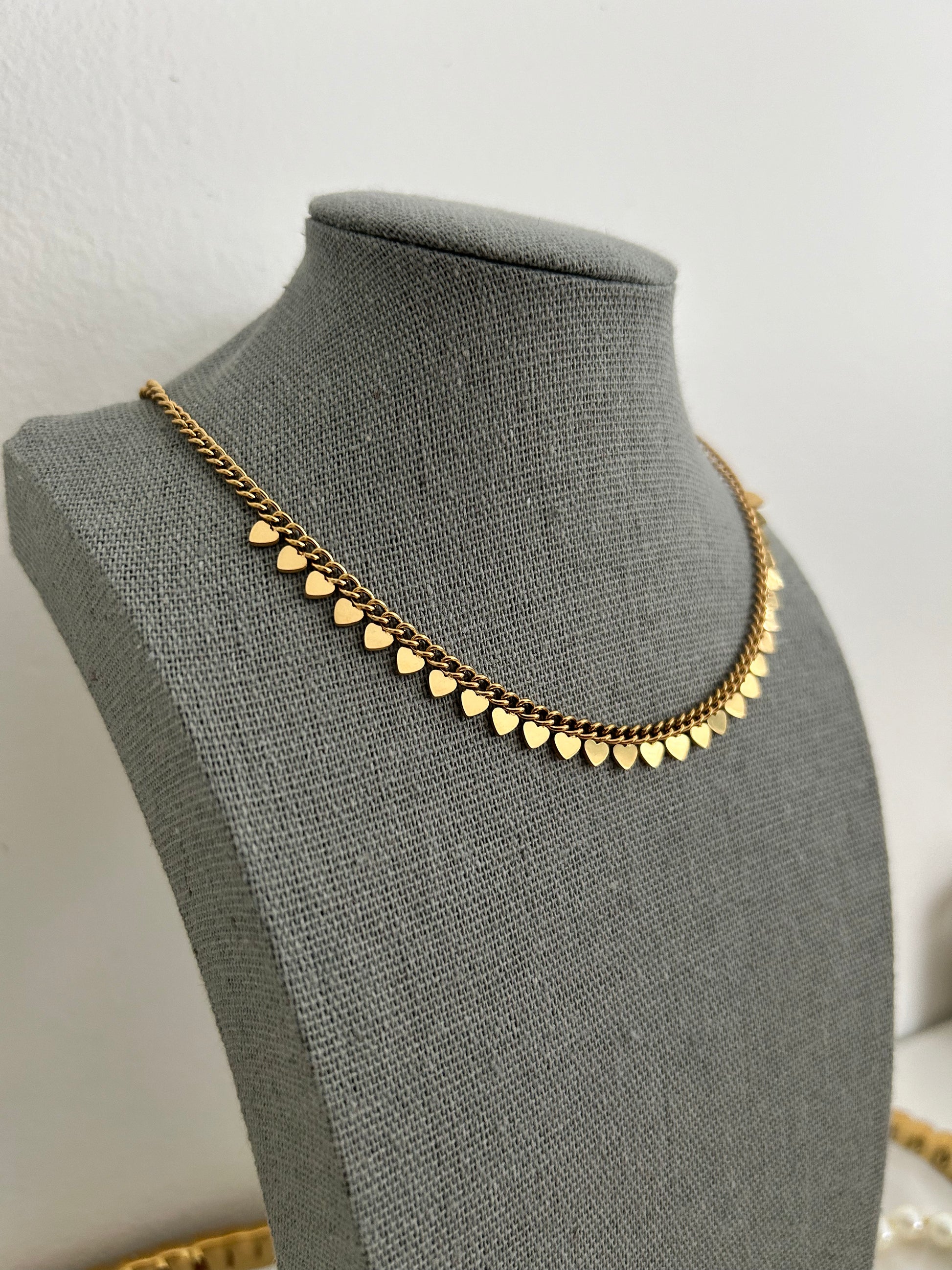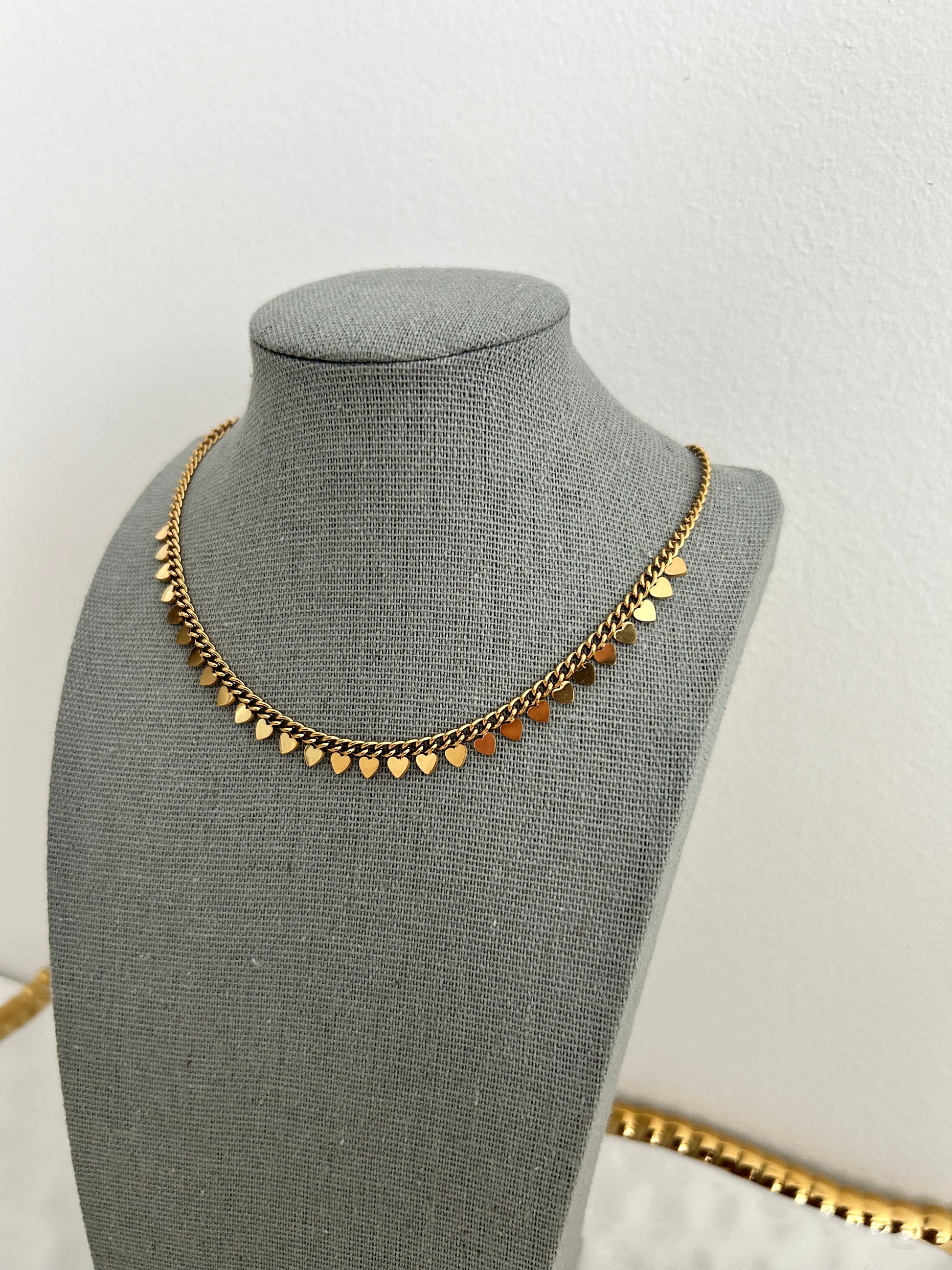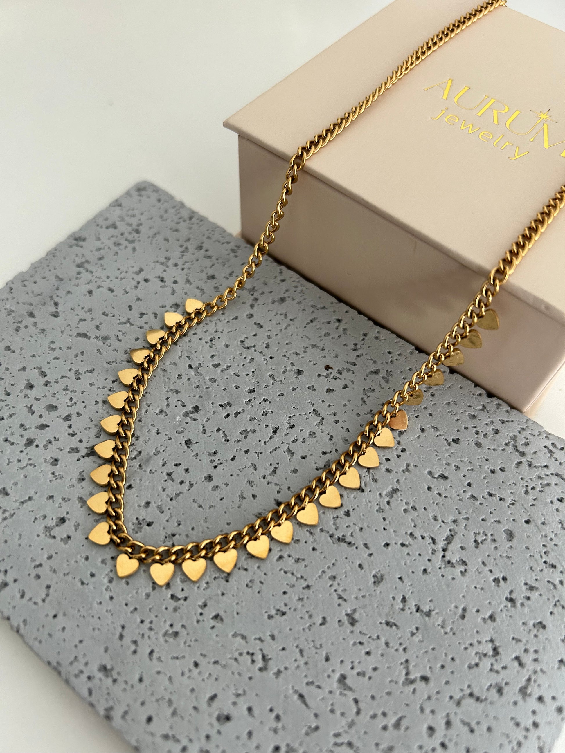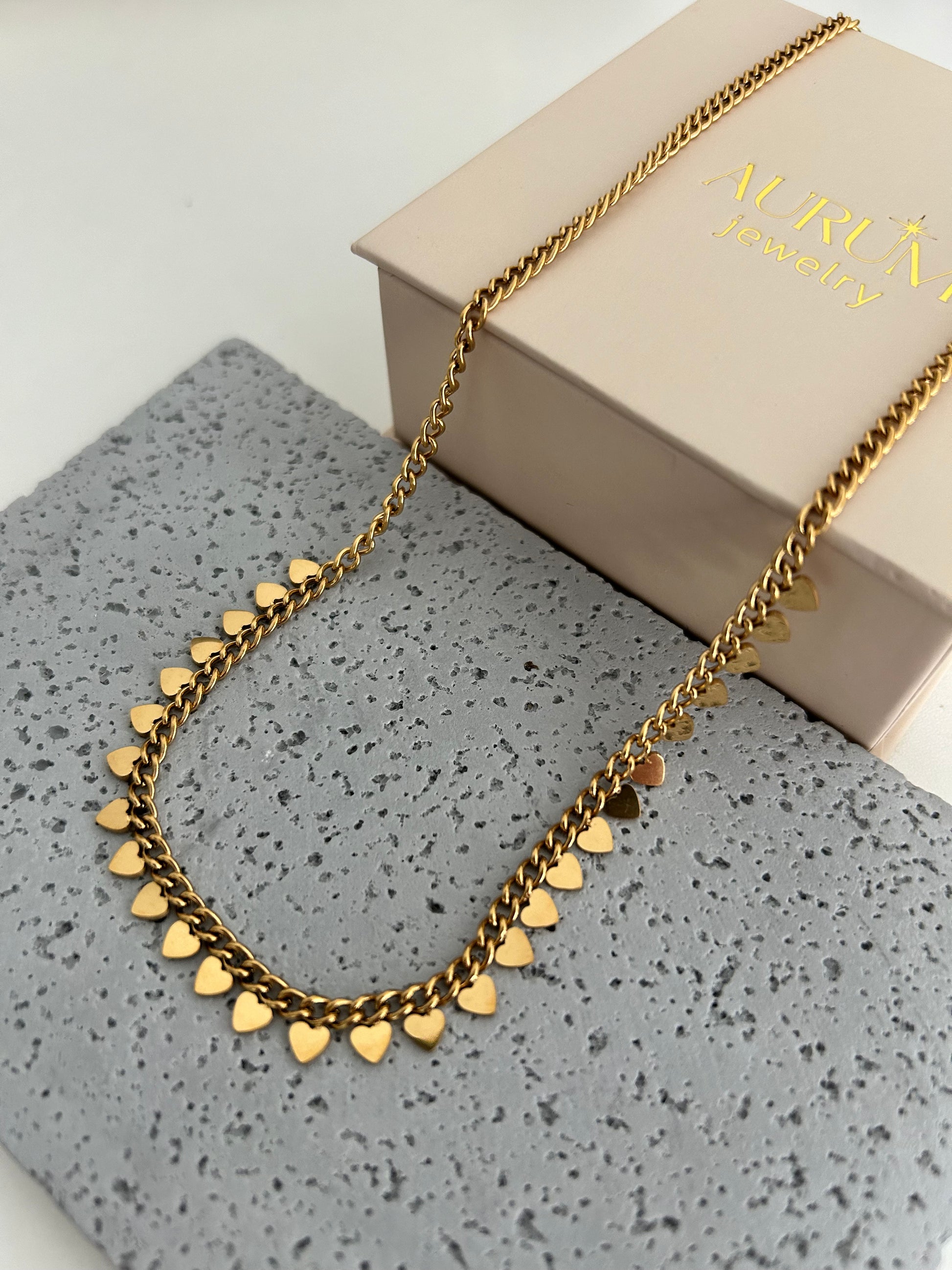 Indulge in timeless elegance with the Mehek Necklace, our gold heart charm necklace. This exquisite necklace exudes sophistication and allure, elevating any ensemble. Be the center of attention with this radiant piece.