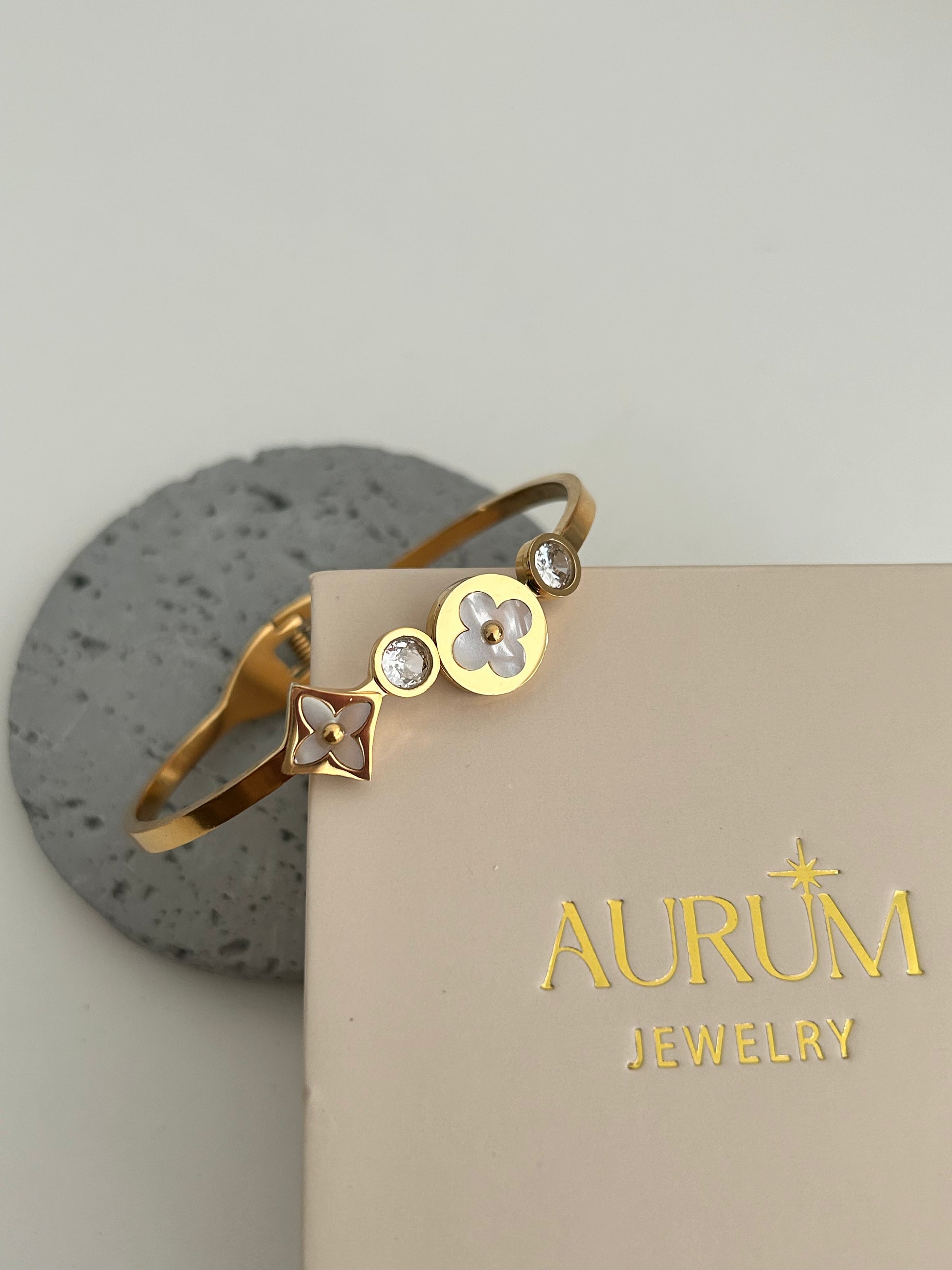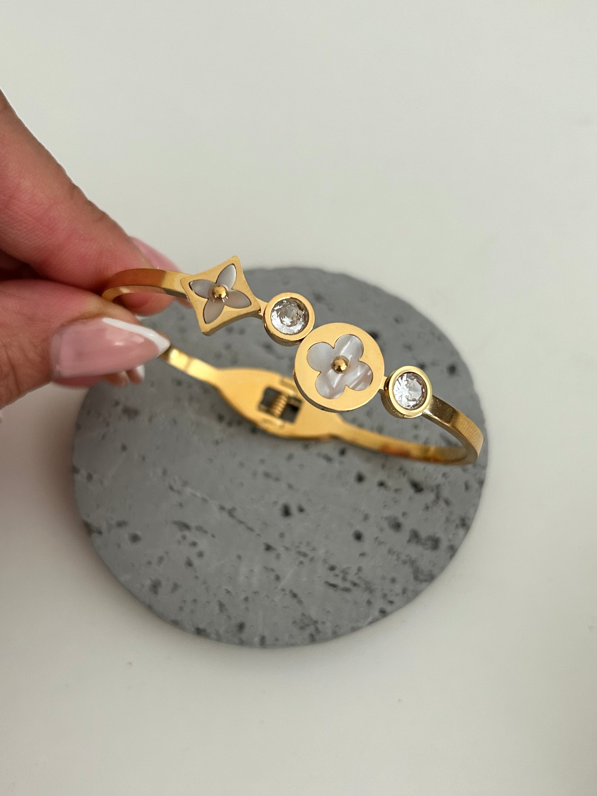 This grey mother of pearl four leaf clover bracelet is beautiful, looks lovely with other bracelets or alone. The grey mother of pearl is very pretty it almost takes on whatever colour you are wearing. As well my order arrived in a lovely packaged with great attention to detail, absolutely beautiful!