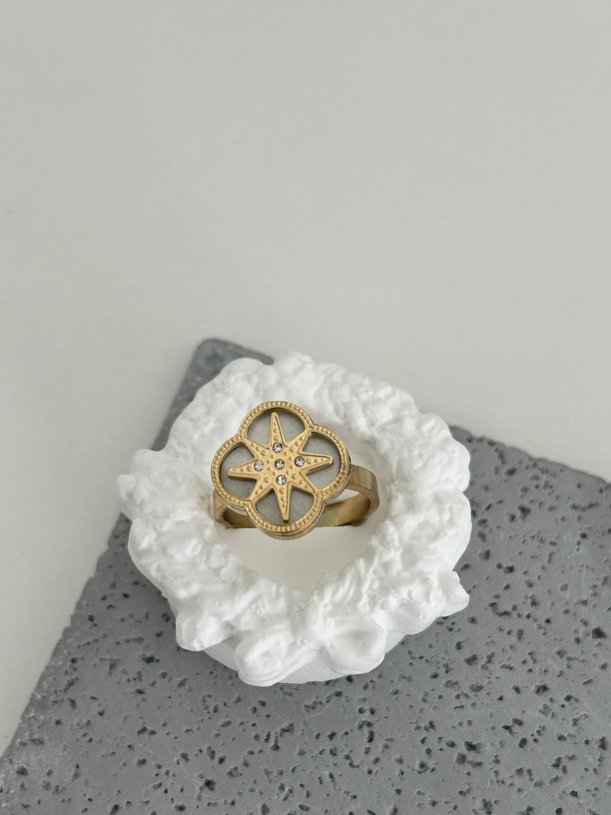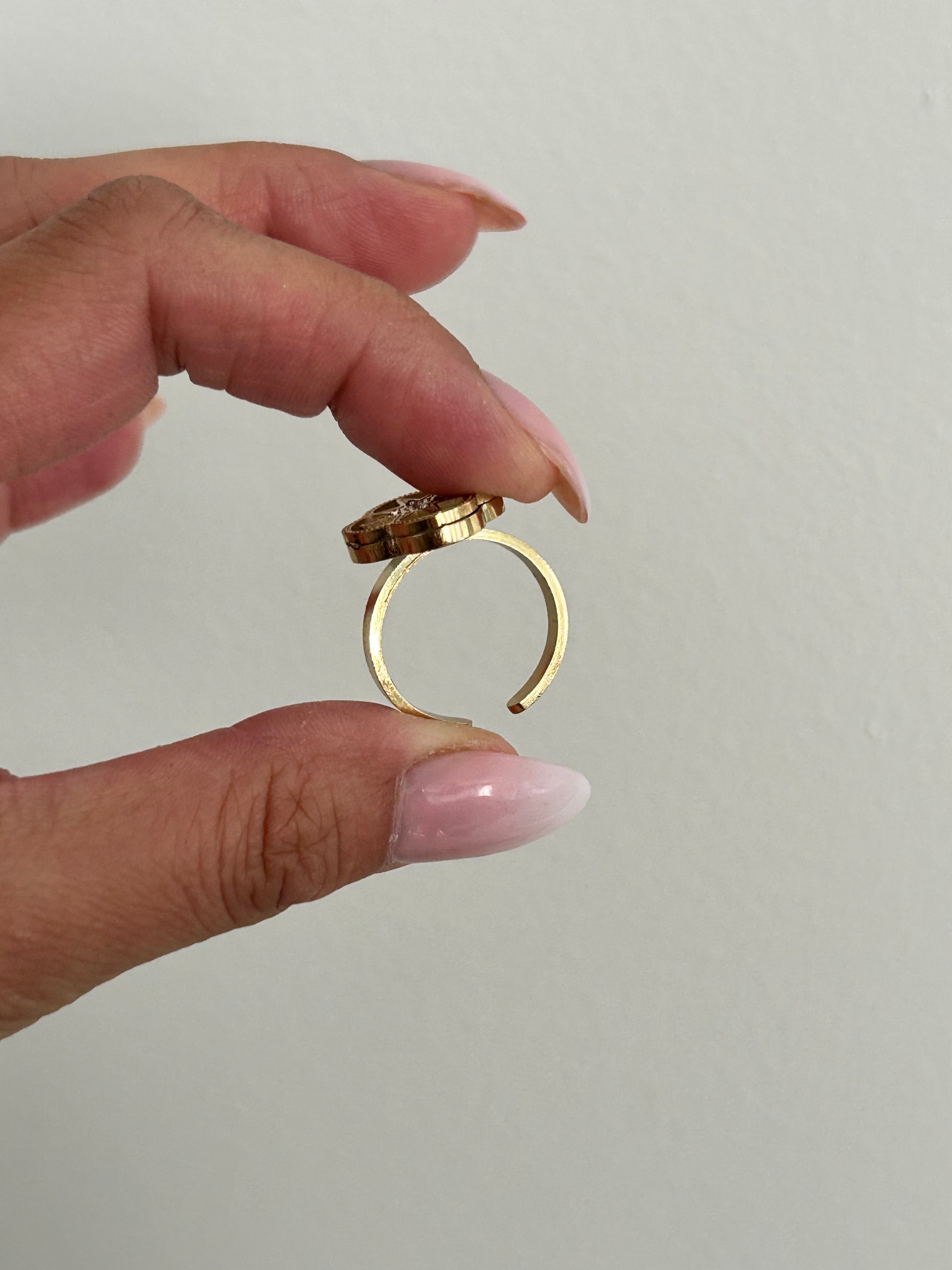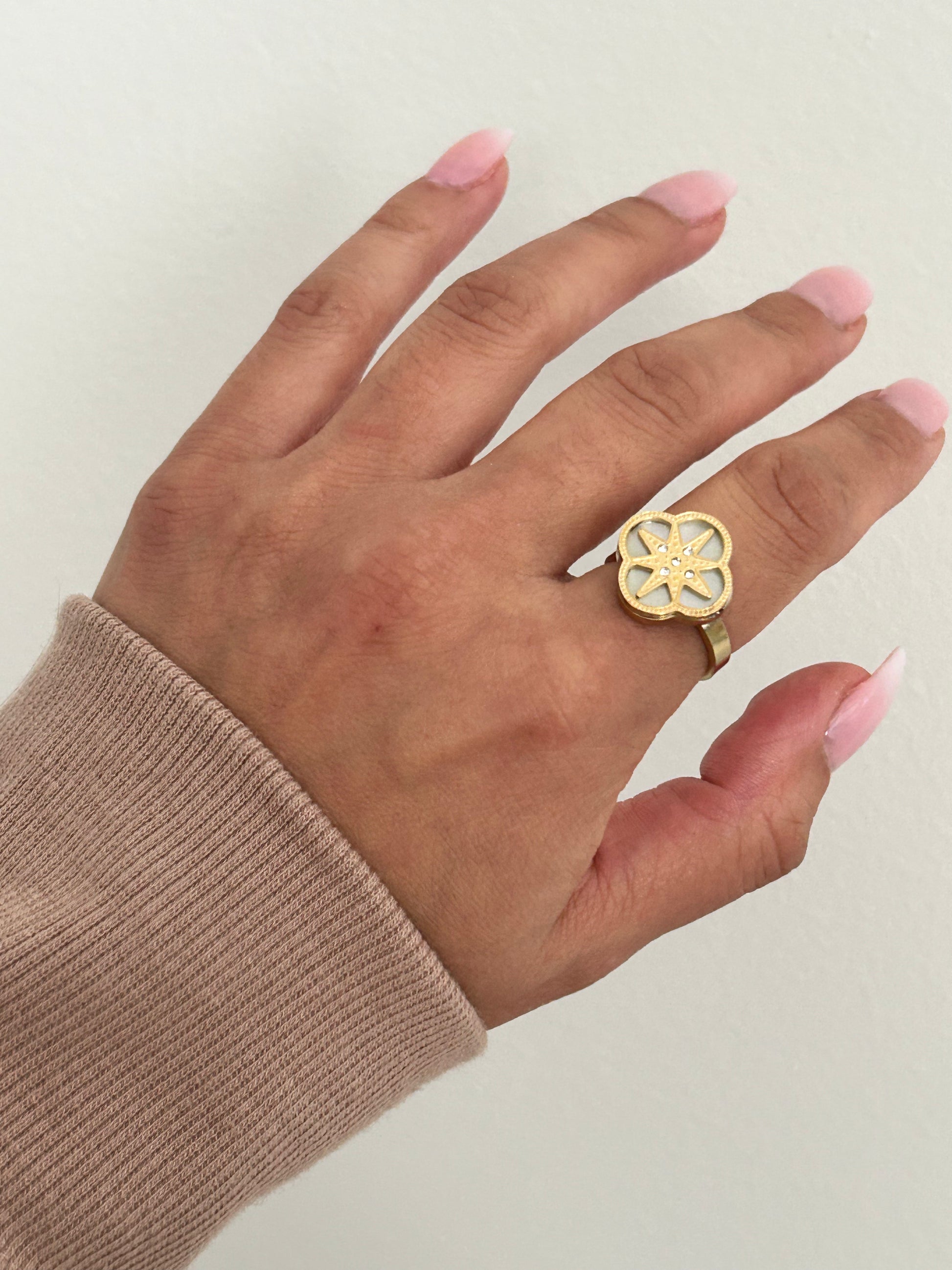 Maha ring - Adjustable Gold Sparkle Clover Ring