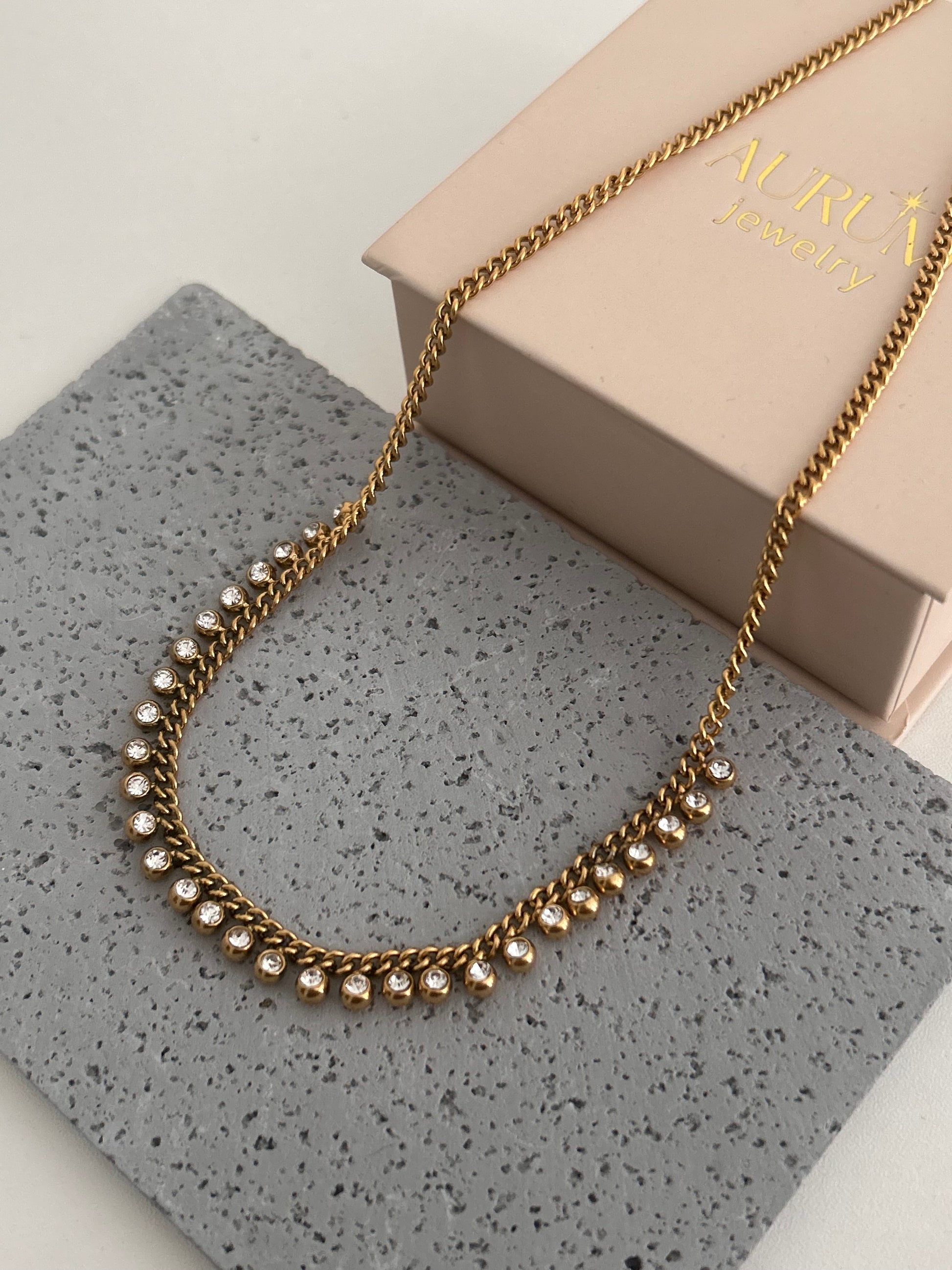 Mala Necklace • Gold Crystal charm necklace key features: