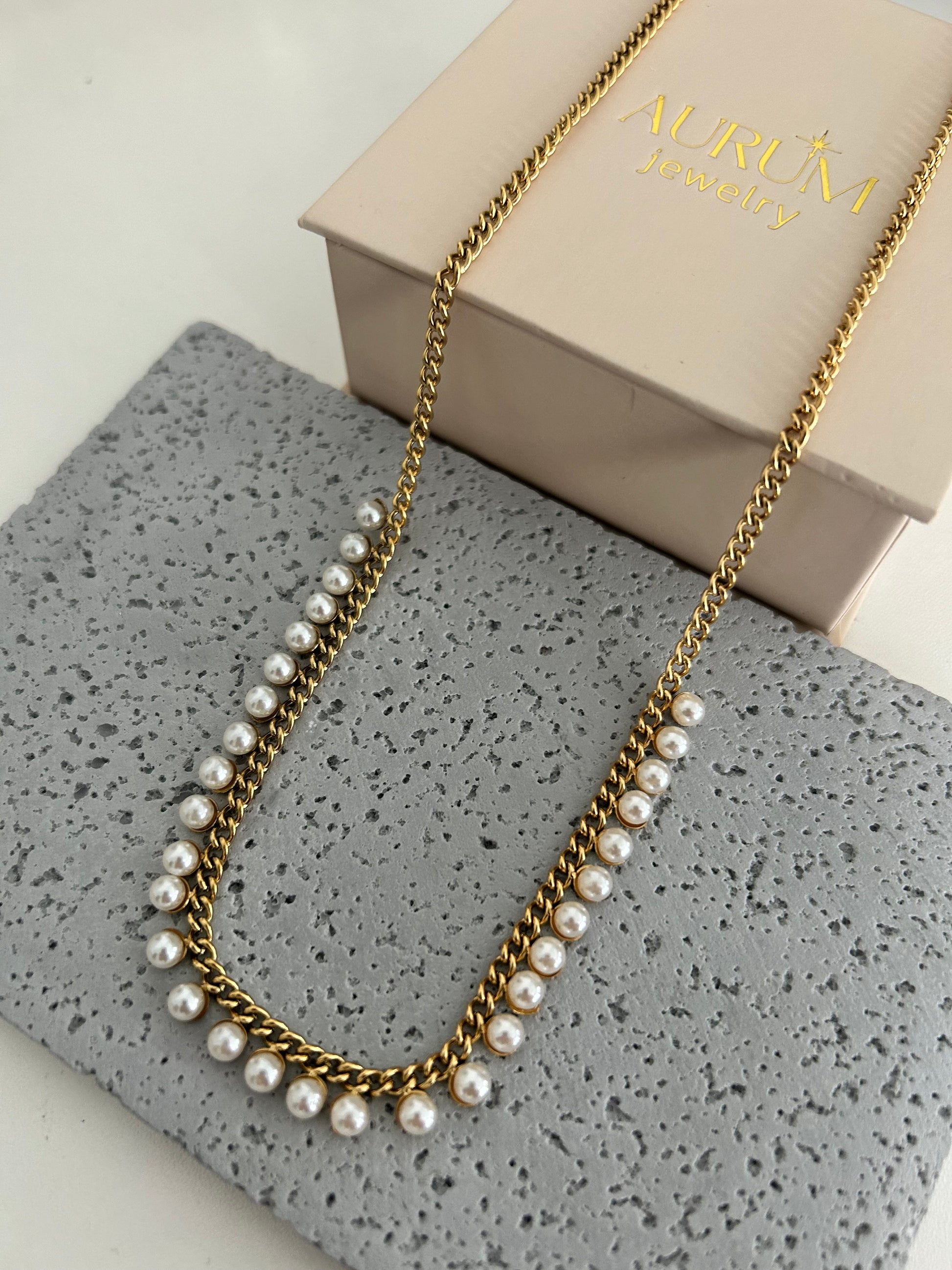 Malayka Necklace • Gold pearl necklace key features: