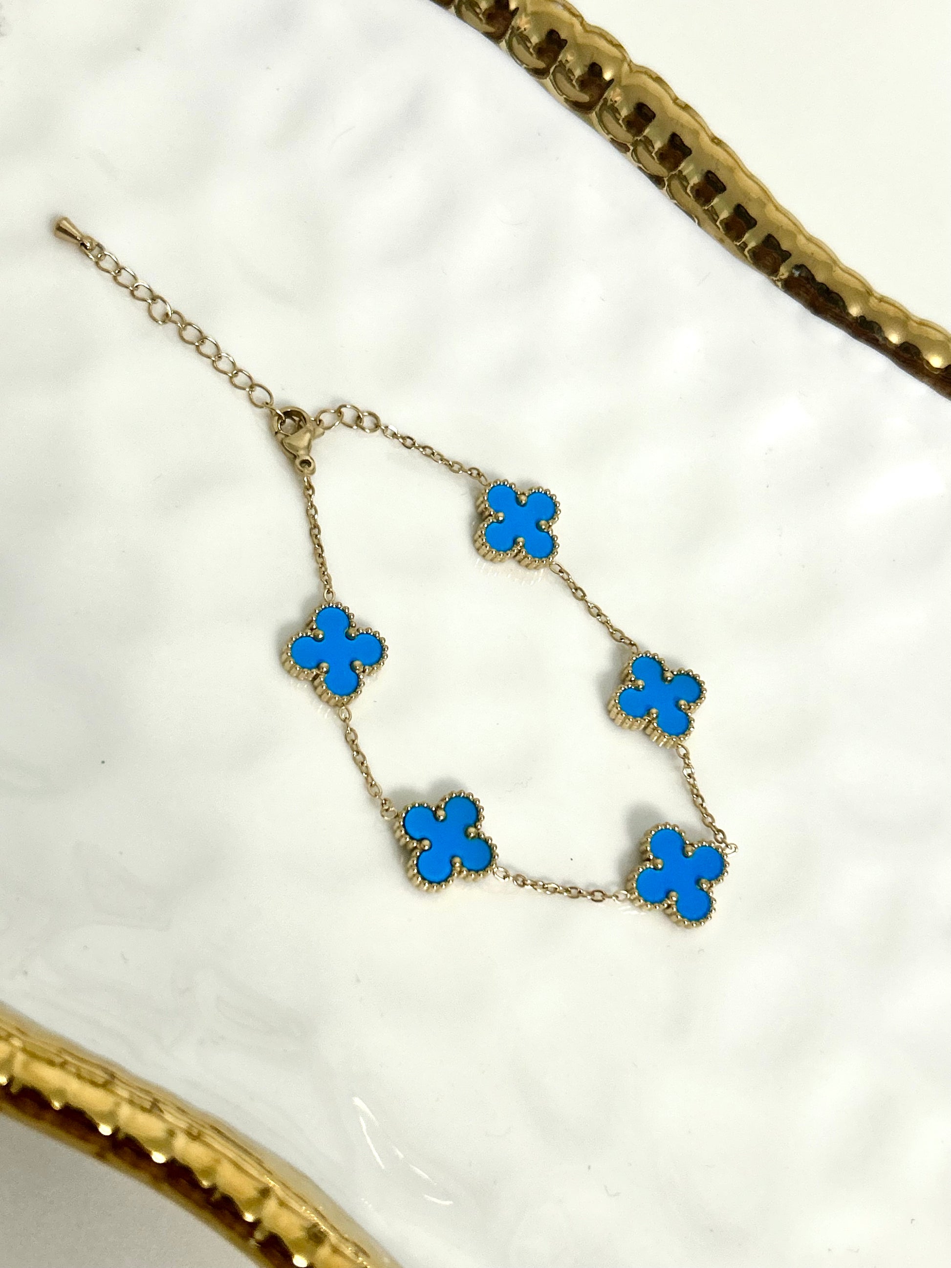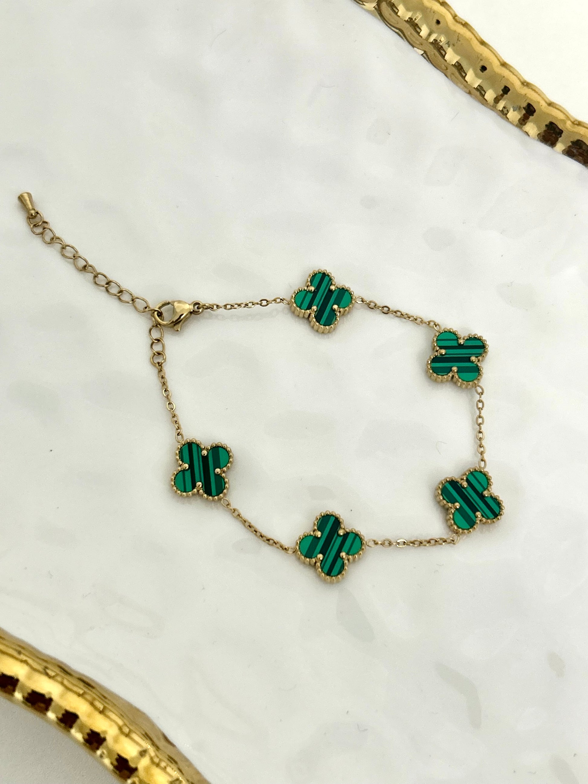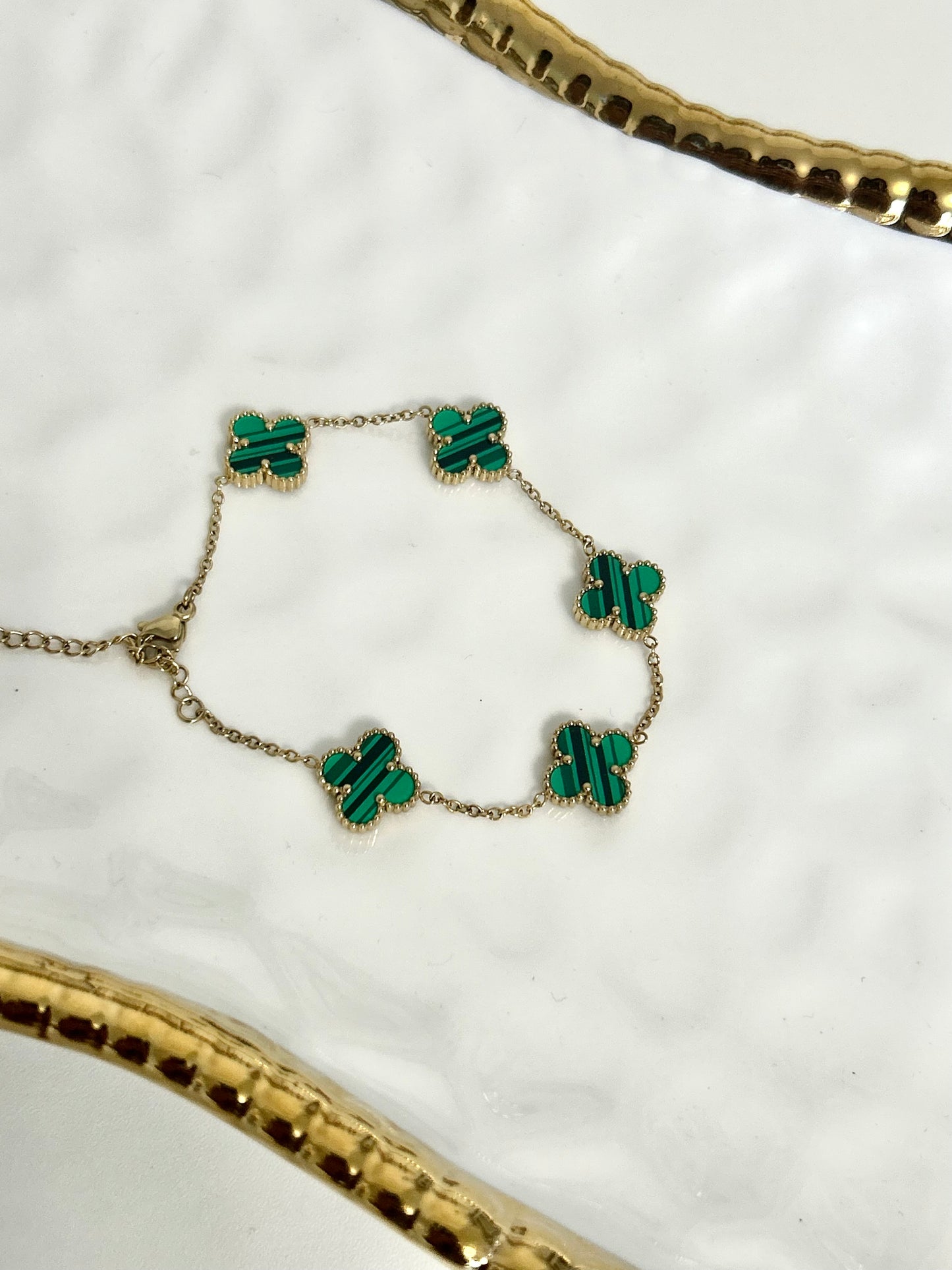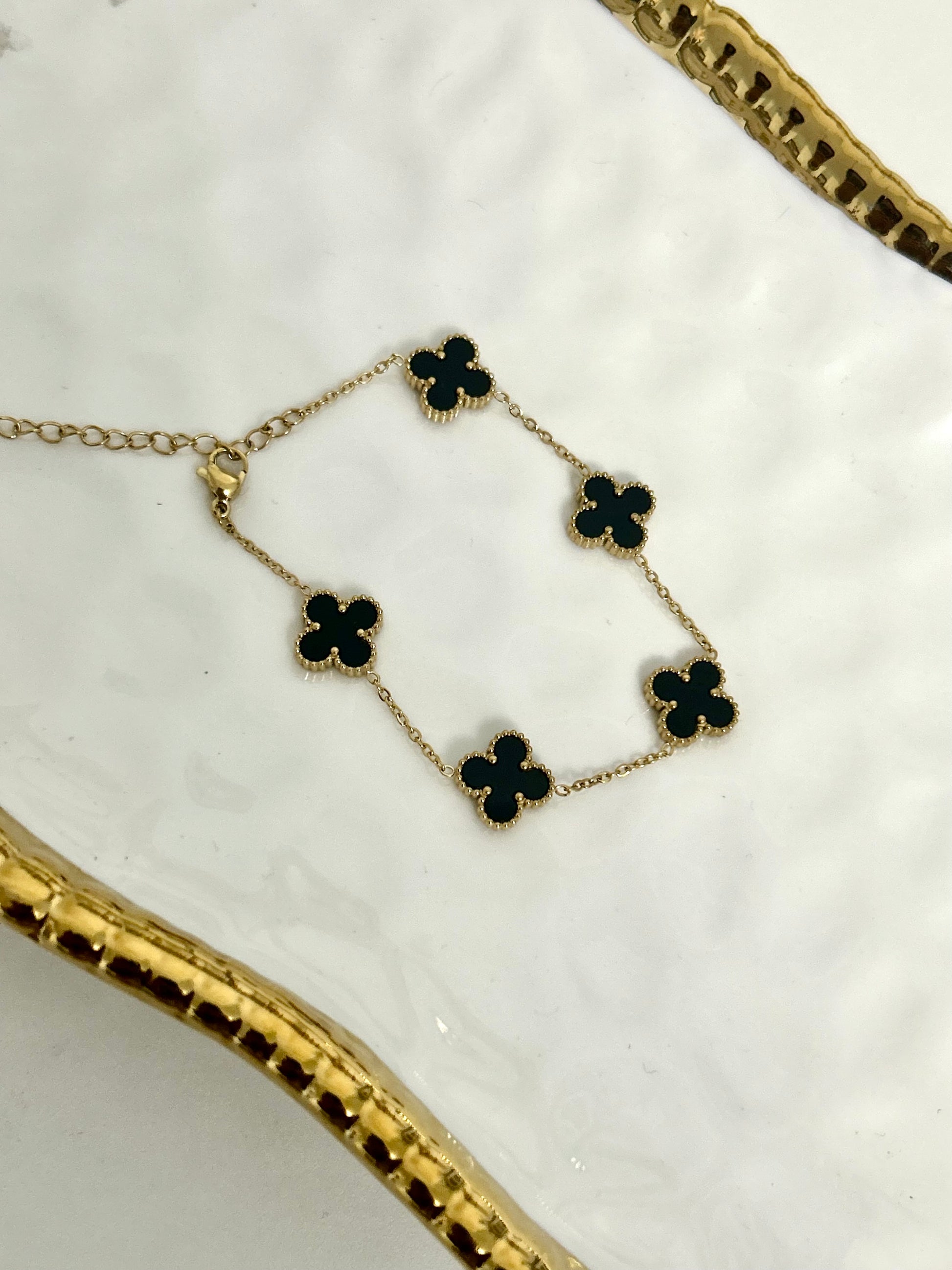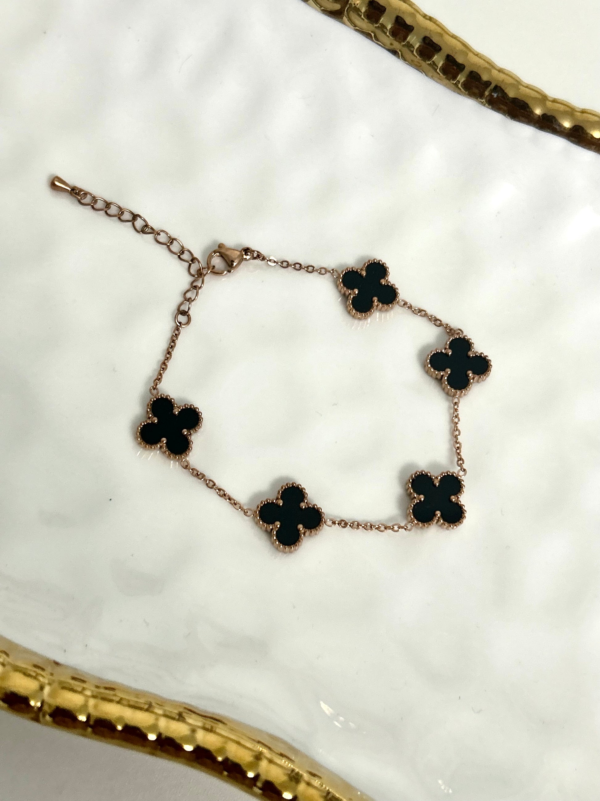 This grey mother of pearl four leaf clover bracelet is beautiful, looks lovely with other bracelets or alone. The grey mother of pearl is very pretty it almost takes on whatever colour you are wearing. As well my order arrived in a lovely packaged with great attention to detail, absolutely beautiful!