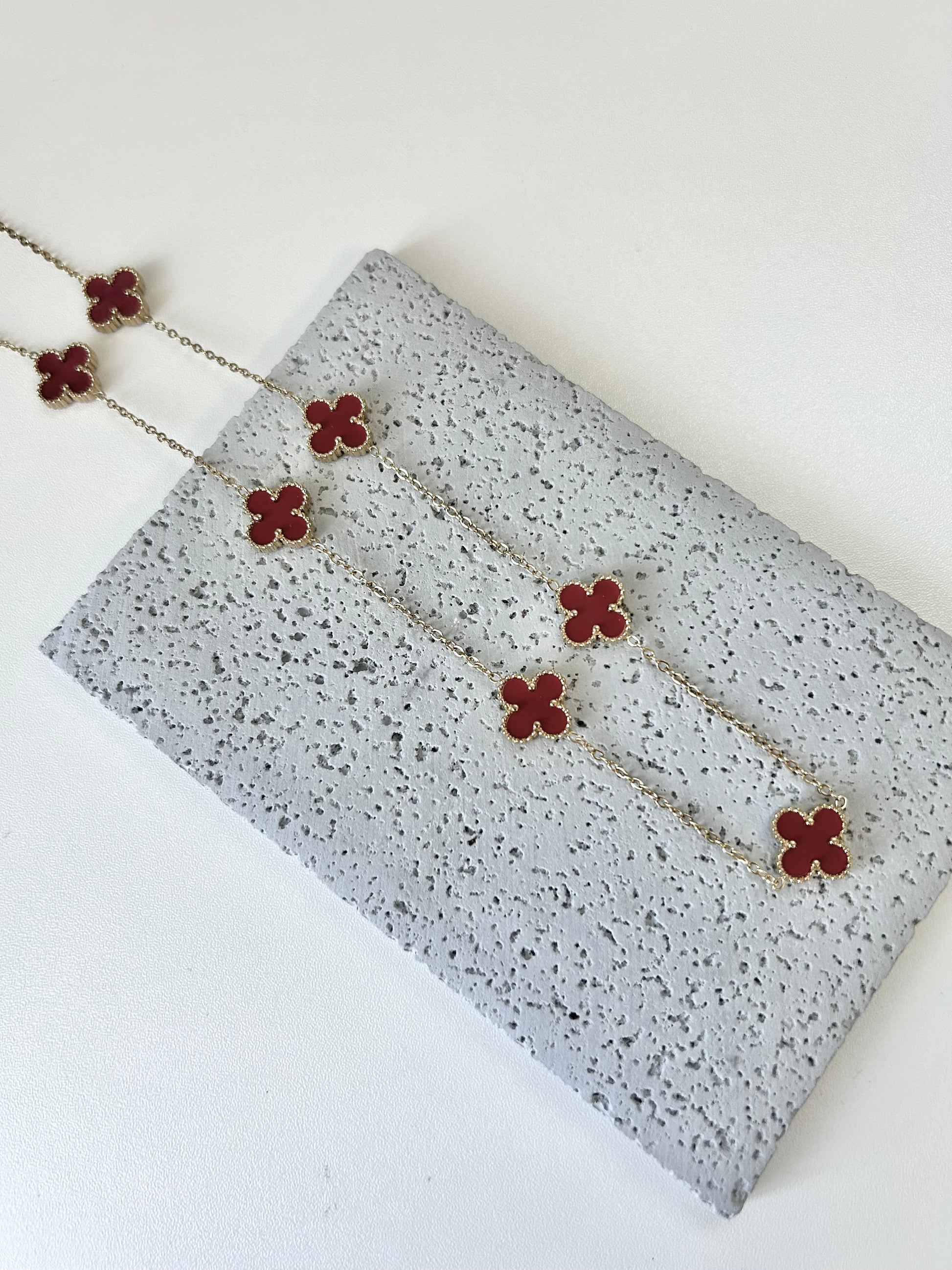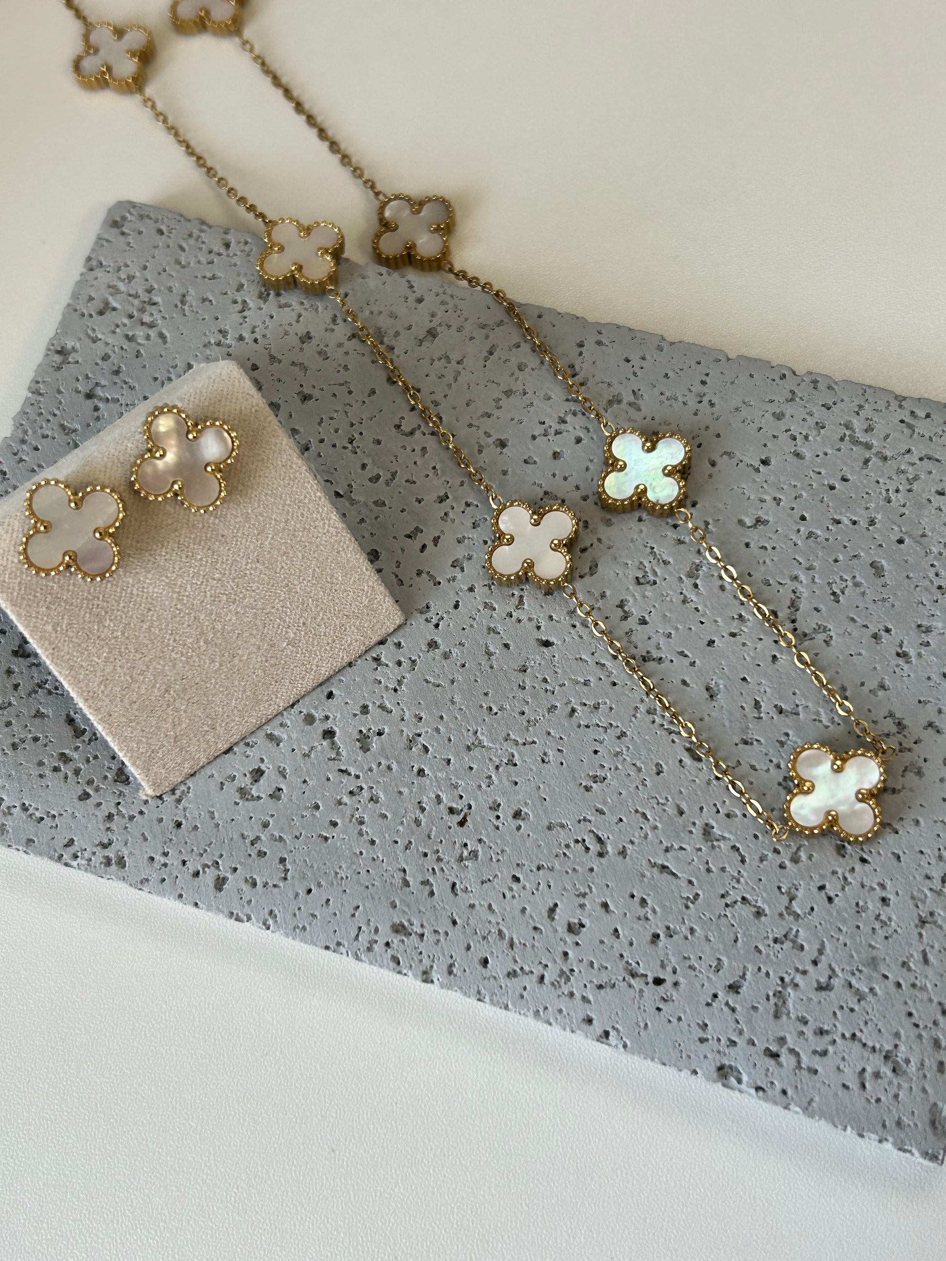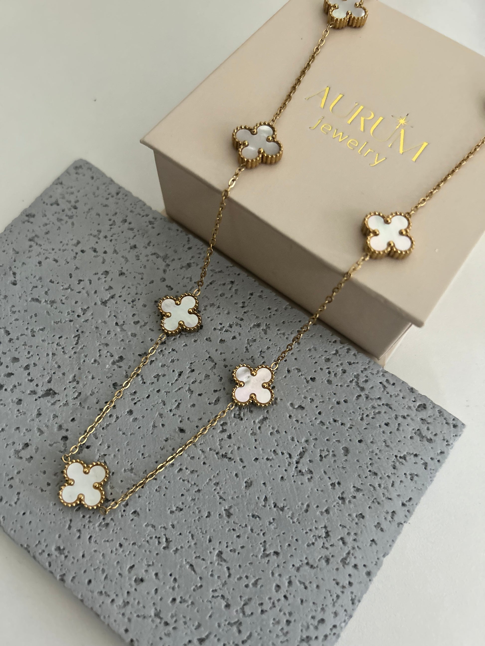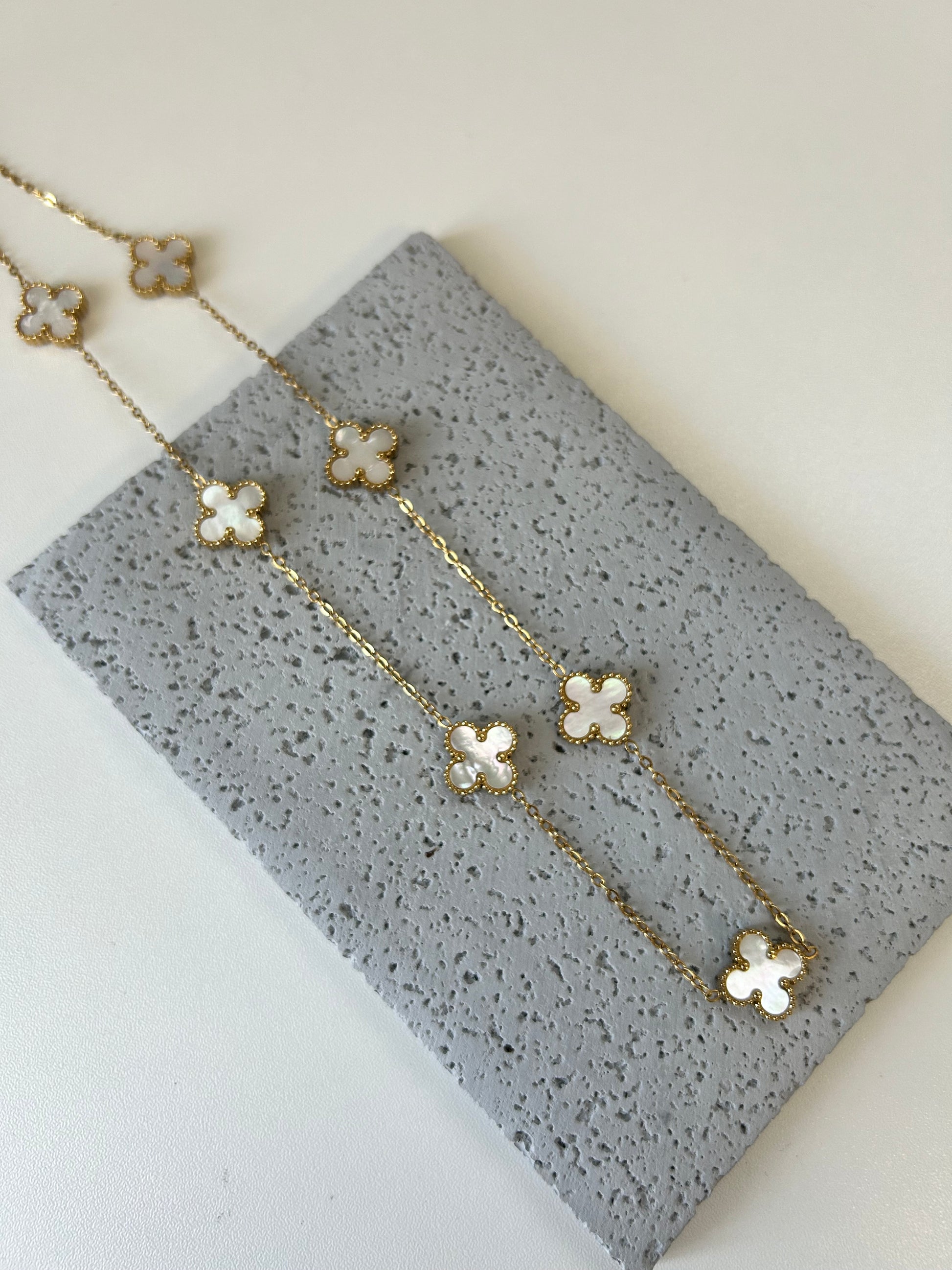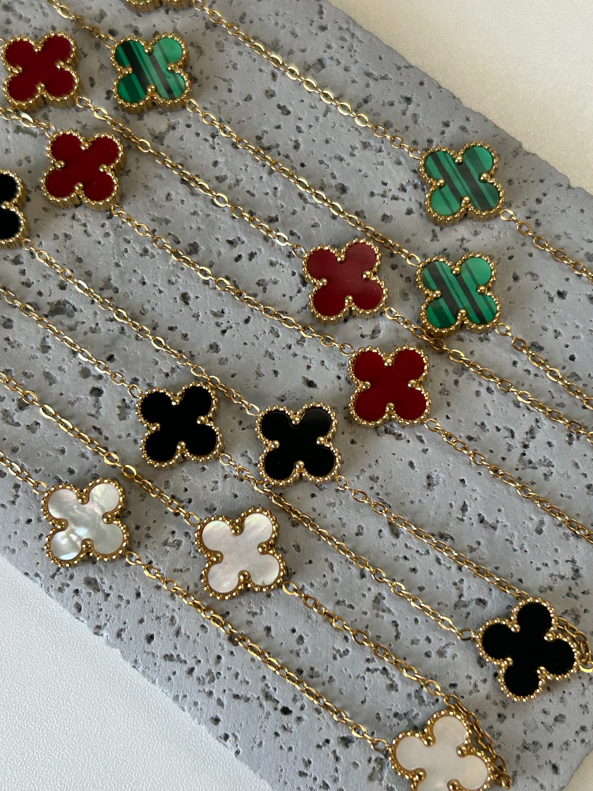 This grey mother of pearl four leaf clover bracelet is beautiful, looks lovely with other bracelets or alone. The grey mother of pearl is very pretty it almost takes on whatever colour you are wearing. As well my order arrived in a lovely packaged with great attention to detail, absolutely beautiful!