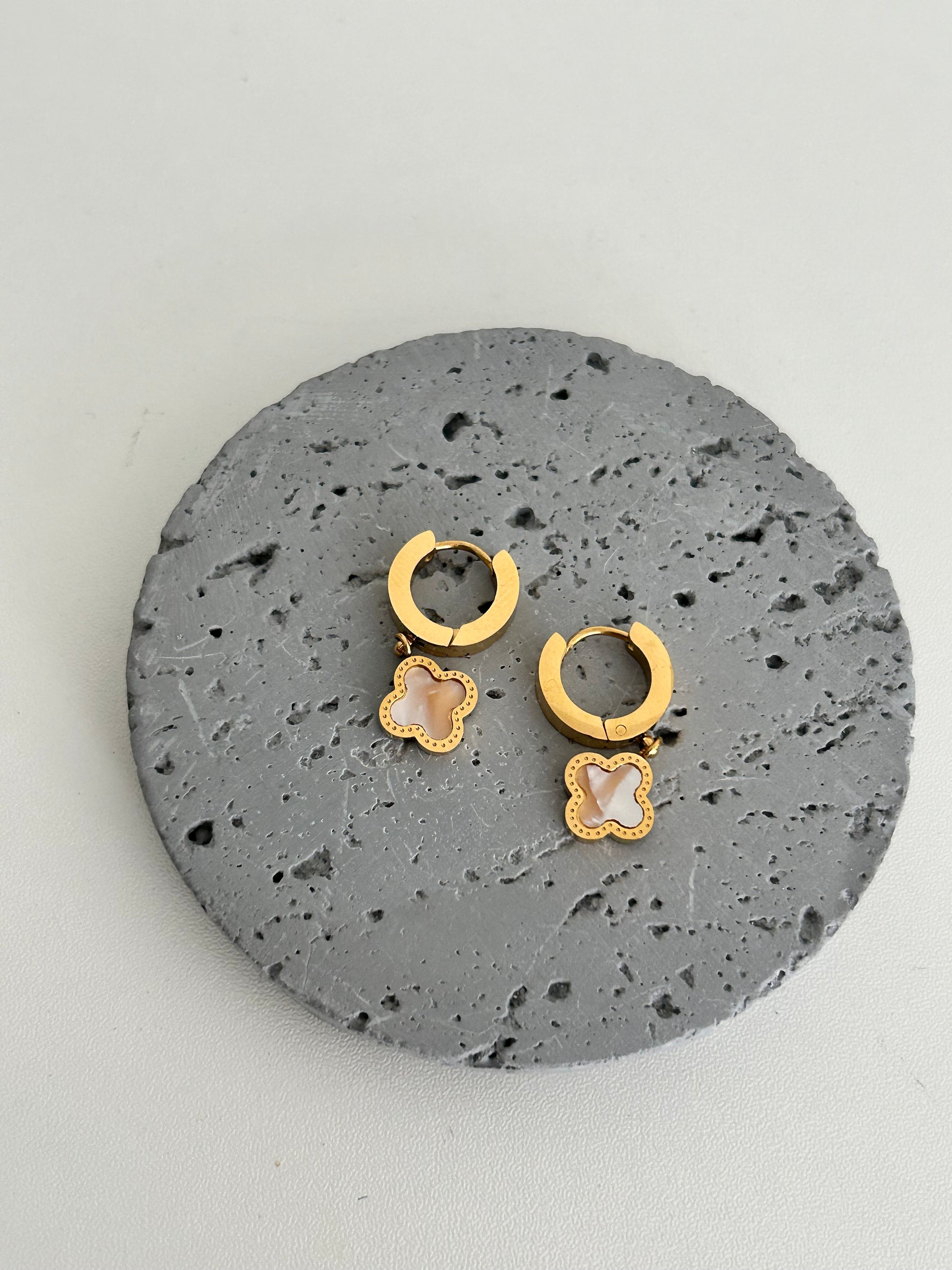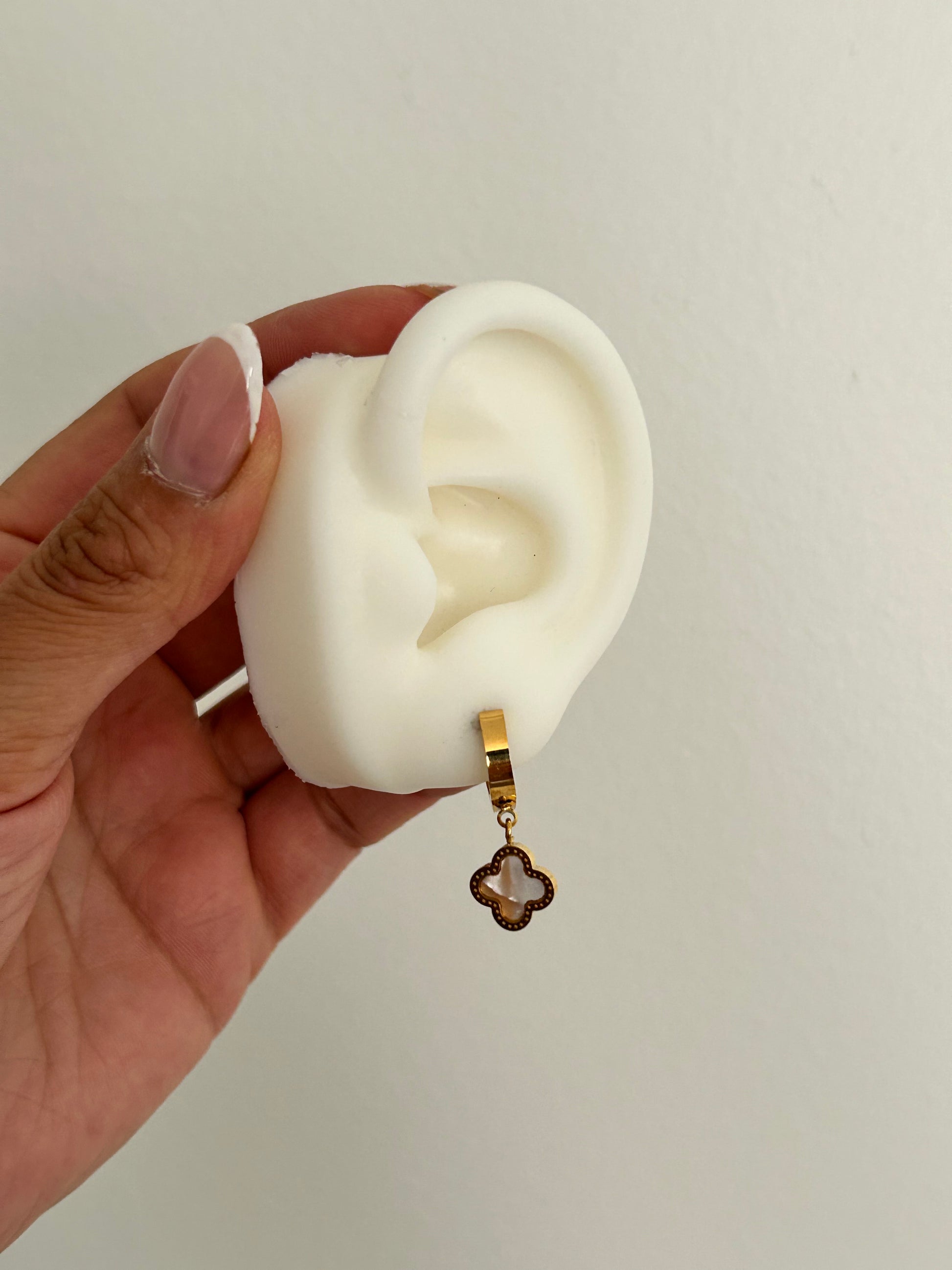 Check out “Zaria” these trendy 18K gold plated over stainless steel Clover Charm Hoop earrings! They're not just super stylish, but also packed with awesome features. First off, they're waterproof, so you don't have to worry about taking them off when you're caught in the rain or hitting the beach. Plus, they're non-tarnish, so they'll keep their shiny, new look for ages. And the best part? They're hypoallergenic, making them perfect for those with sensitive ears. These earrings are all about casual vibes and friendly style, giving your outfit that extra pop of awesomeness. Get ready to rock these beauties and turn some heads!