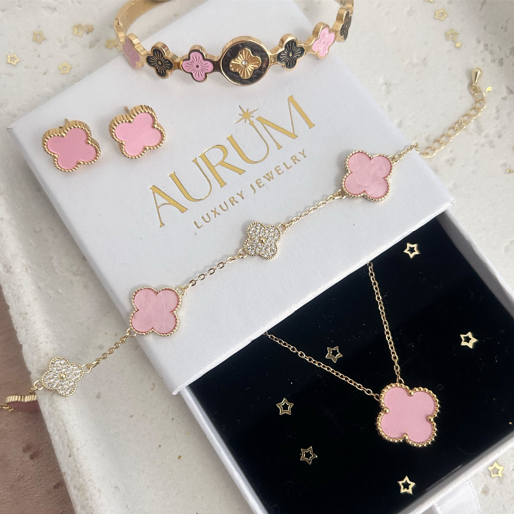 This grey mother of pearl four leaf clover bracelet is beautiful, looks lovely with other bracelets or alone. The grey mother of pearl is very pretty it almost takes on whatever colour you are wearing. As well my order arrived in a lovely packaged with great attention to detail, absolutely beautiful!