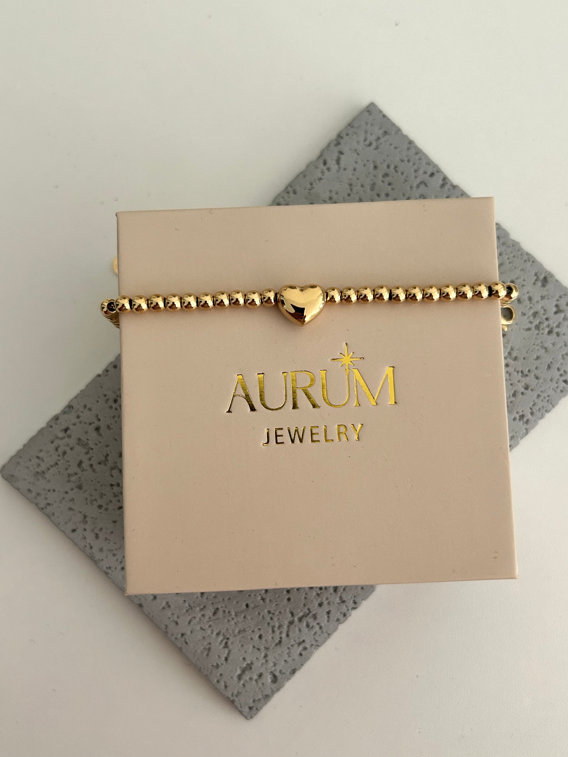 Mila Bracelet • Dainty gold beaded heart bracelet