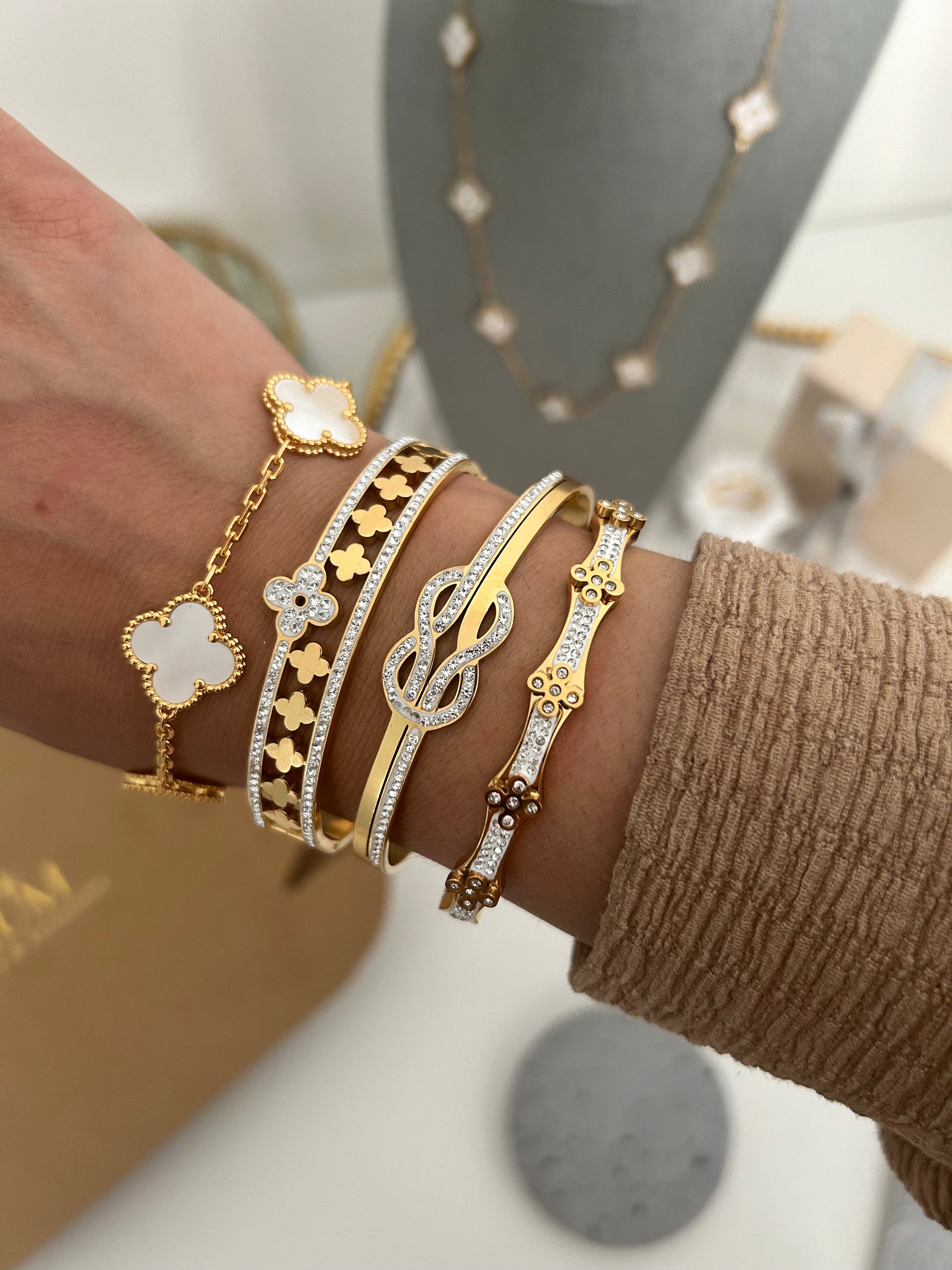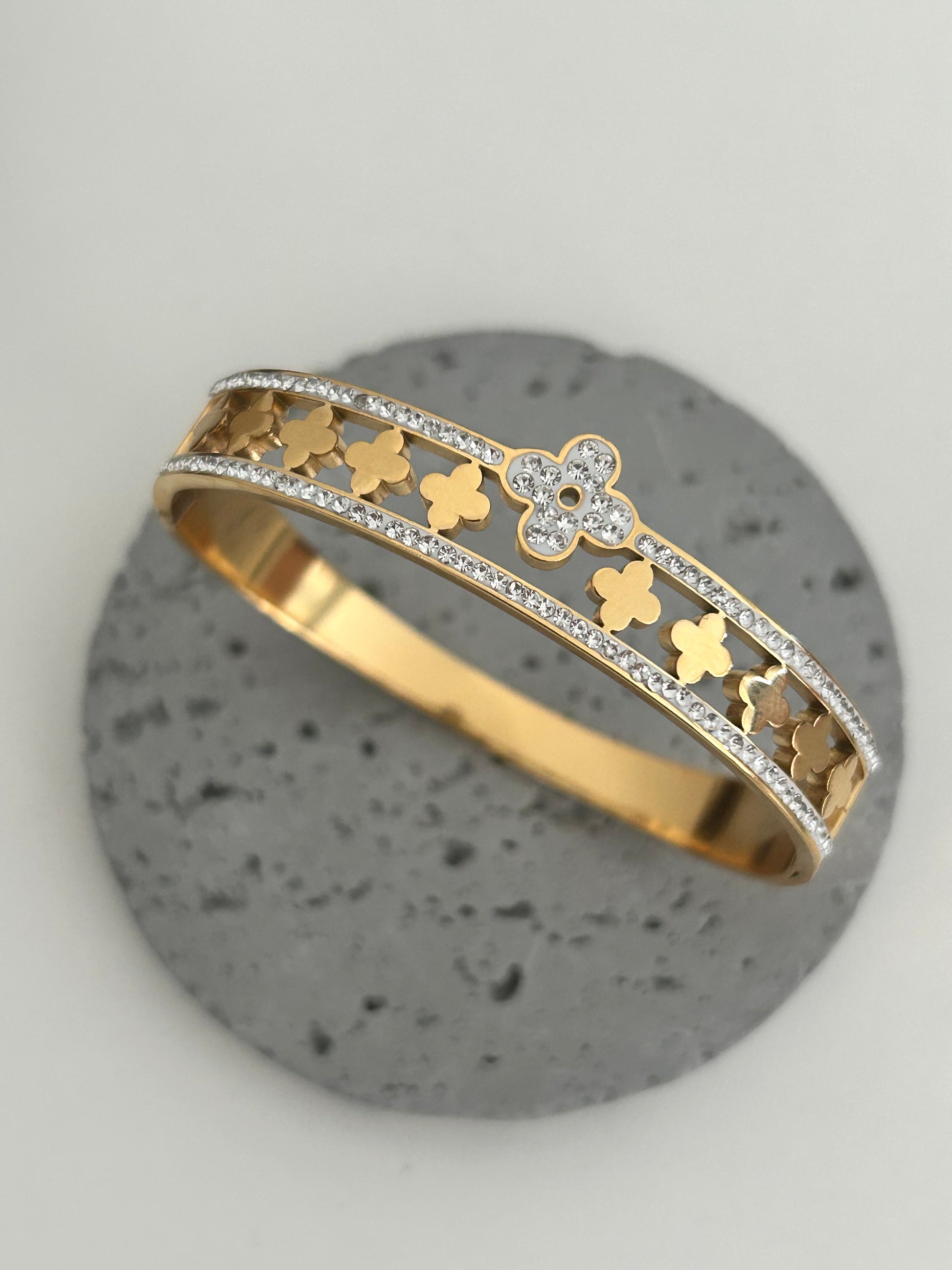 This grey mother of pearl four leaf clover bracelet is beautiful, looks lovely with other bracelets or alone. The grey mother of pearl is very pretty it almost takes on whatever colour you are wearing. As well my order arrived in a lovely packaged with great attention to detail, absolutely beautiful!