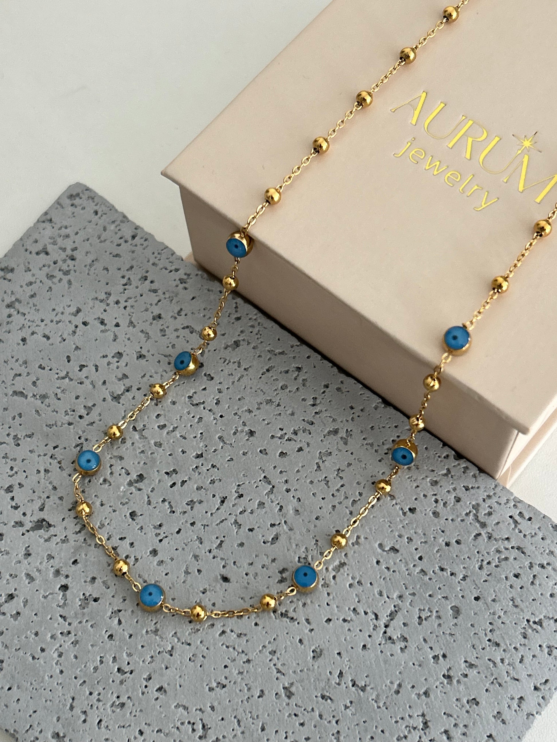 Raya necklace • Evil eye beaded gold necklace