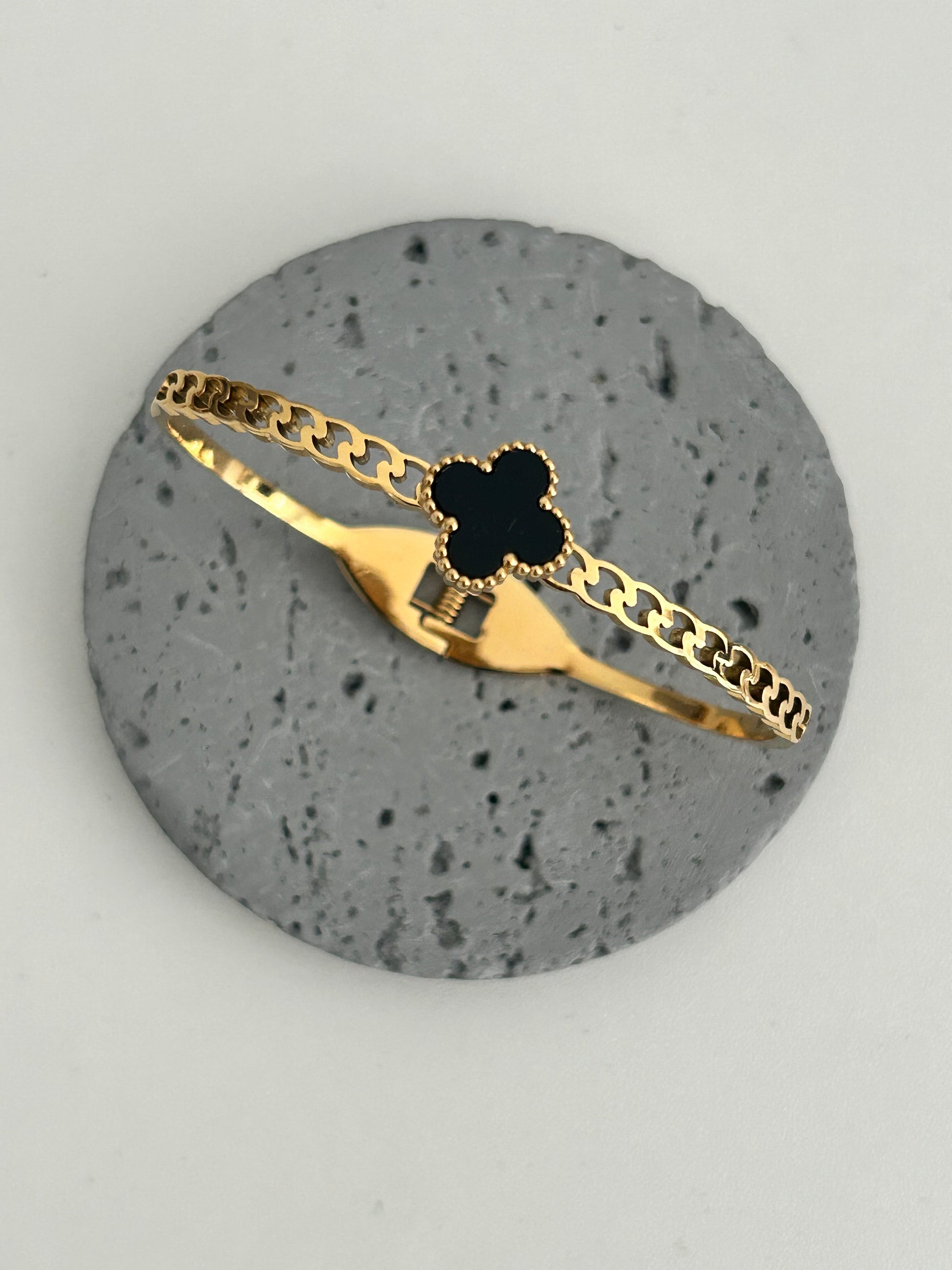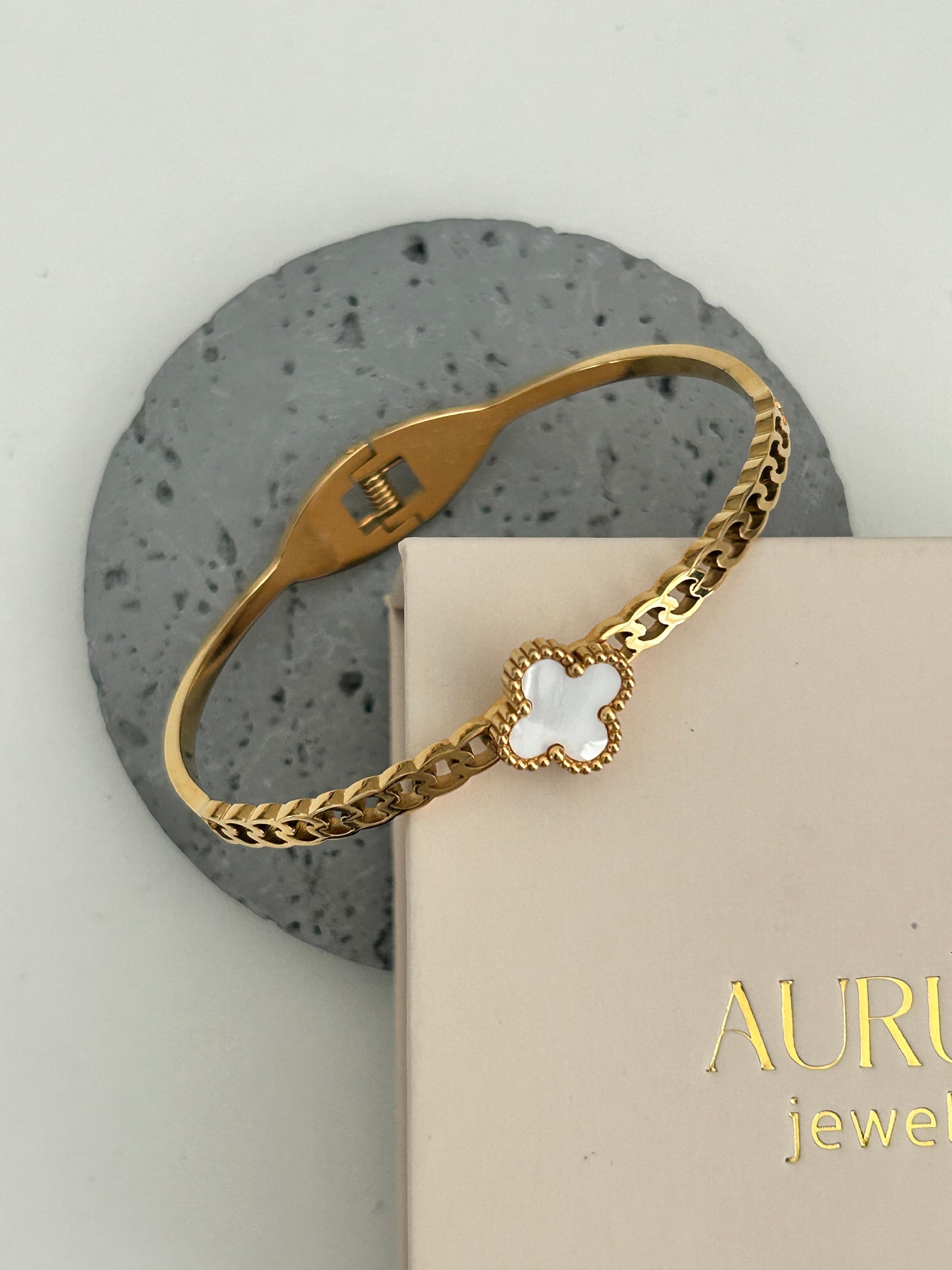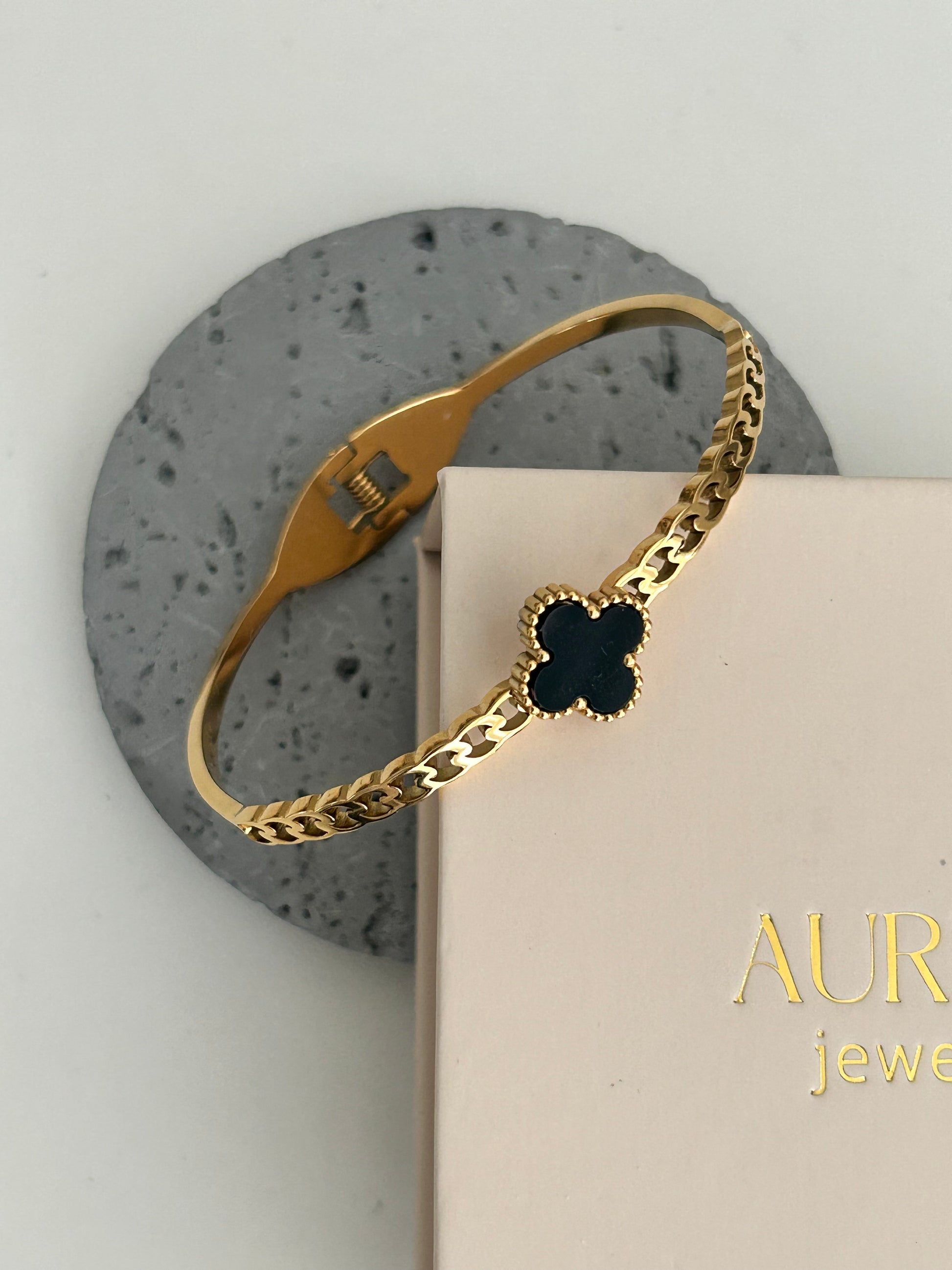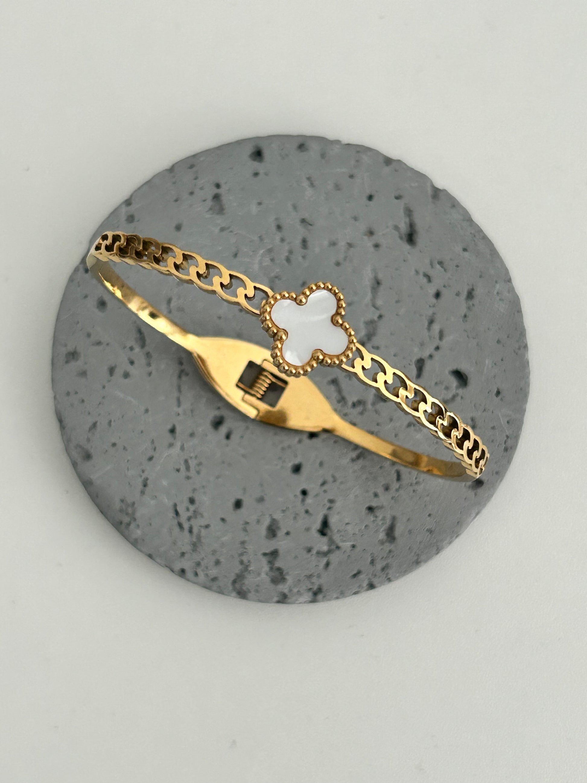 This grey mother of pearl four leaf clover bracelet is beautiful, looks lovely with other bracelets or alone. The grey mother of pearl is very pretty it almost takes on whatever colour you are wearing. As well my order arrived in a lovely packaged with great attention to detail, absolutely beautiful!