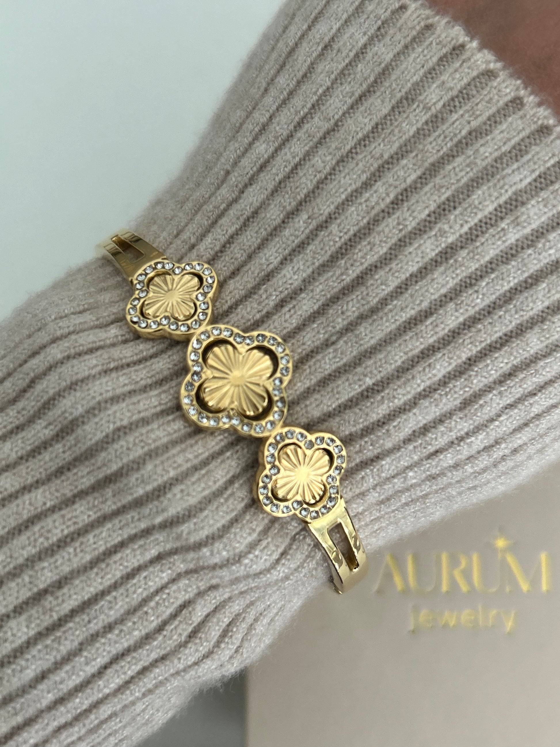 This grey mother of pearl four leaf clover bracelet is beautiful, looks lovely with other bracelets or alone. The grey mother of pearl is very pretty it almost takes on whatever colour you are wearing. As well my order arrived in a lovely packaged with great attention to detail, absolutely beautiful!