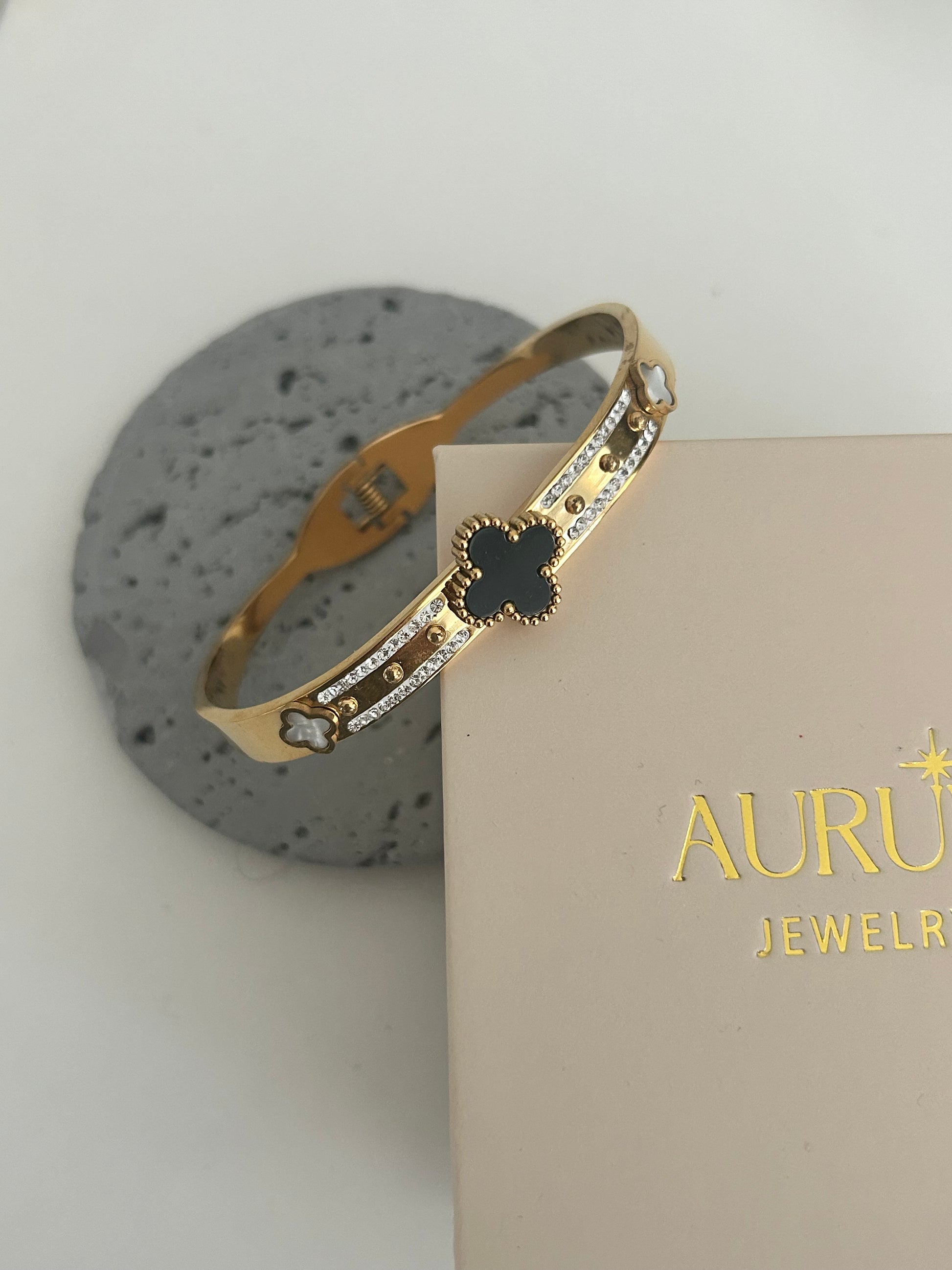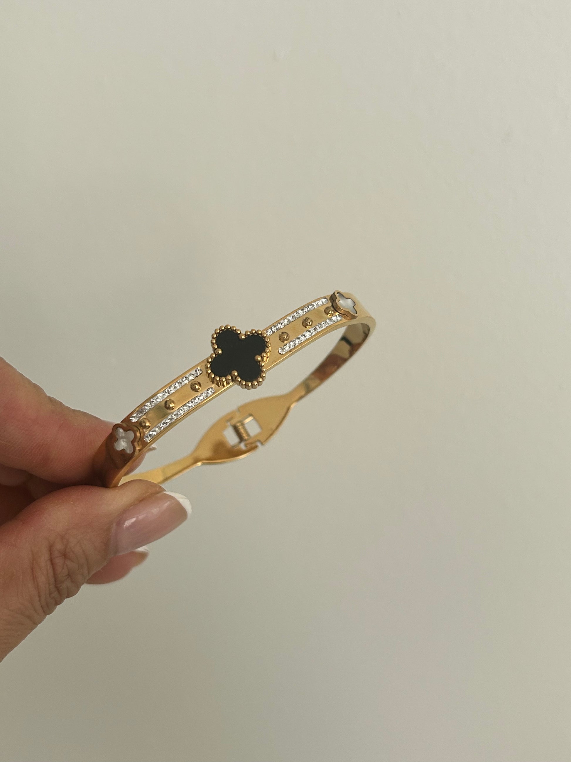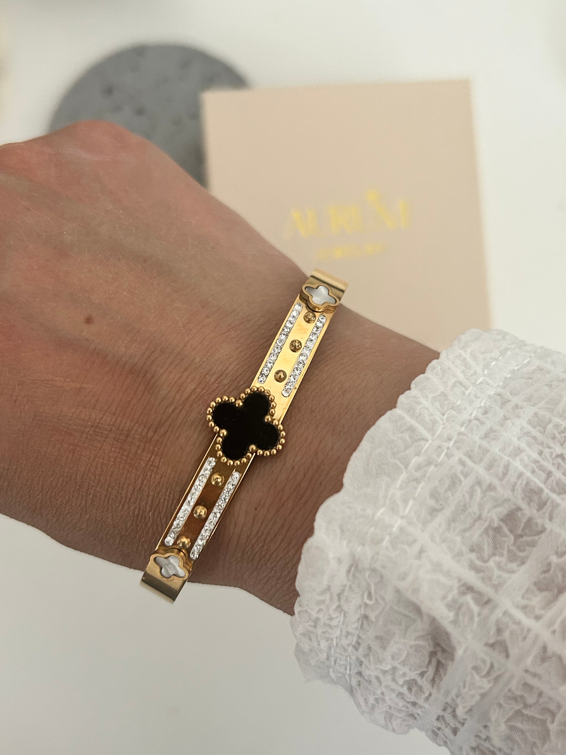 This grey mother of pearl four leaf clover bracelet is beautiful, looks lovely with other bracelets or alone. The grey mother of pearl is very pretty it almost takes on whatever colour you are wearing. As well my order arrived in a lovely packaged with great attention to detail, absolutely beautiful!
