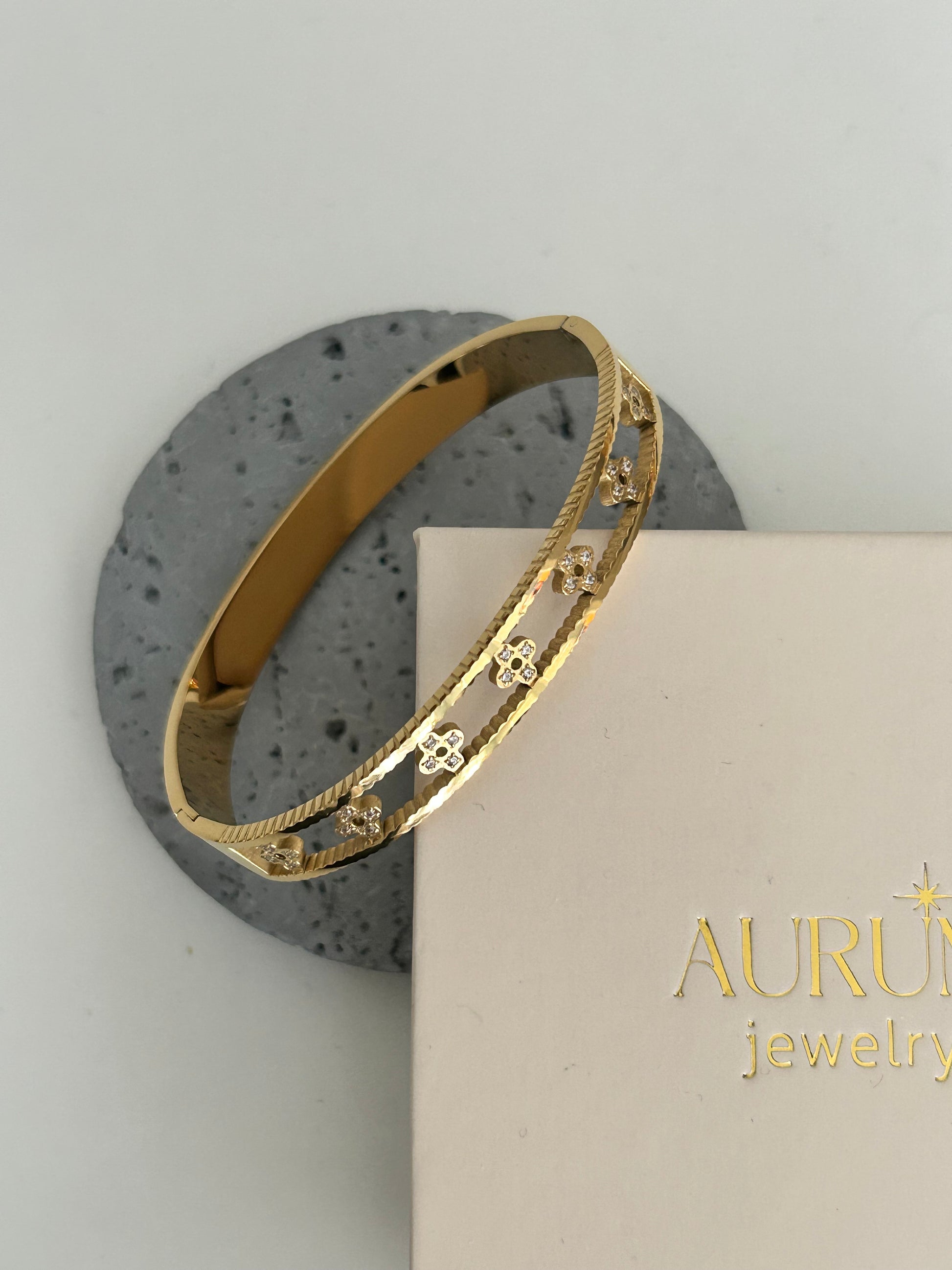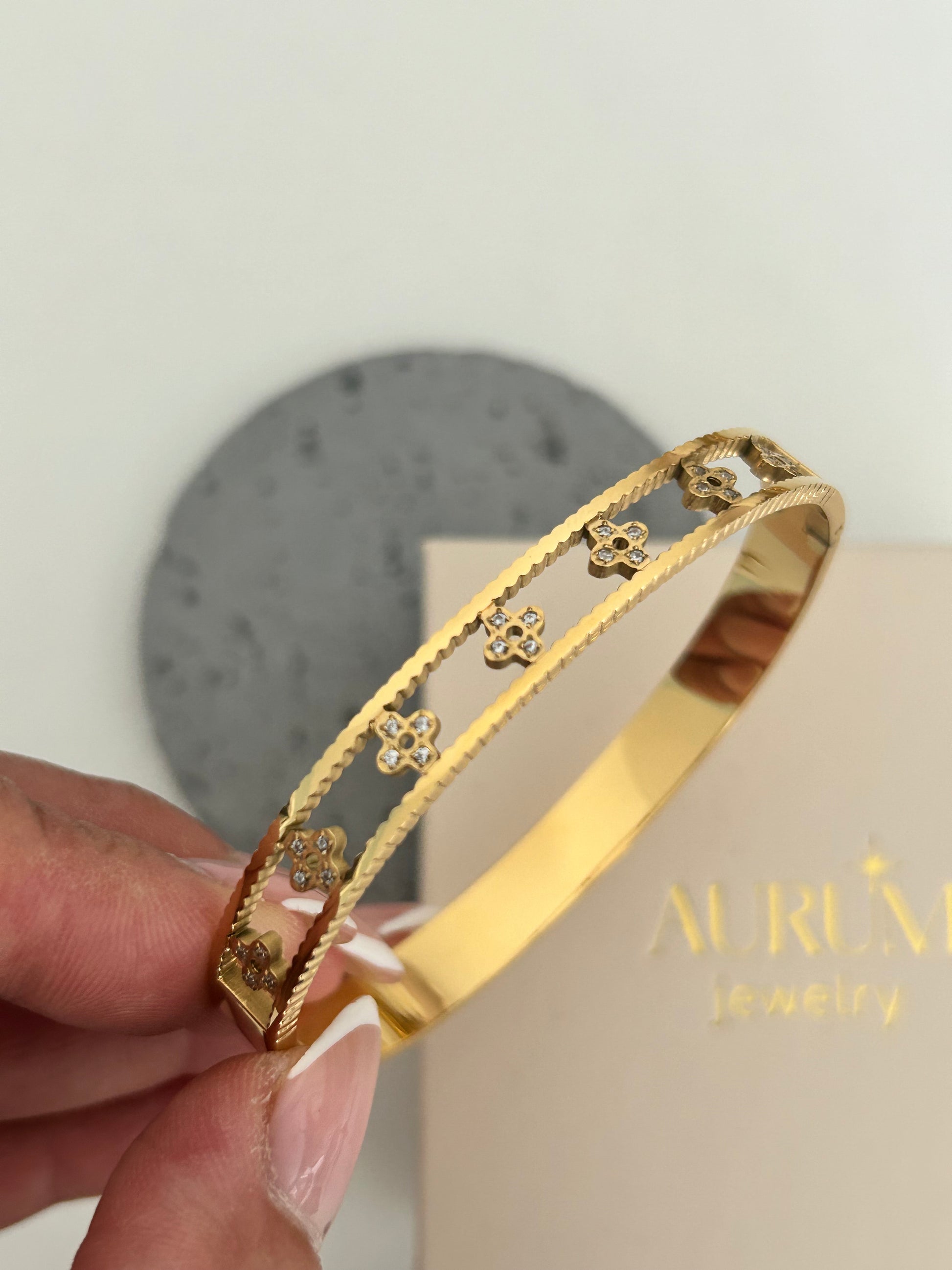 Wren bangle - 18k Gold Plated Floral Clover Bangle
